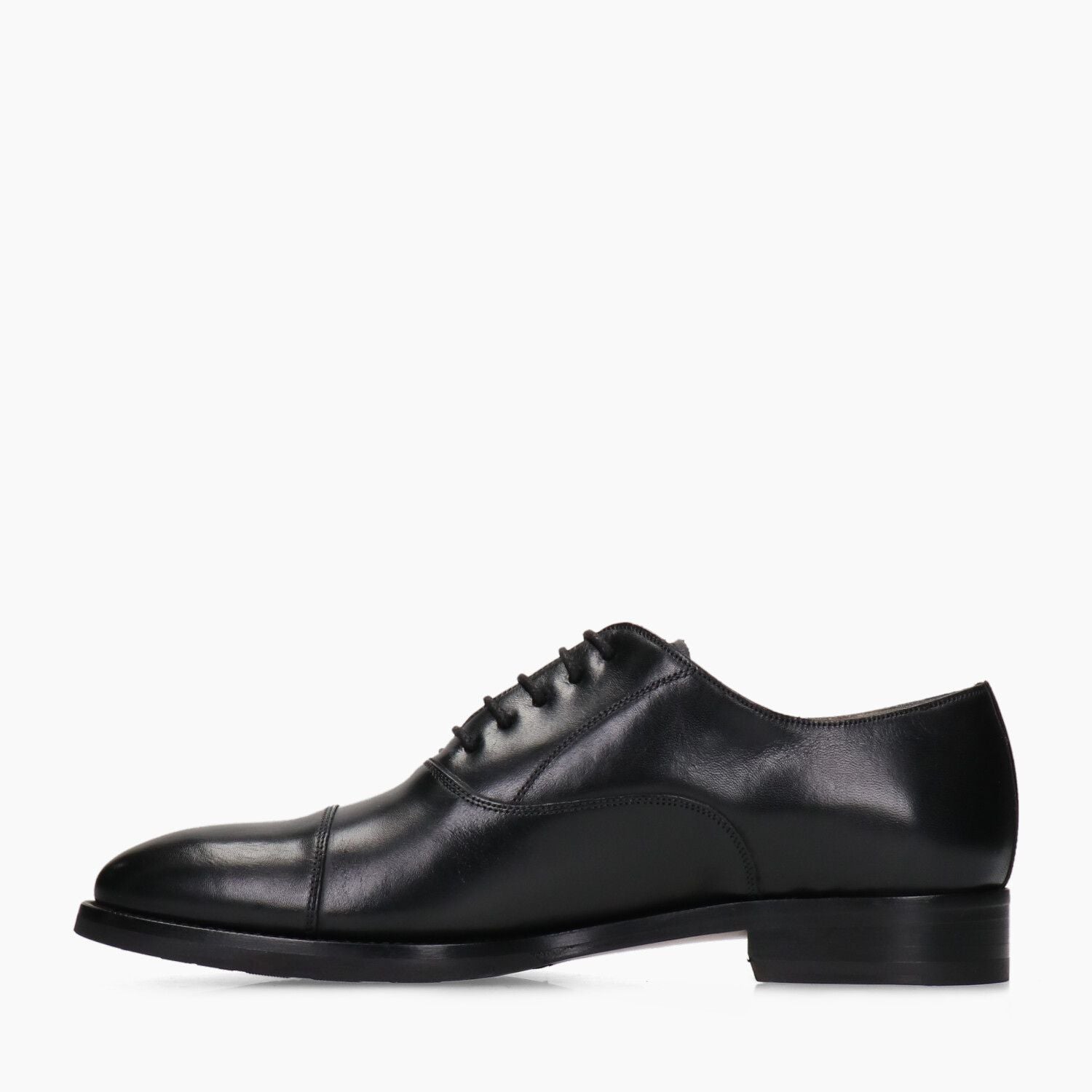 Schwarzer Schnürschuh aus Leder. Runde Zehenpartie. Schnürverschluss. Lederfutter. Sohle aus Gummi und Leder. 3 cm hohe Sohle. Aus der Herren-Herbst-/Winterkollektion von Breco.