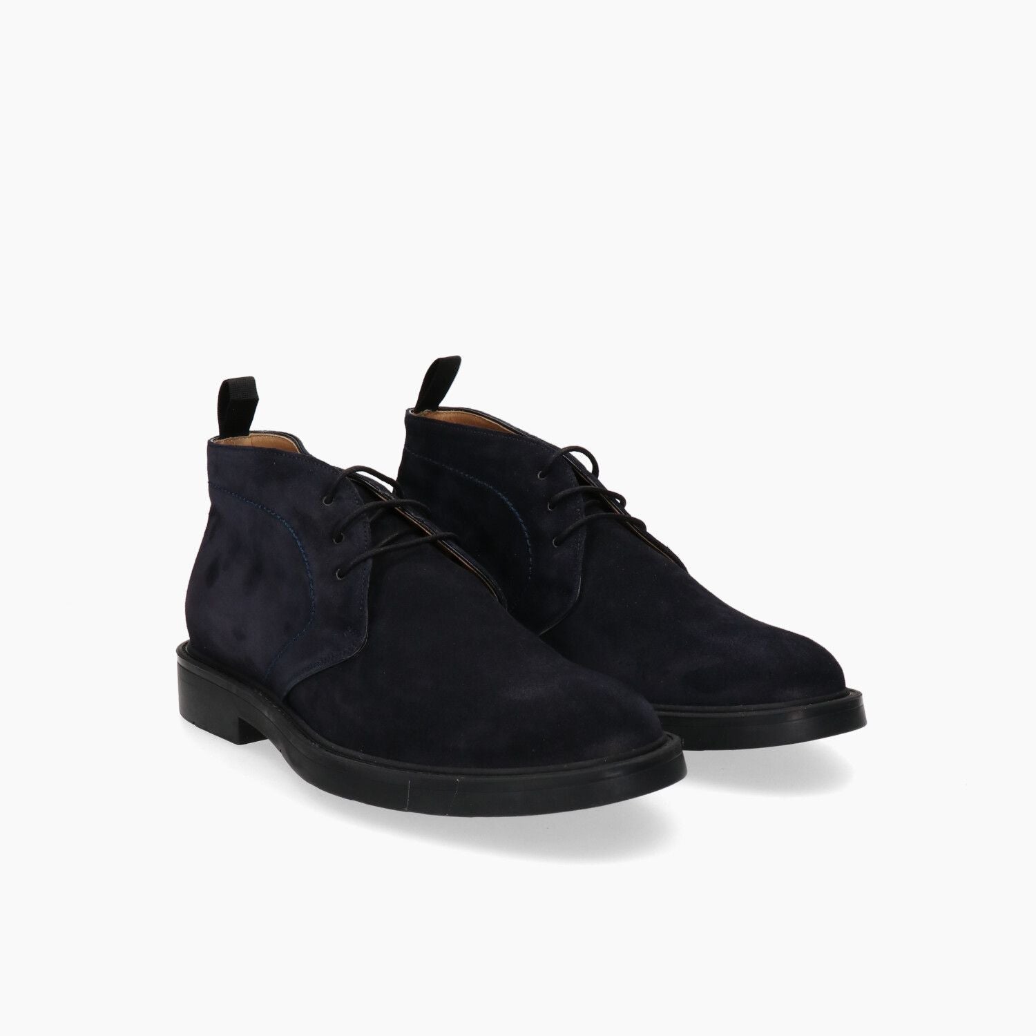 Blaue Wildleder-Ankle-Boots, genähte Gummisohle.