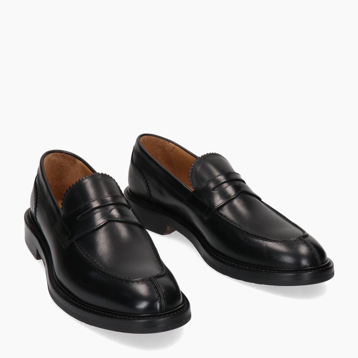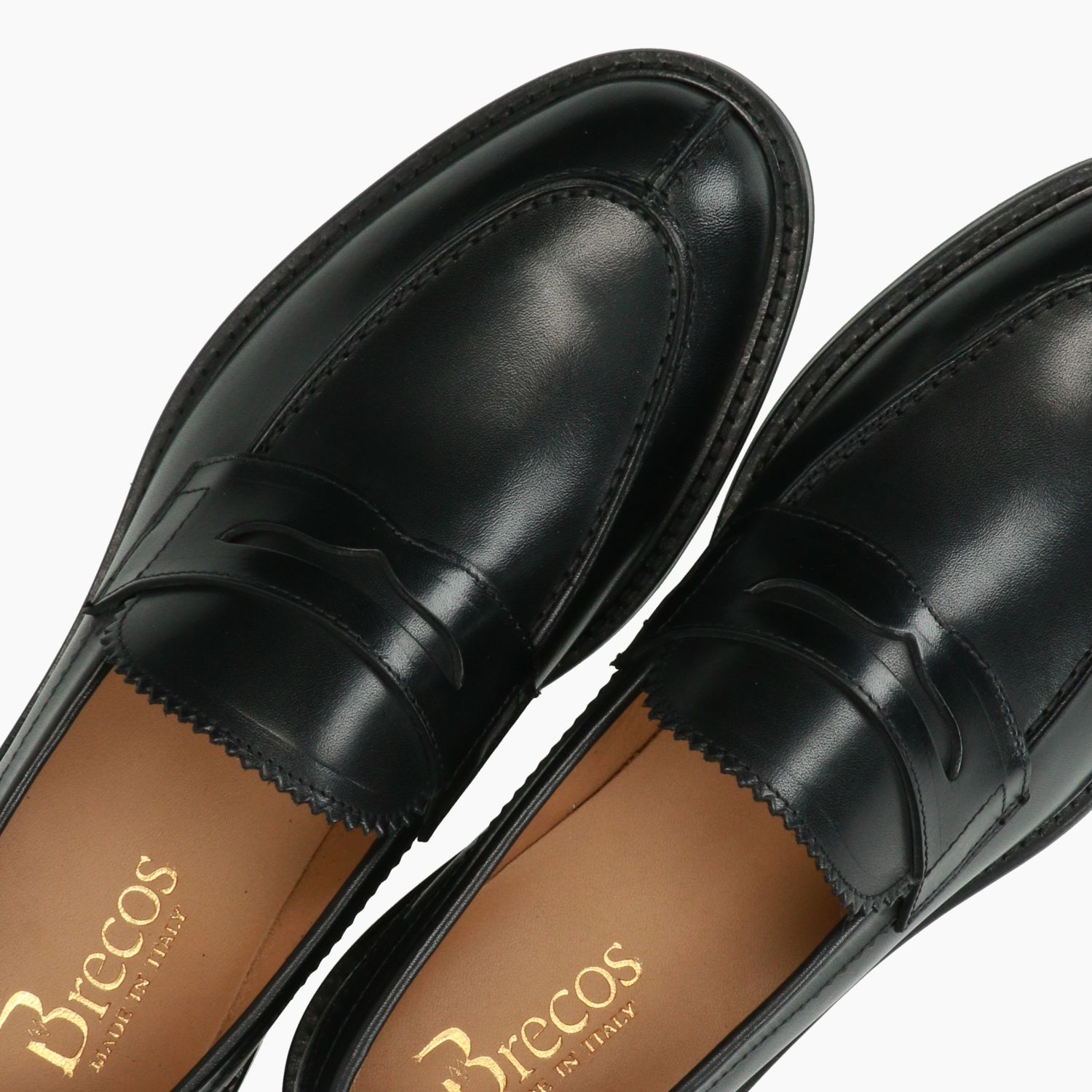 Schwarzer Lederloafer von Brecos. Runde Zehenpartie. Lederfutter. Sohle aus Leder und Gummi mit 3 cm Absatz. Inklusive Staubbeutel. Herrenkollektion Brecos.