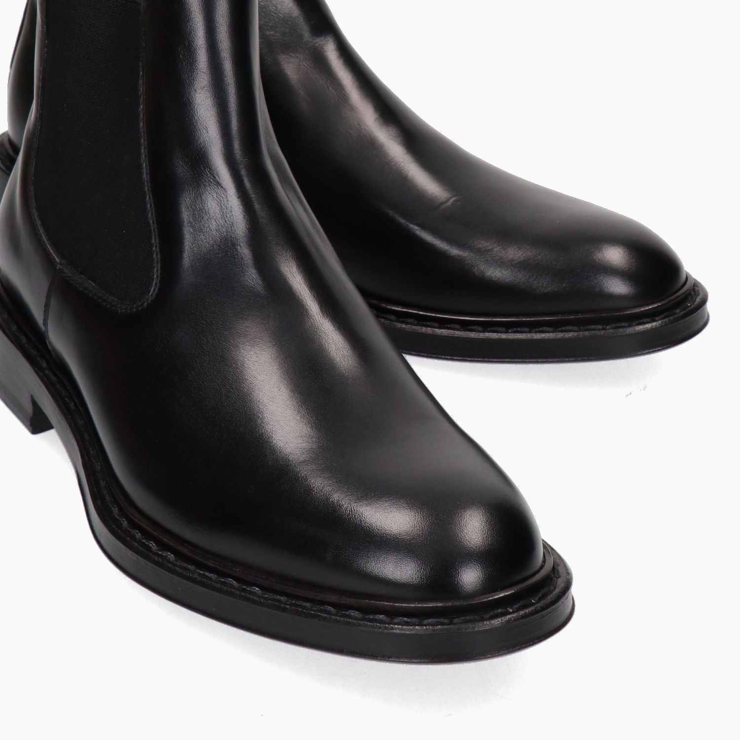 Schwarze Beatles-Sandalen aus Leder mit elastischen Seiten. Lederfutter. Sohle aus Leder und Gummi mit 3 cm Absatz. Brecos Herren-Herbst-/Winterkollektion.