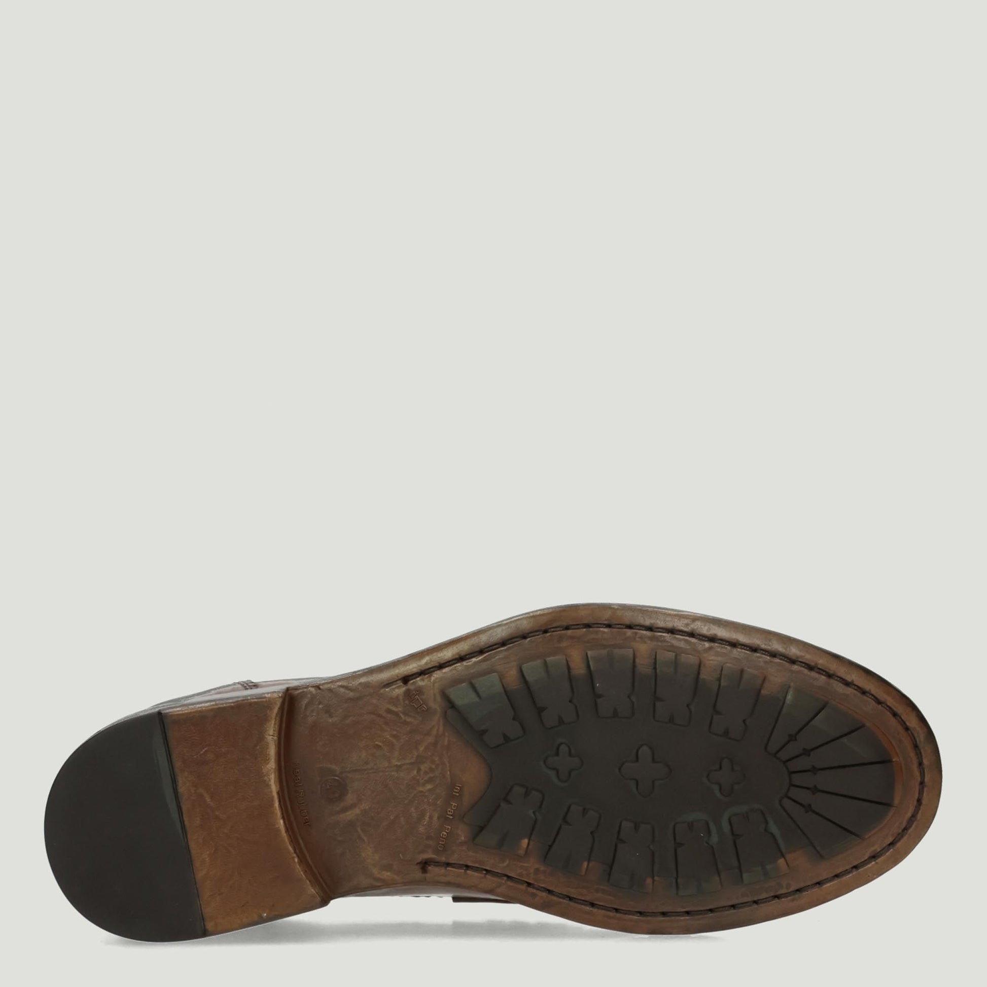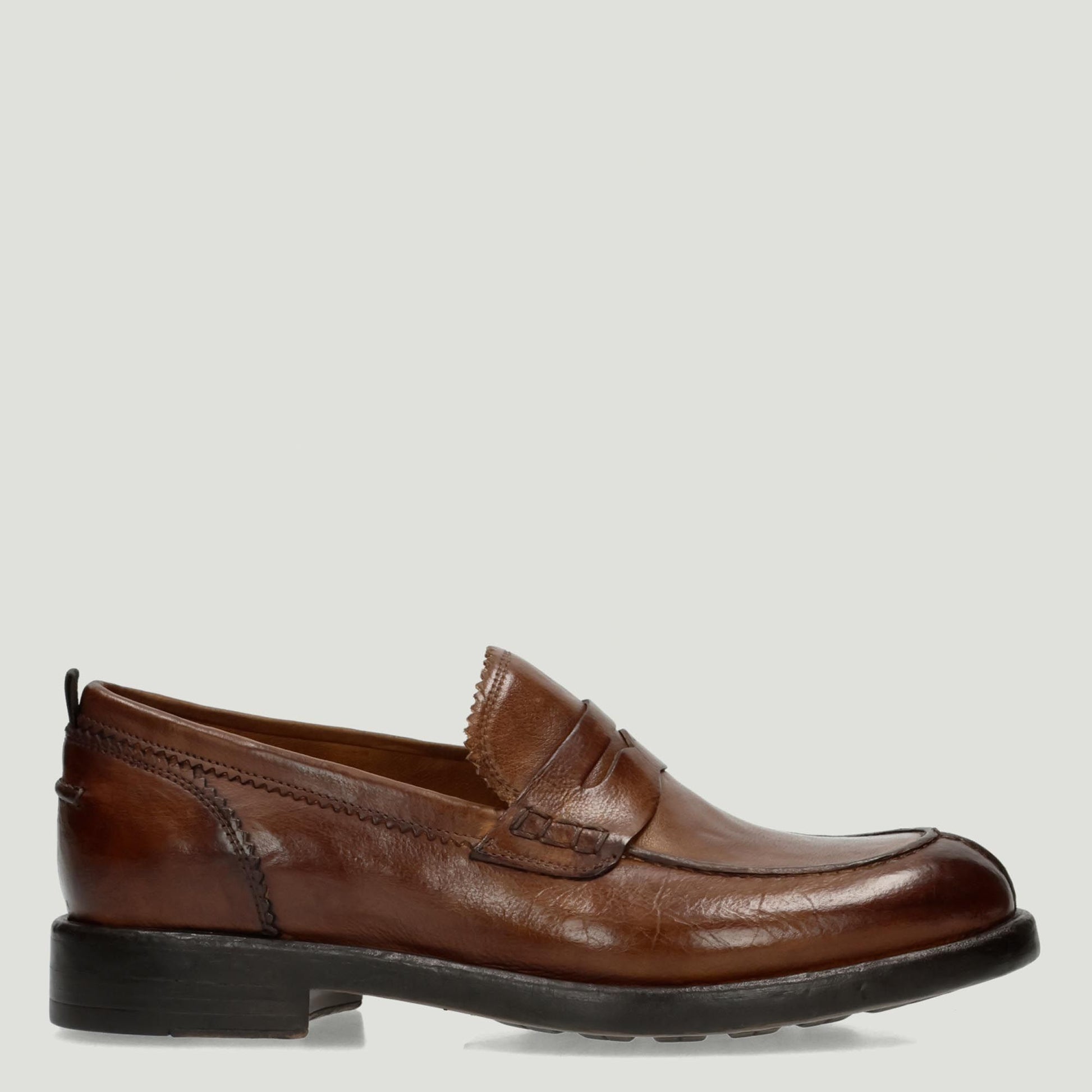 Brecos Ledermokassin in gealtertem Braun. Lederfutter mit fester Innensohle. Gummisohle mit 3 cm Absatz. Brecos Herrenkollektion.