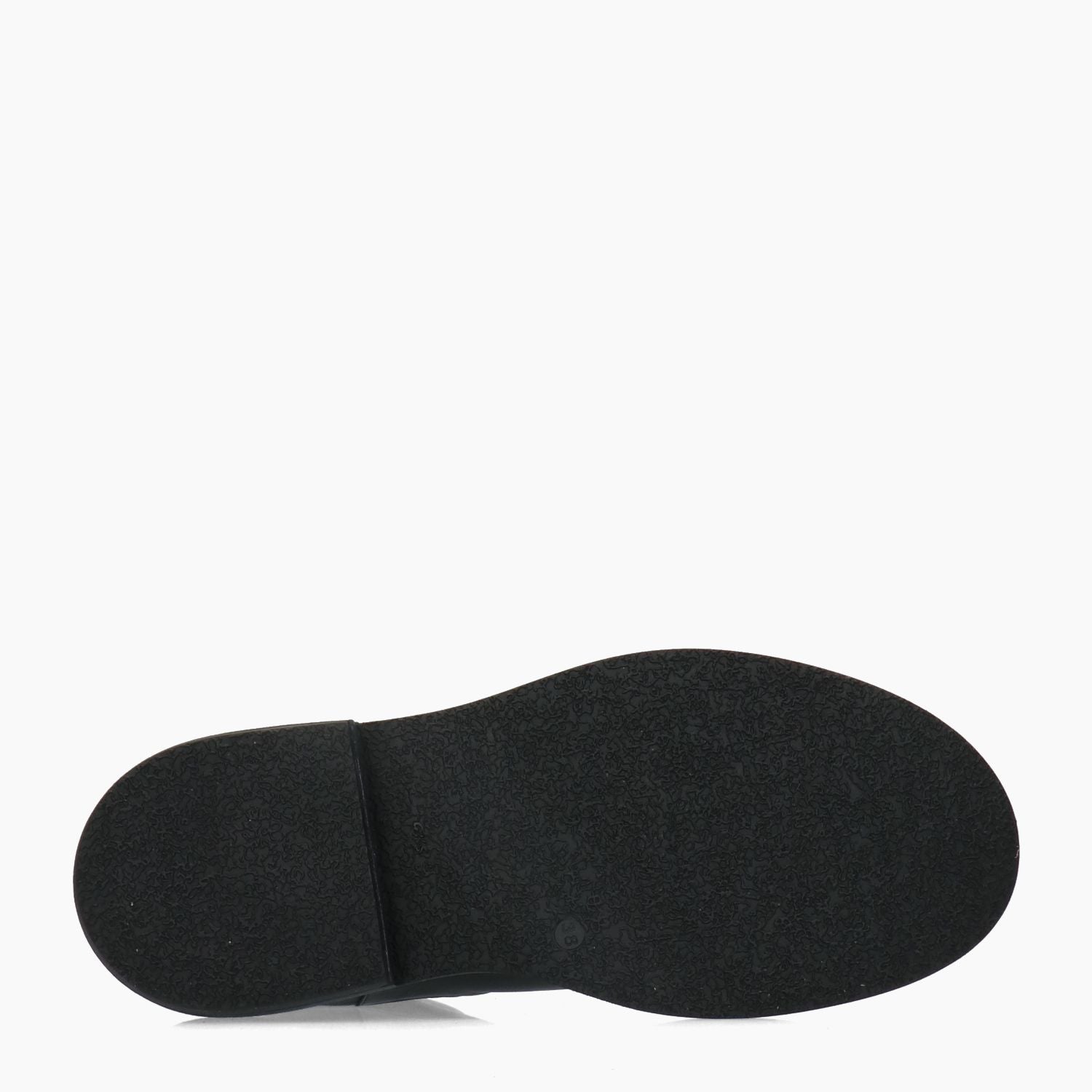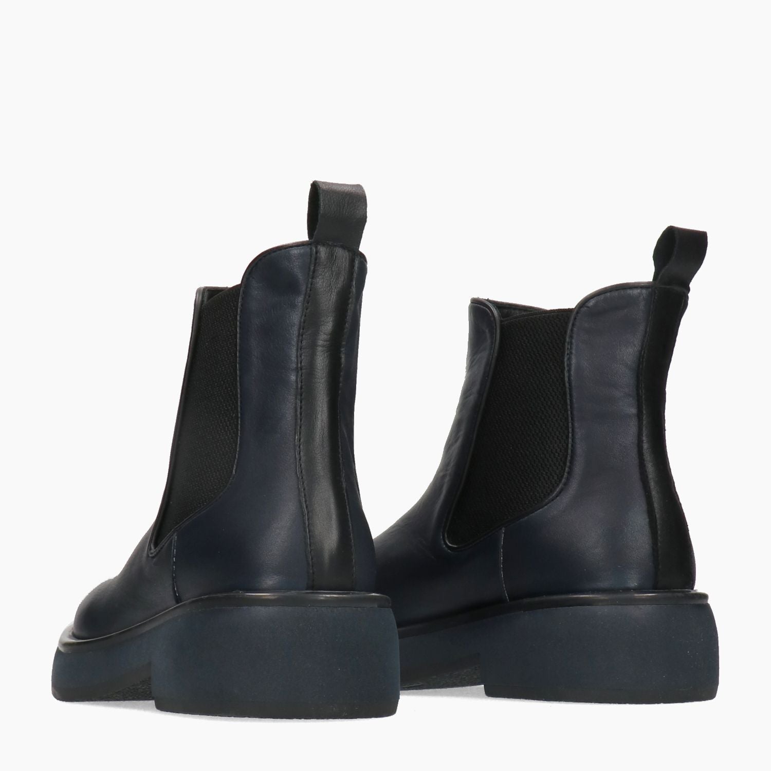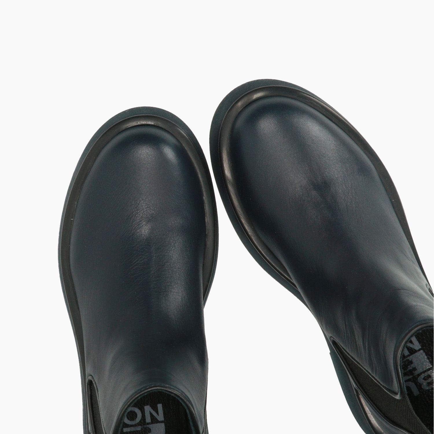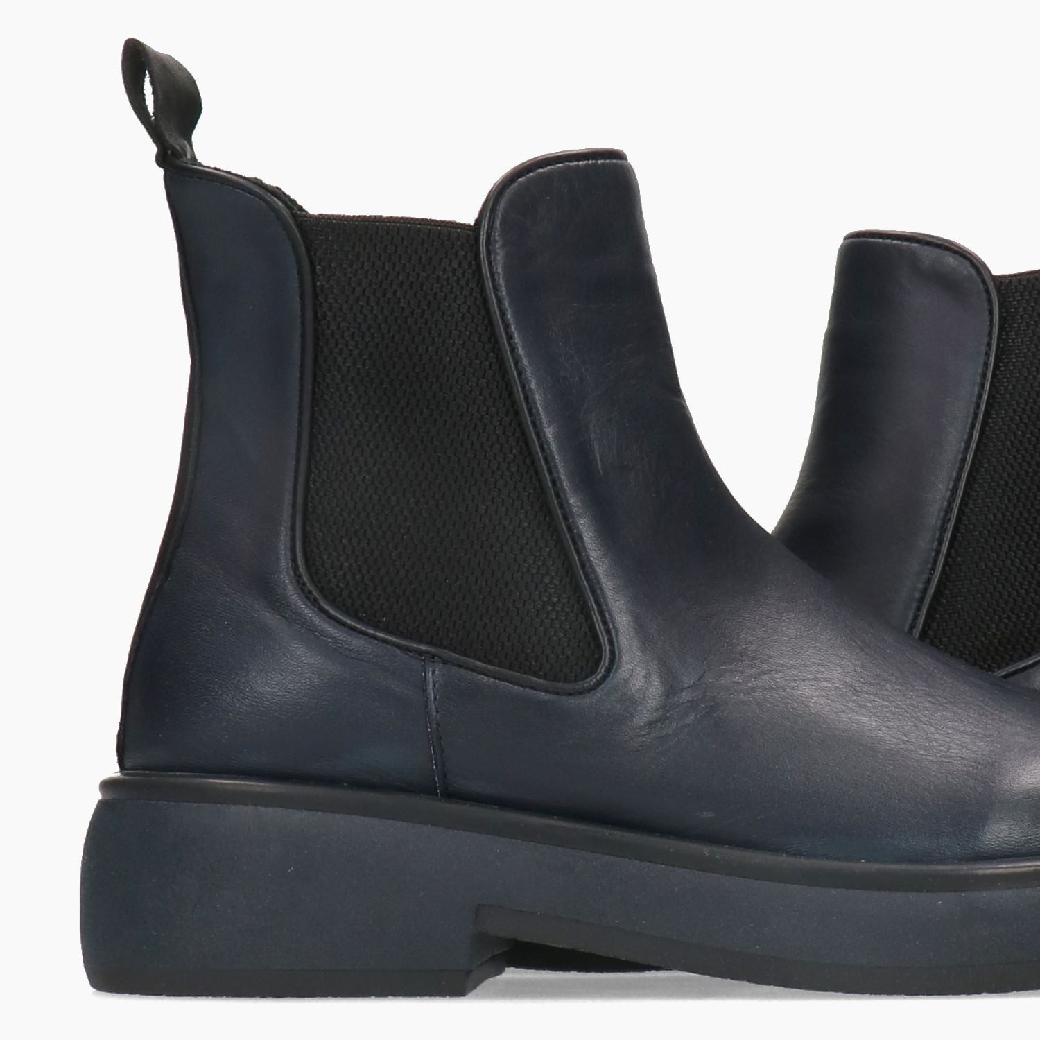 Beatles-Sneaker aus marineblauem Leder. Schwarze, elastische Einsätze in Netzoptik an der Seite. Textilfutter mit herausnehmbarer Innensohle. Schwarze Gummisohle mit 4,5 cm Absatz. Bueno Damen-Herbst-/Winterkollektion.