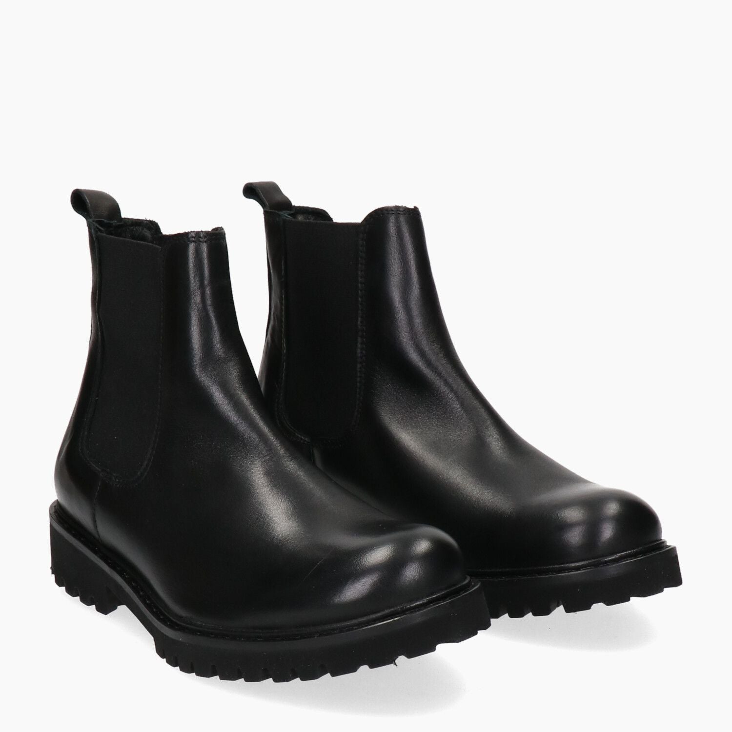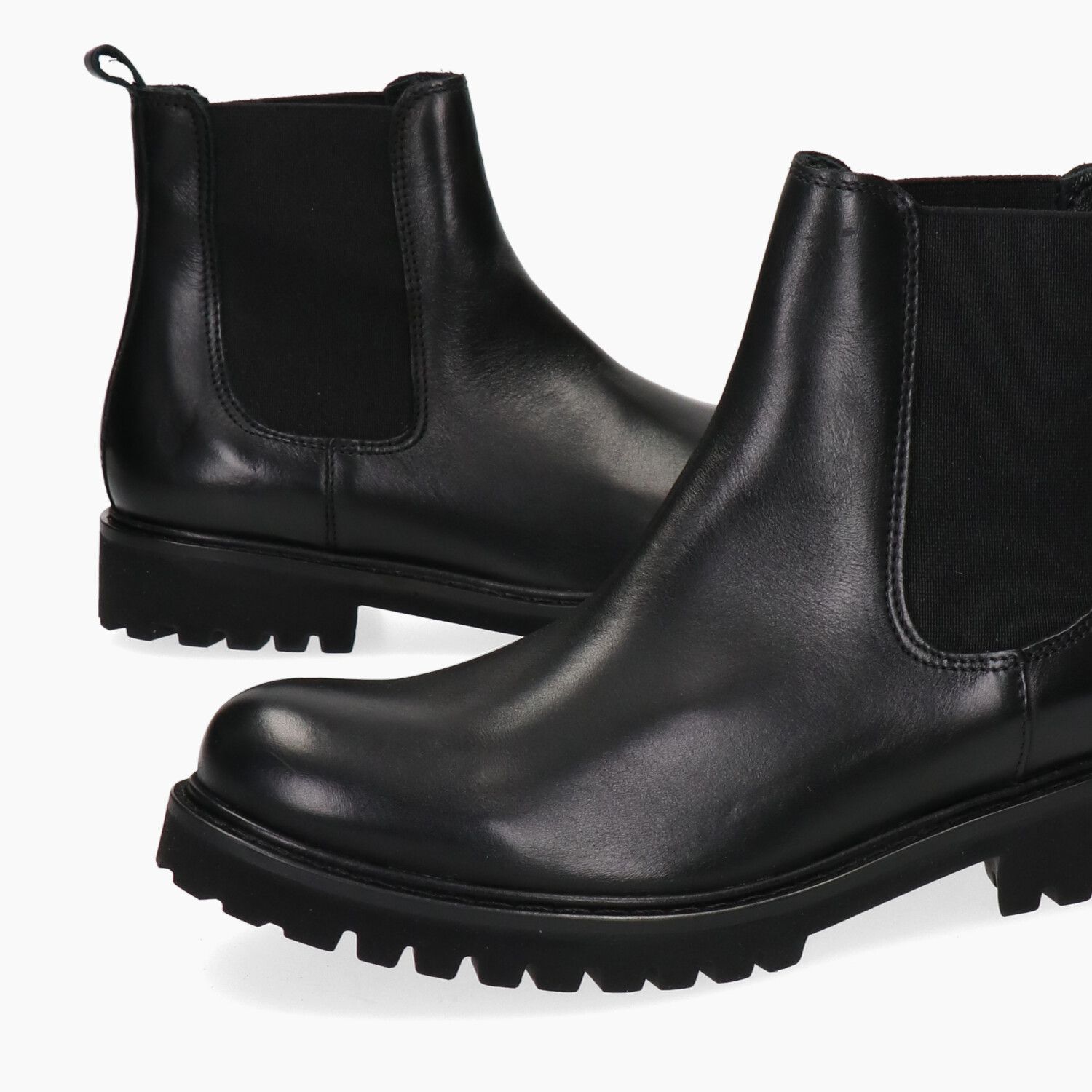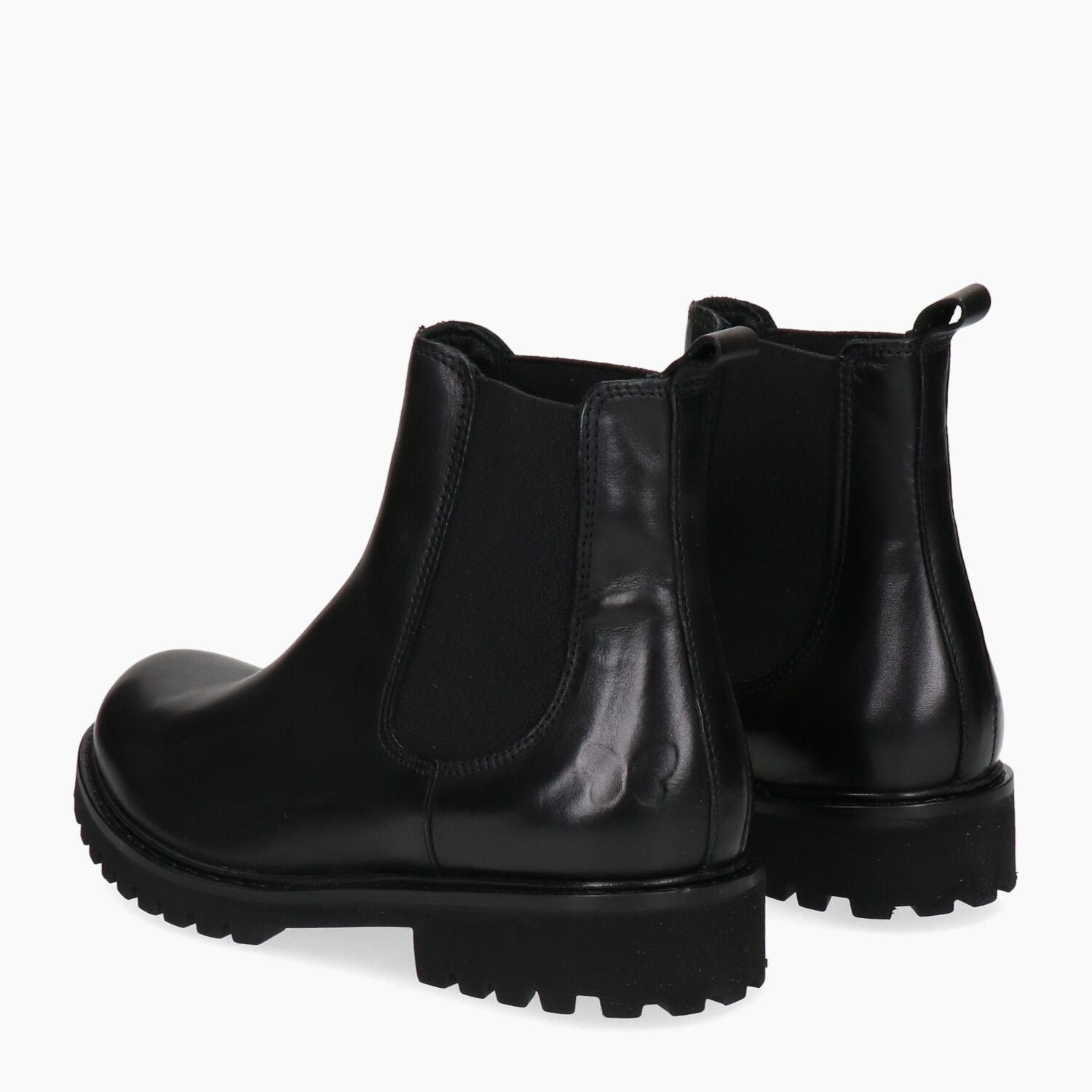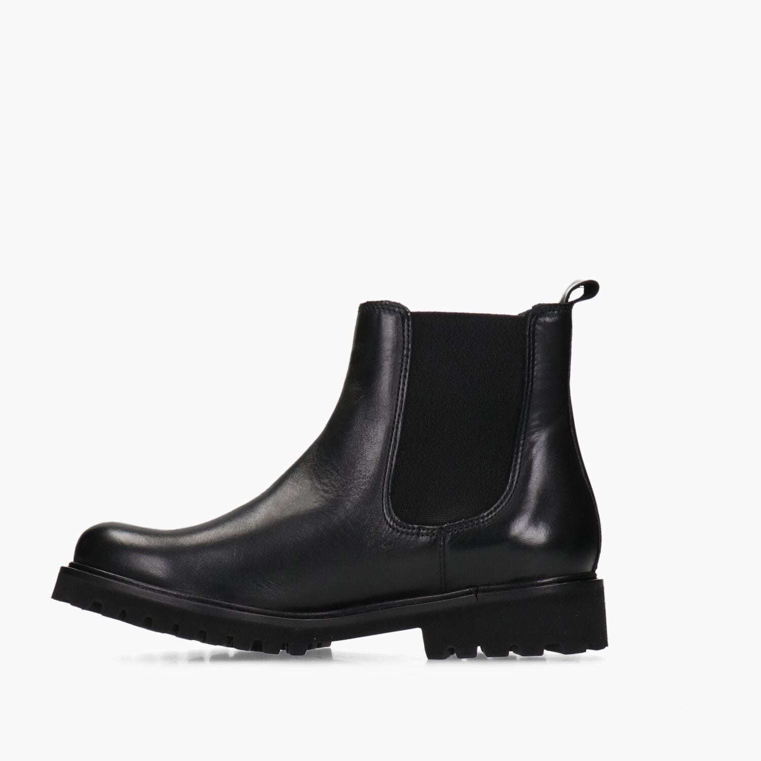 Schwarze Leder-Ankle-Boots mit elastischen Seiten und Gummisohle.