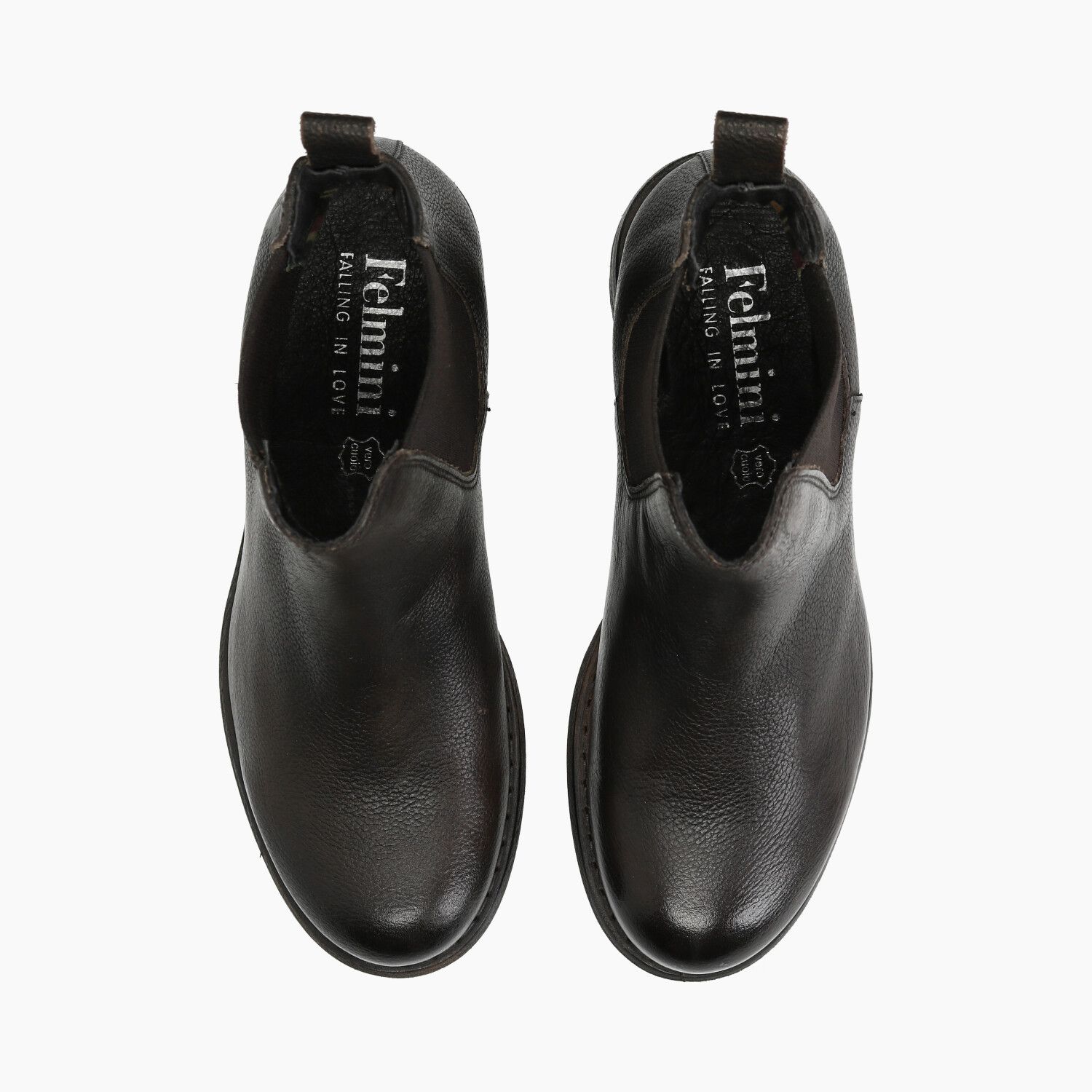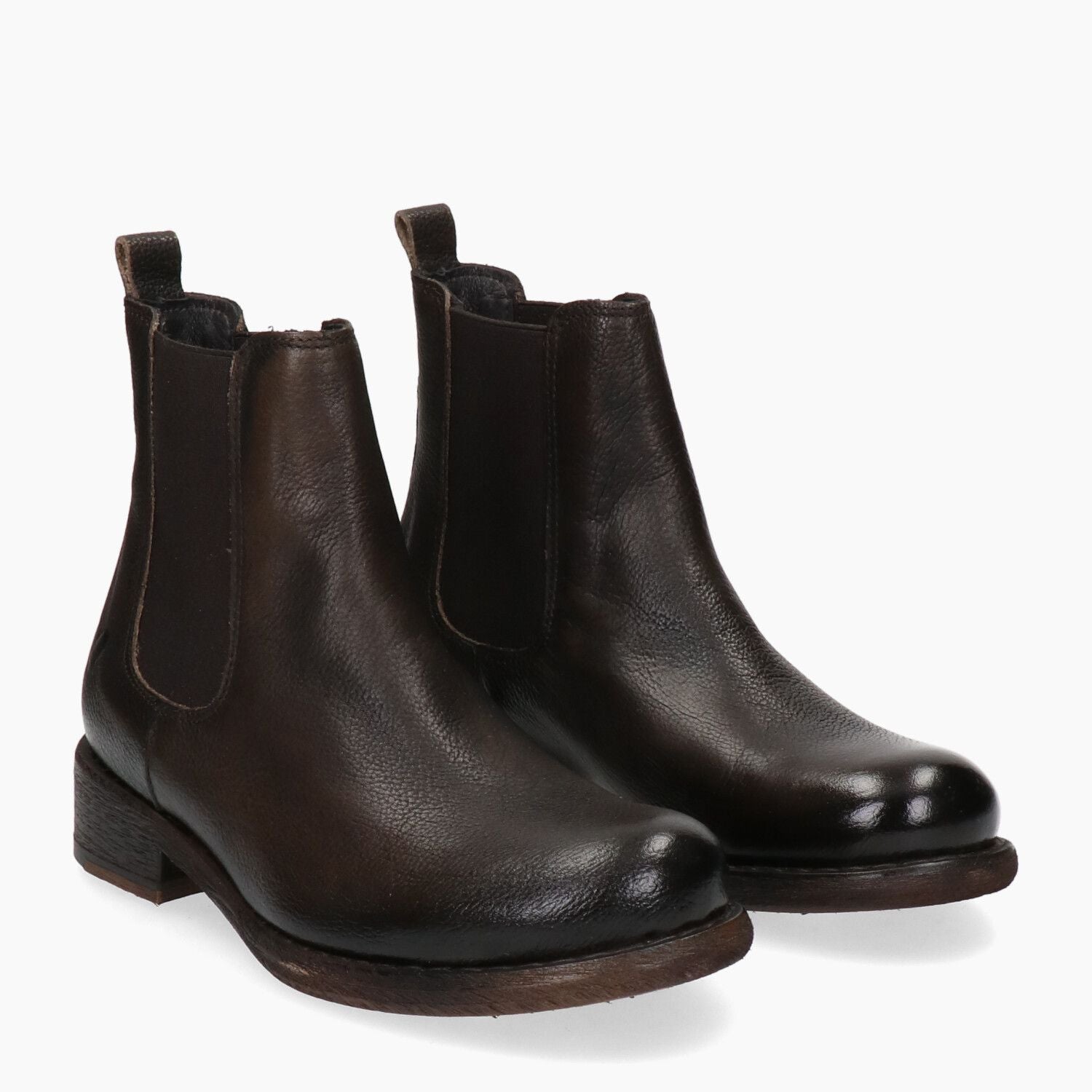Dunkelbraune Lederstiefeletten mit elastischen Seiten und Gummisohle.