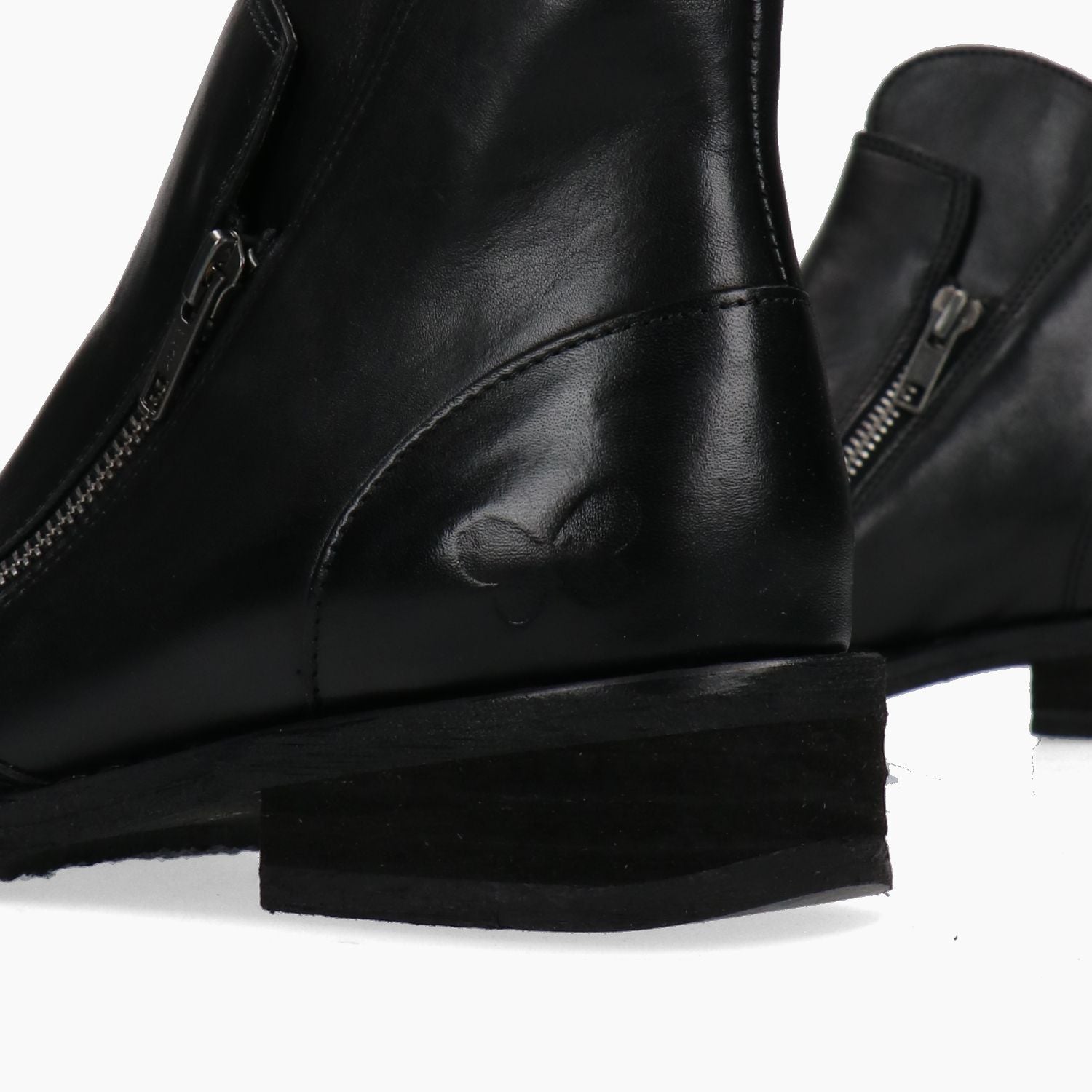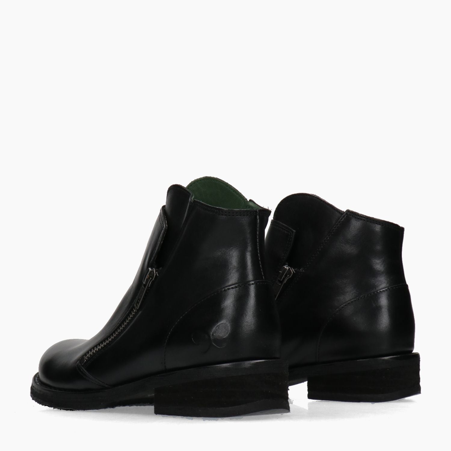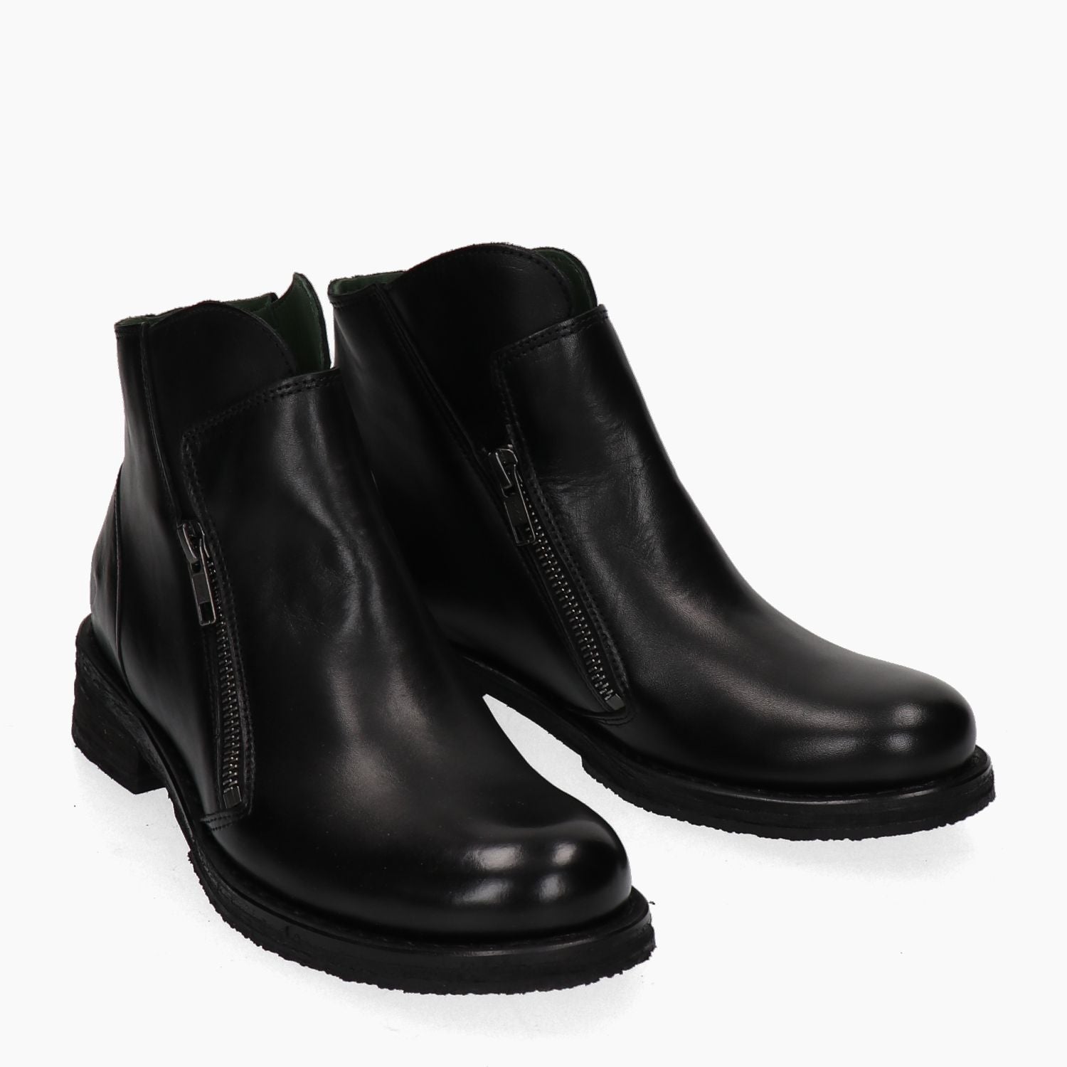 Felmini Stiefeletten mit schwarzem Leder-Obermaterial. Doppelter Reißverschluss. Futter aus Textil und Leder. Gummisohle mit 3 cm Absatz. Felmini Damen Herbst/Winter Kollektion.
