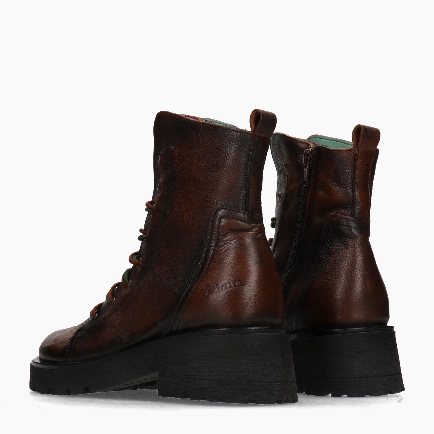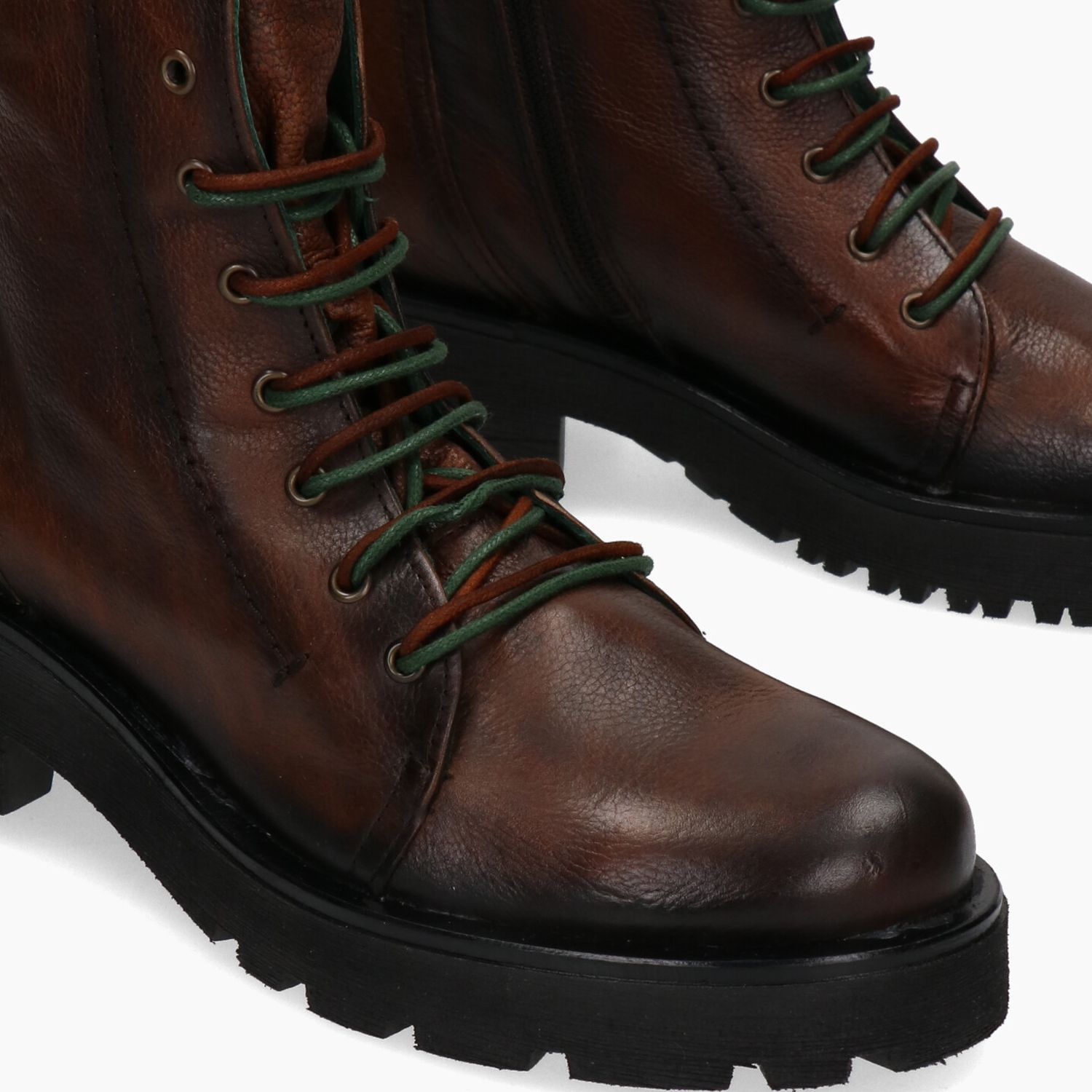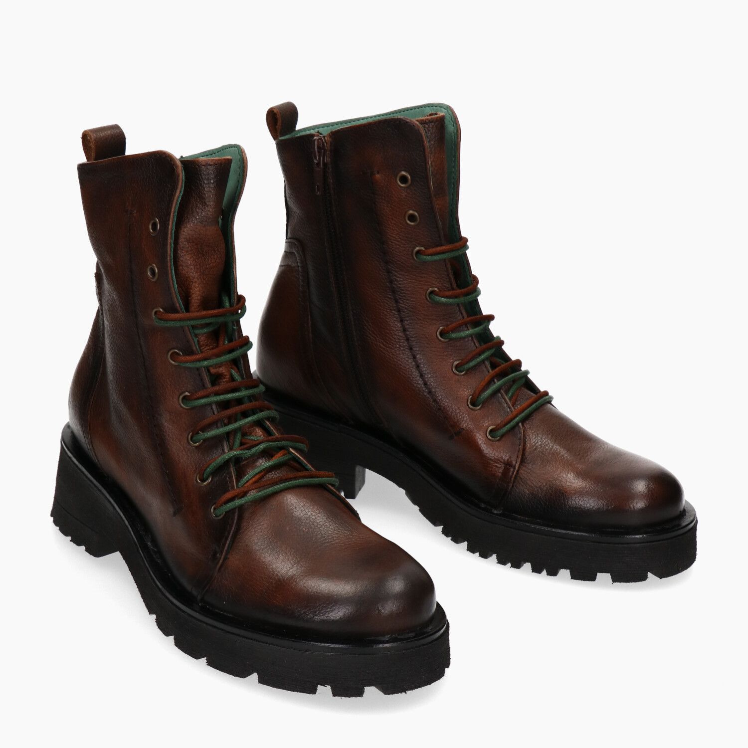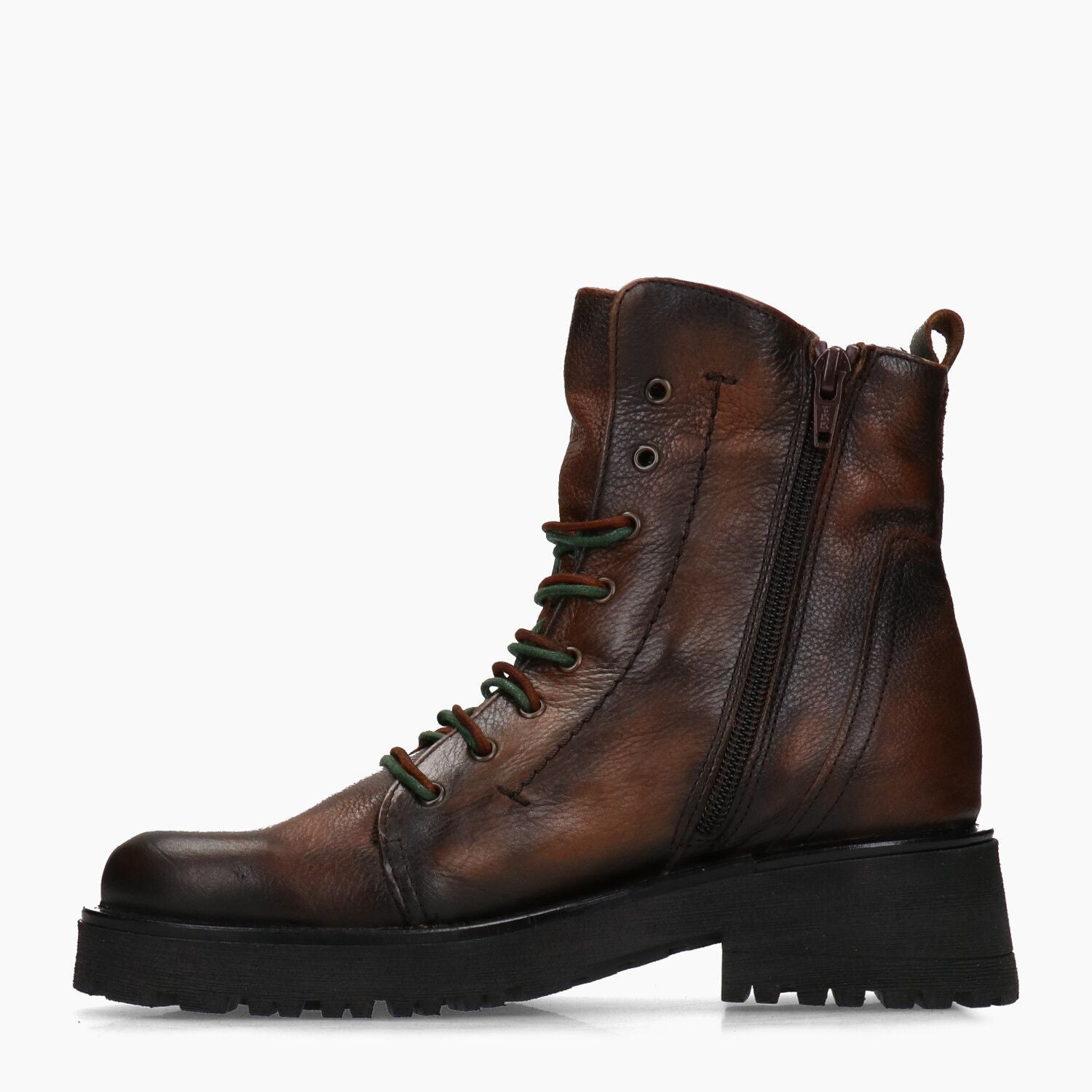 Braune Lederstiefeletten, innenliegender Reißverschluss, Gummisohle mit Profil.