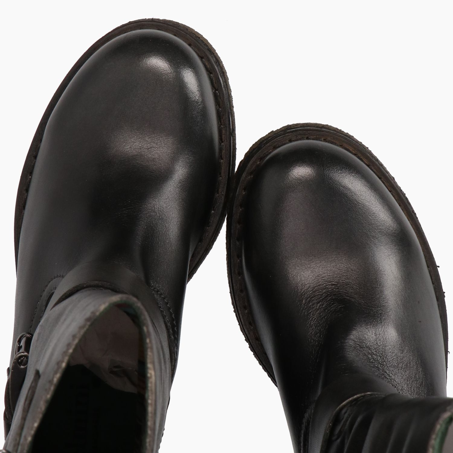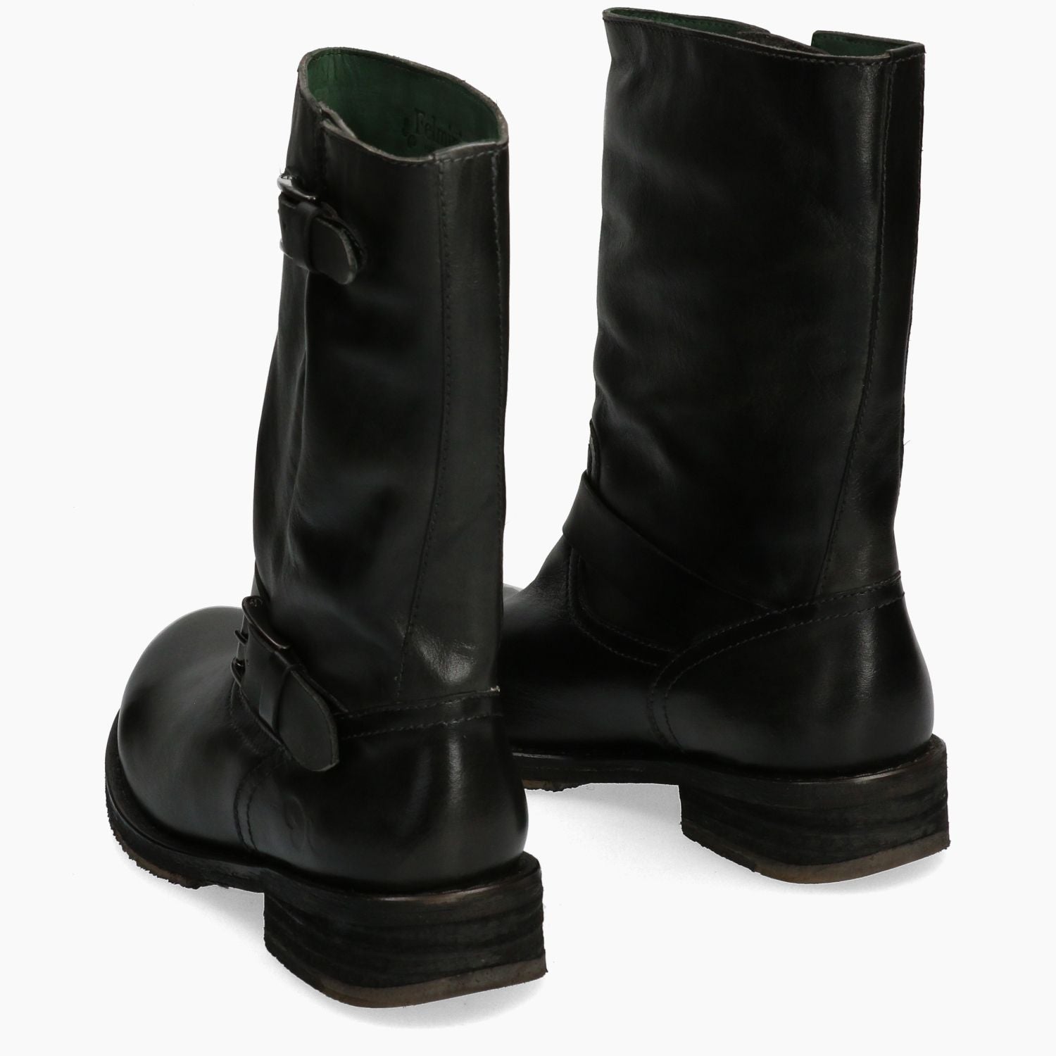 Stiefeletten im Biker-Stil mit Obermaterial aus Used-Leder in Graphitgrau. Doppelriemen mit Schnalle aus anthrazitfarbenem Metall. Futter aus Leder und Textil. Gummisohle mit 3 cm Absatz. Felmini Damen-Herbst-/Winterkollektion.