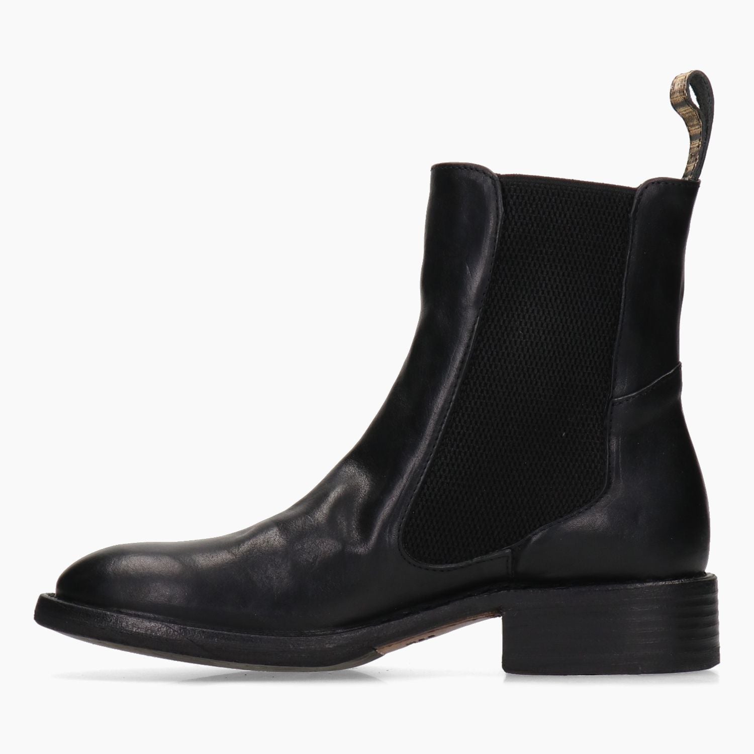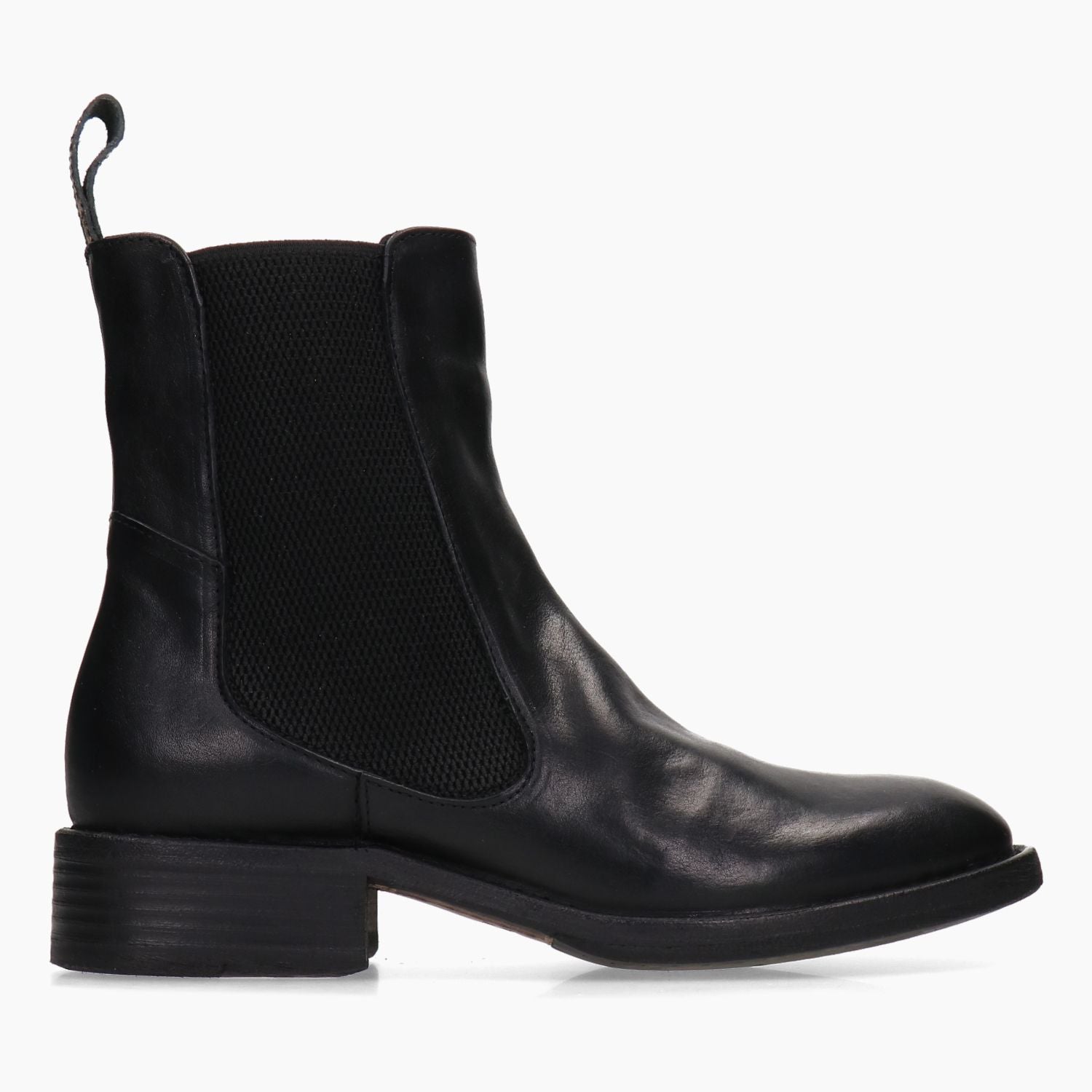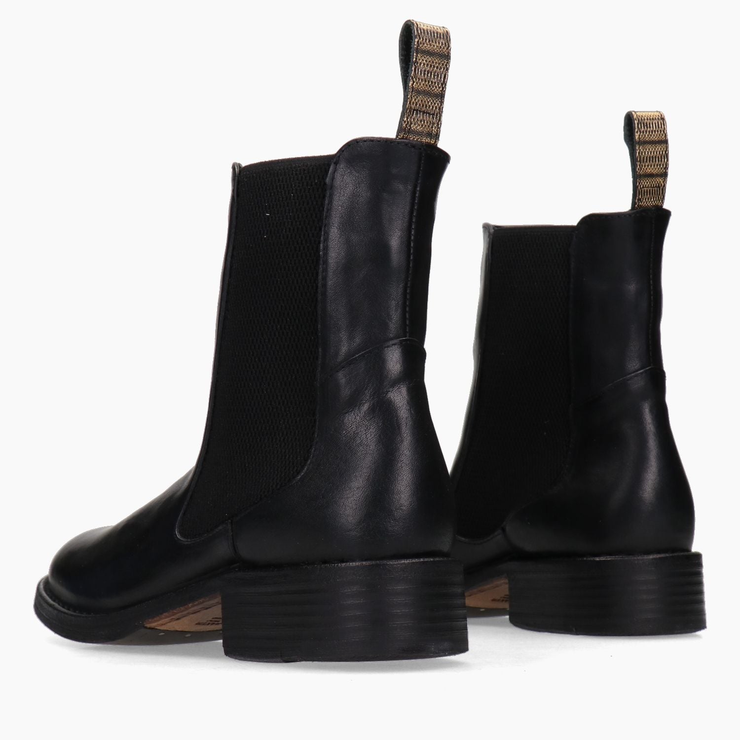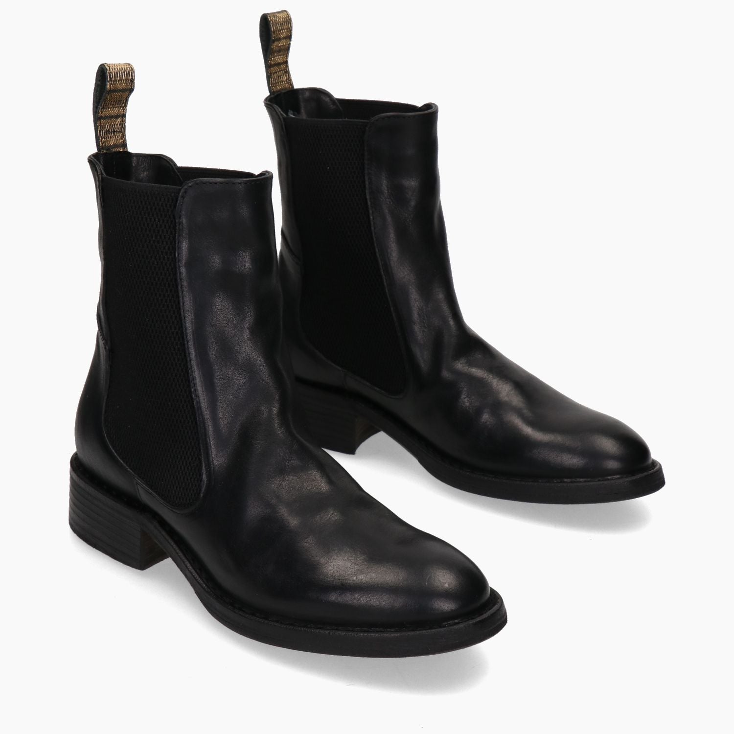 Fiorentini + Baker Stiefeletten mit schwarzem Leder-Obermaterial. Runde Zehenpartie. Schwarze elastische Einsätze an den Seiten. Lederfutter mit fest integrierter Innensohle. Sohle aus Leder und Gummi mit 4 cm Absatz. Fiorentini + Baker Damen-Herbst-/Winterkollektion.