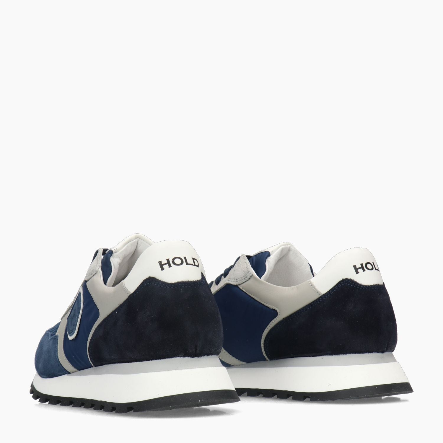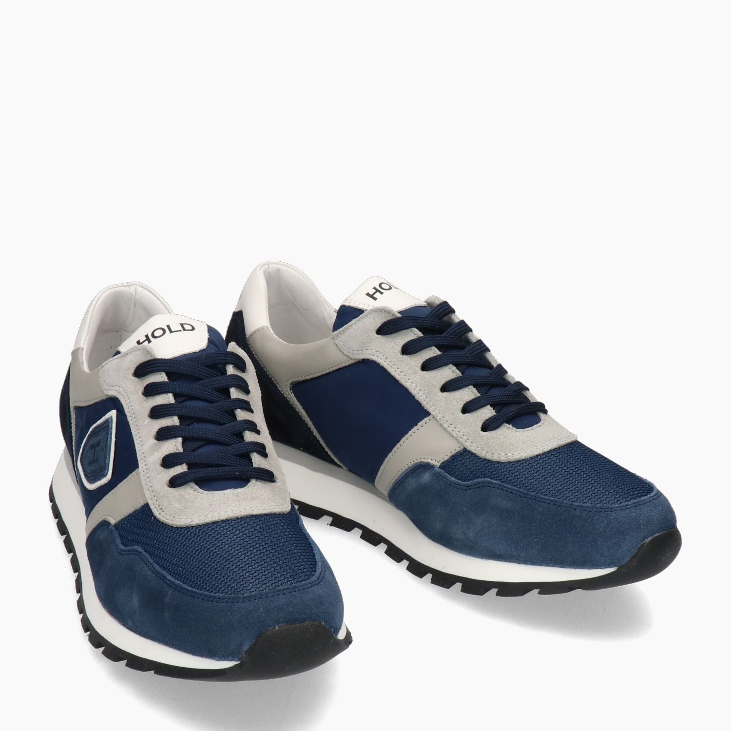 Sneaker aus blauem und grauem Wildleder. Grauer Lederbesatz. Lederfutter mit herausnehmbarer Innensohle. 3 cm hohe Gummisohle. Herrenkollektion Hold.