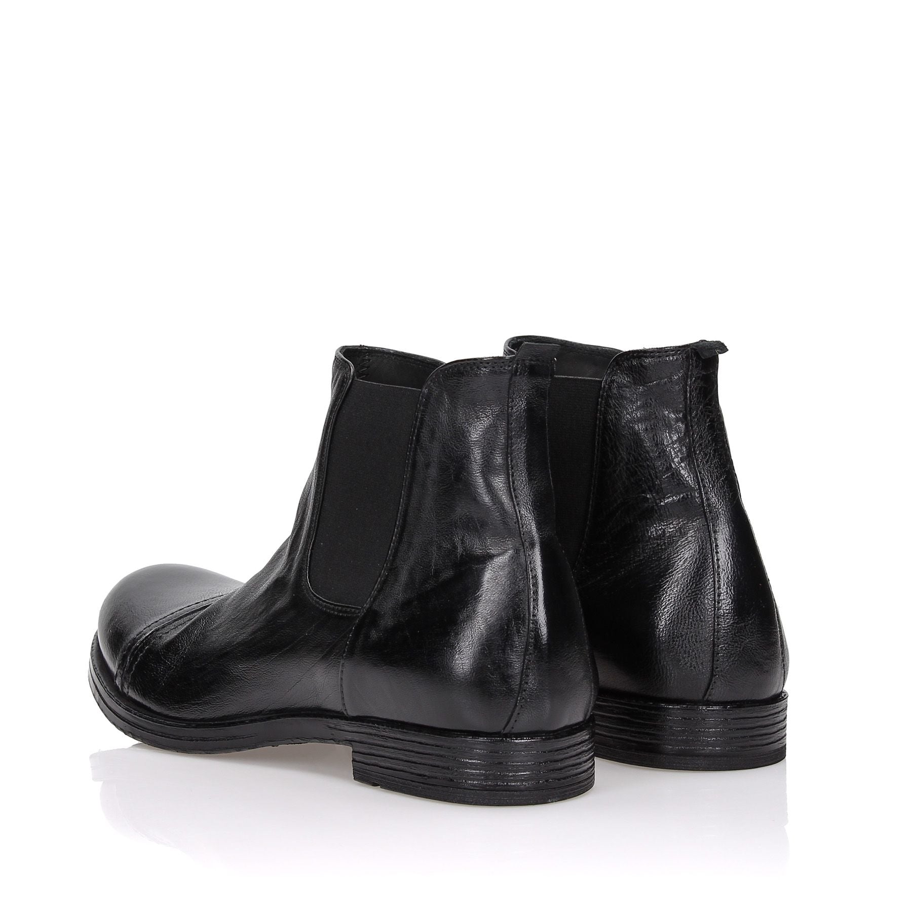 Schwarze Beatles-Schuhe aus Leder mit Zehenkappe, 25 cm Absatz und genähter Gummisohle.