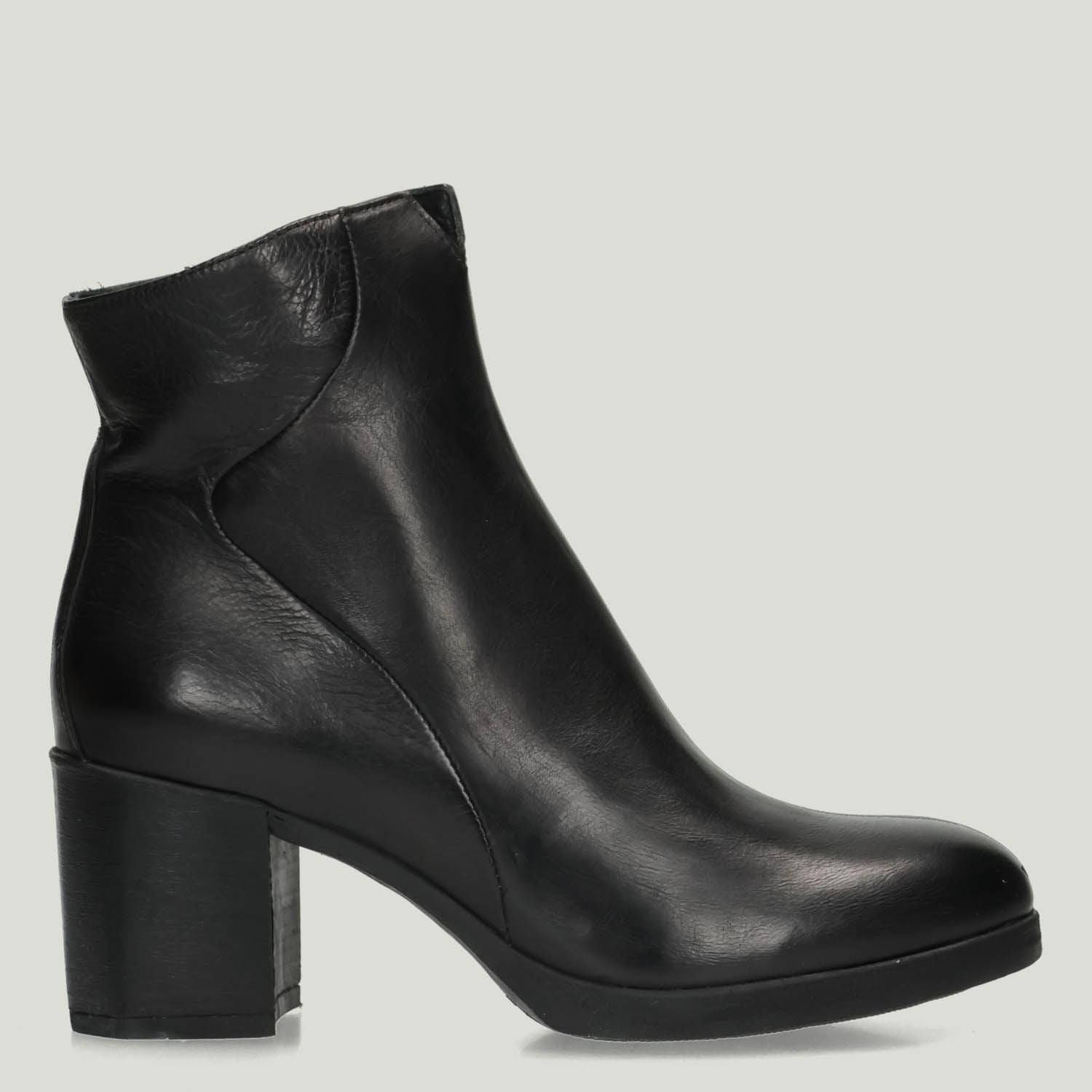 Stiefeletten mit schwarzem Leder-Obermaterial. Lederfutter mit fest integrierter Innensohle. Seitlicher Reißverschluss. 6,5 cm Absatz. Gummisohle. Hundred100 Damen Herbst/Winter Kollektion.