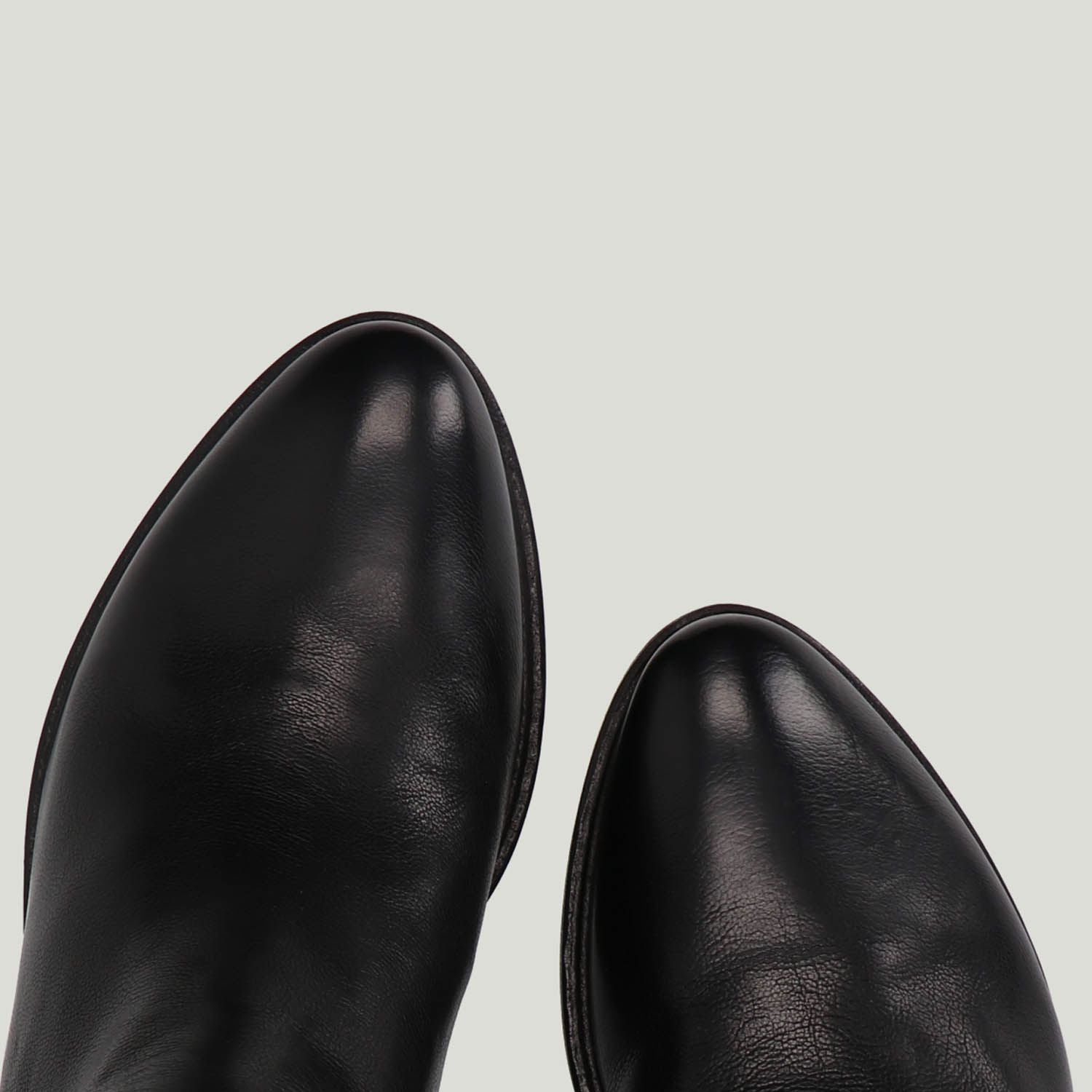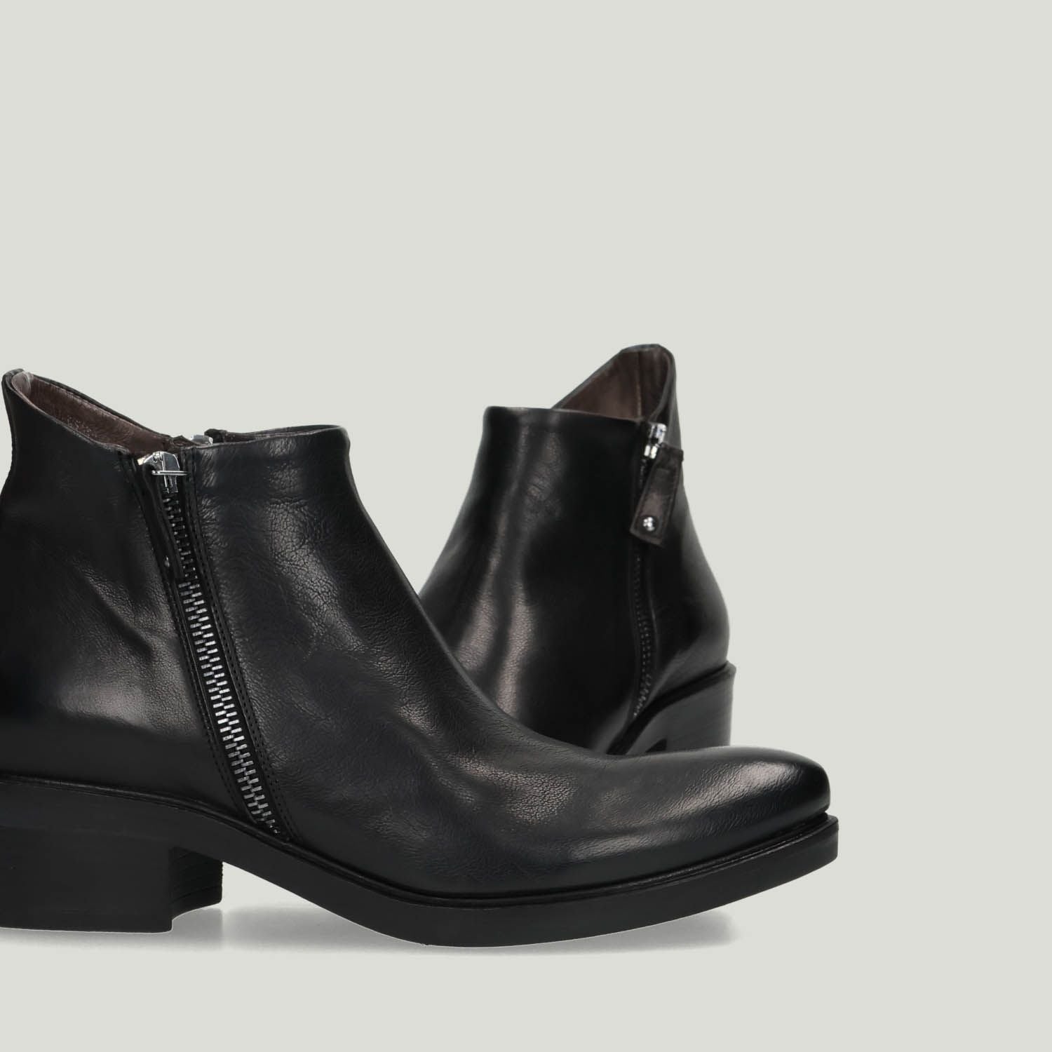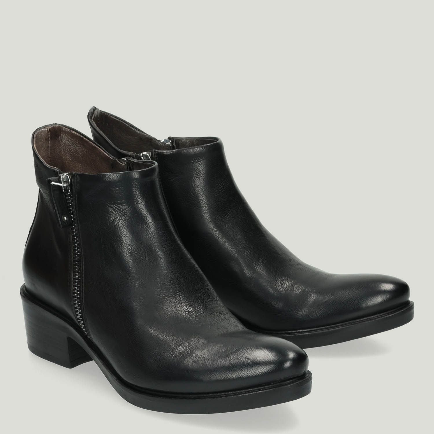 Schwarze Stiefelette aus Leder. Doppelseitiger Reißverschluss. Lederfutter mit fest integrierter Innensohle. Gummisohle mit 4 cm Absatz. Aus der Damen-Herbst-/Winterkollektion von Hundred100.
