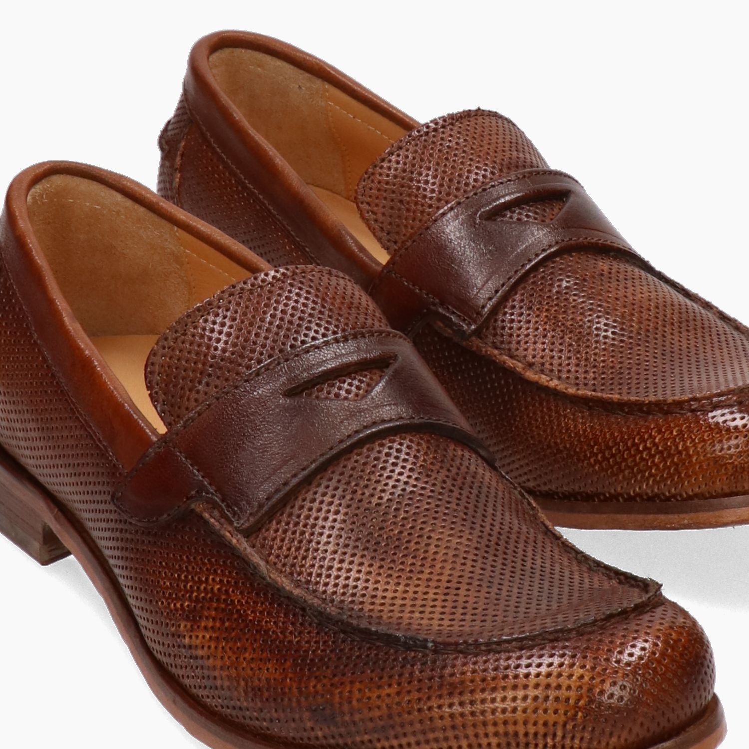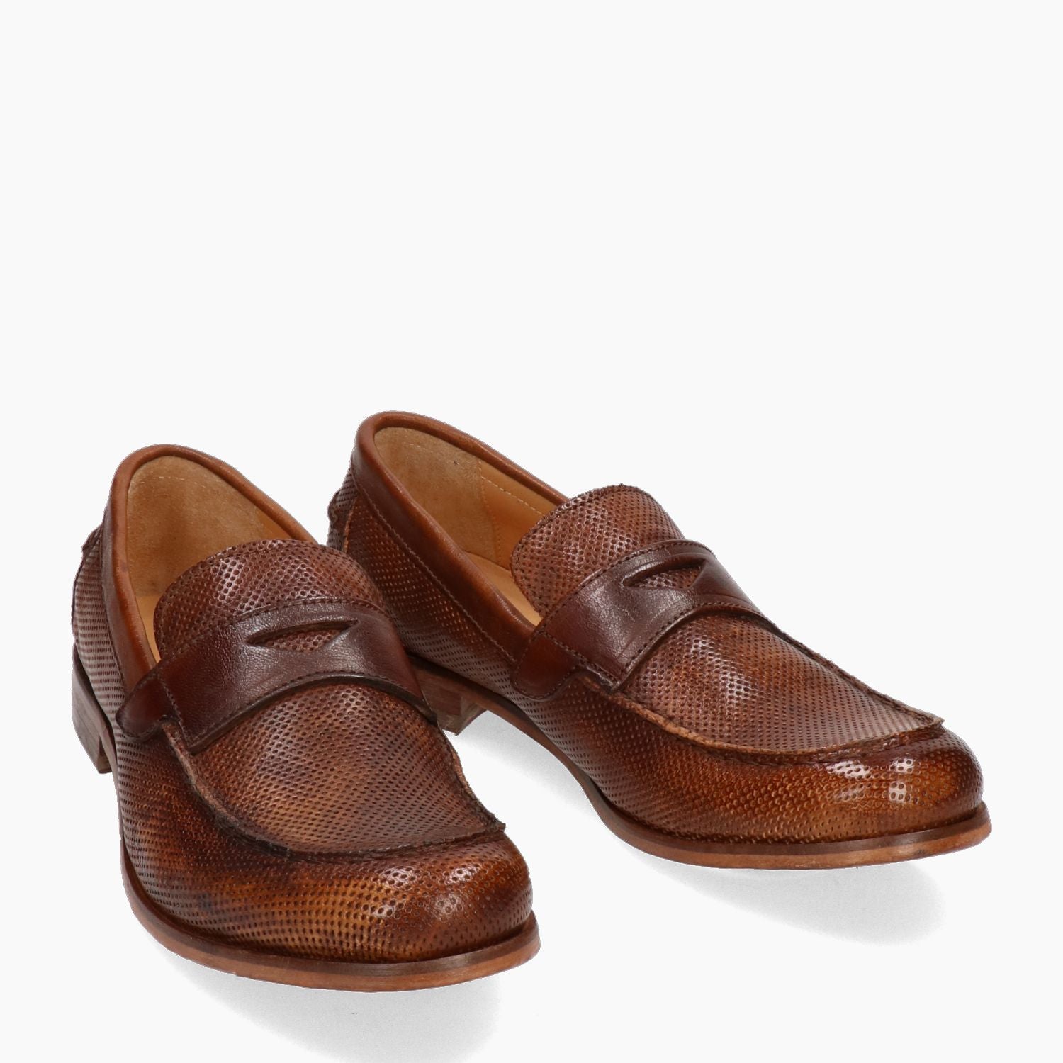 Jp/David Mokassin mit braunem Obermaterial aus genarbtem Leder im Used-Look. Runde Zehenpartie. Lederfutter. Ledersohle mit rutschfester Gummieinlage und 2 cm Absatz. Jp/David Herren-Frühjahr/Sommer-Kollektion.