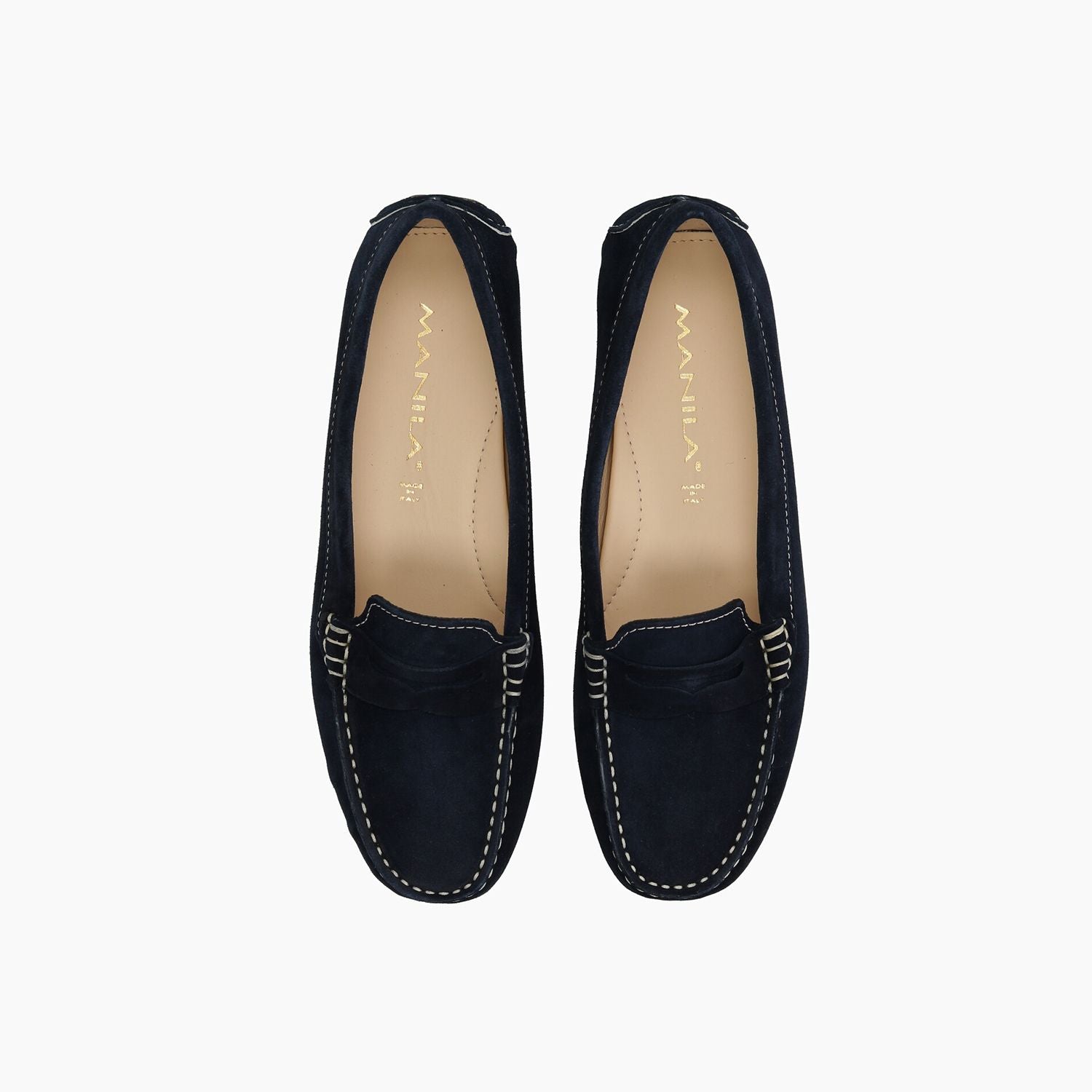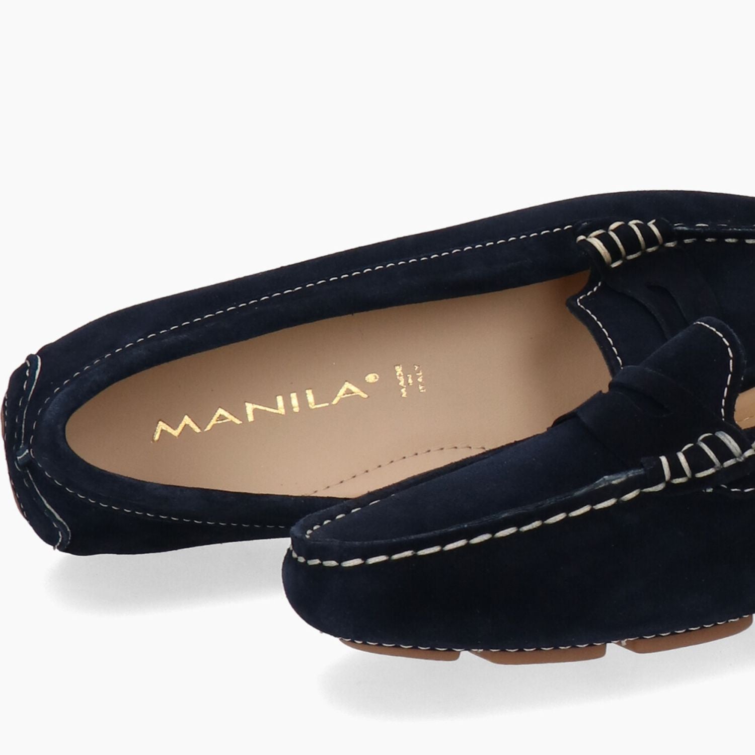 Blaue Wildledermokassins, Gummisohle.