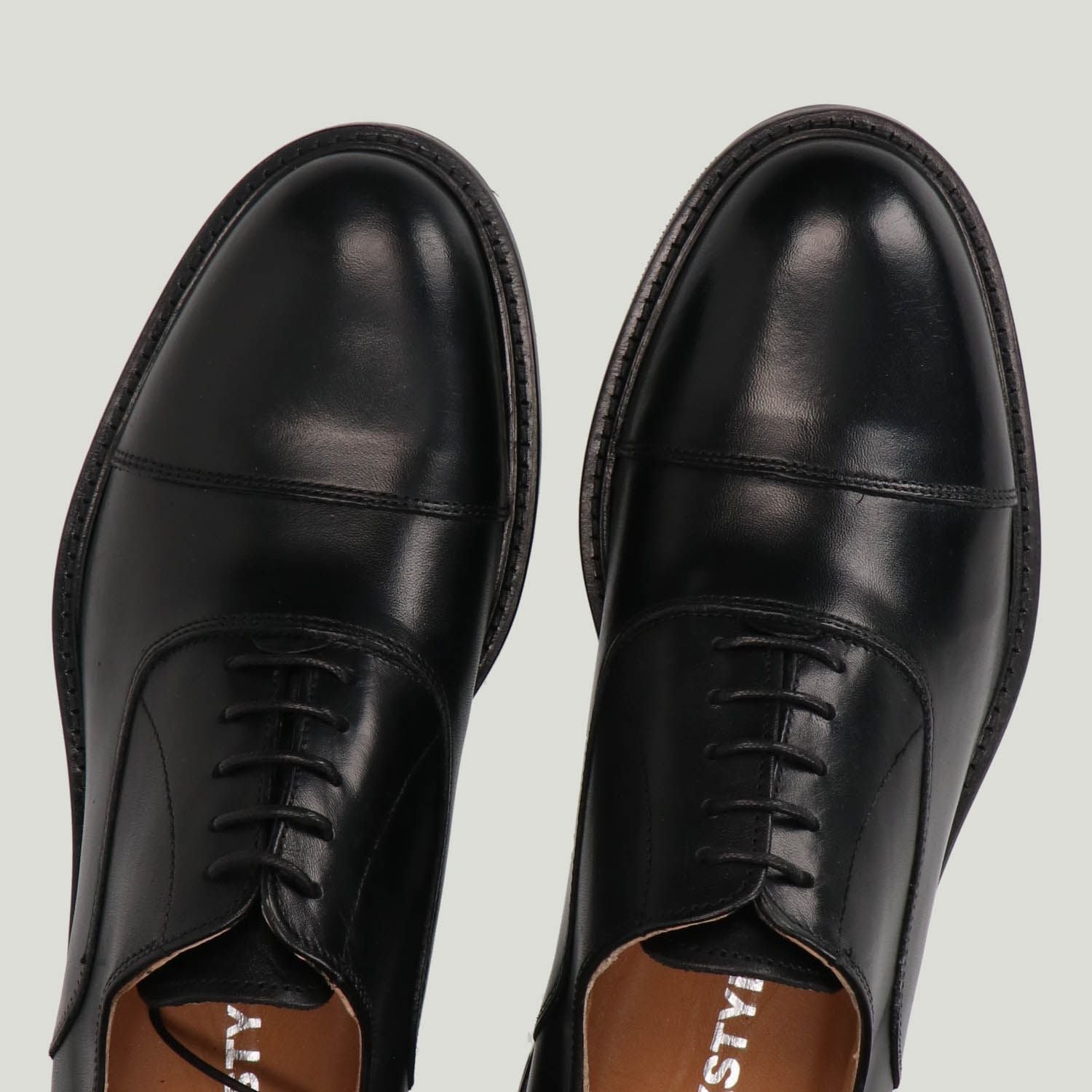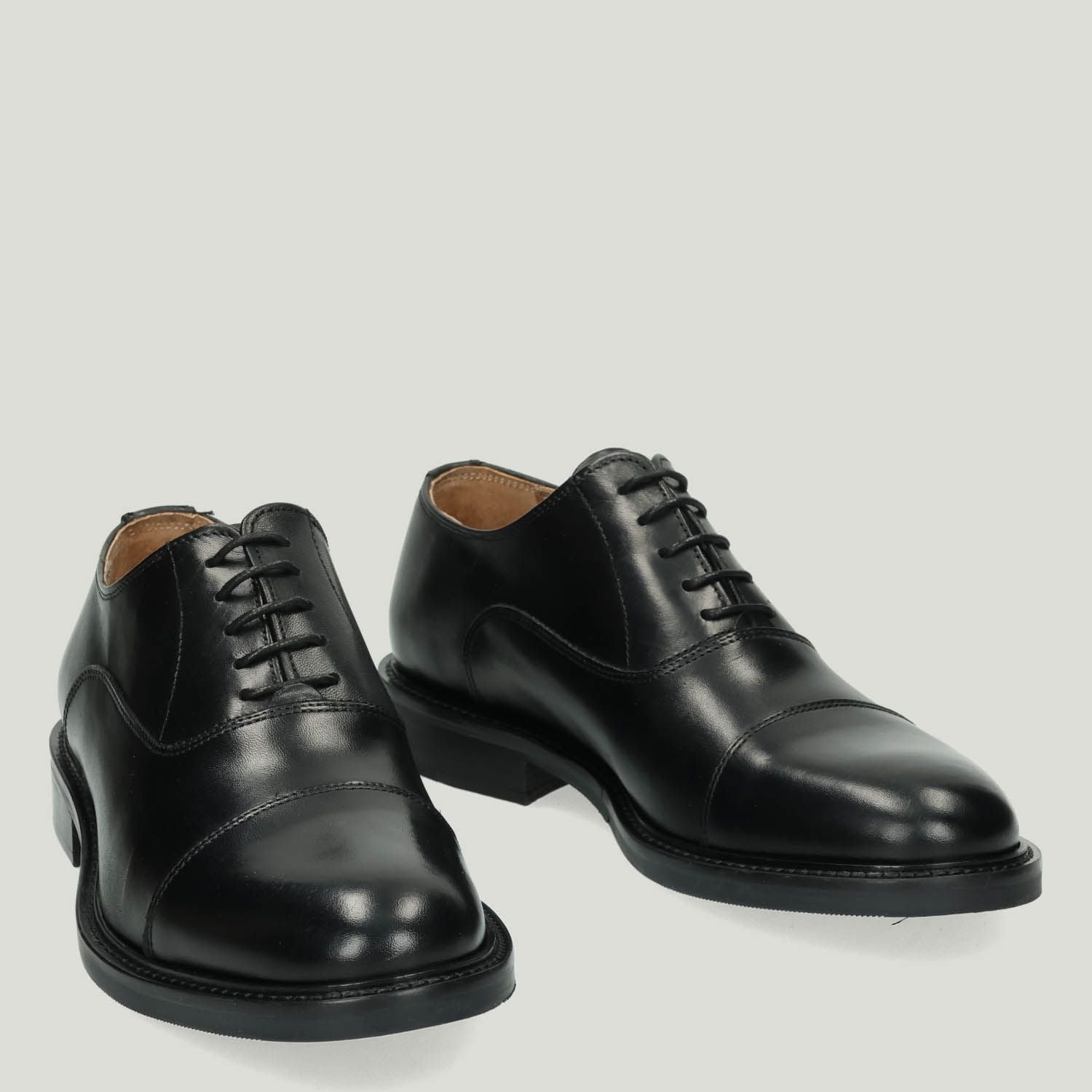 Oxfordschuhe mit schwarzer Lederkappe. Schnürverschluss. Lederfutter. Sohle aus Leder und Gummi mit 2,5 cm Absatz. Herrenkollektion Maxstyle.
