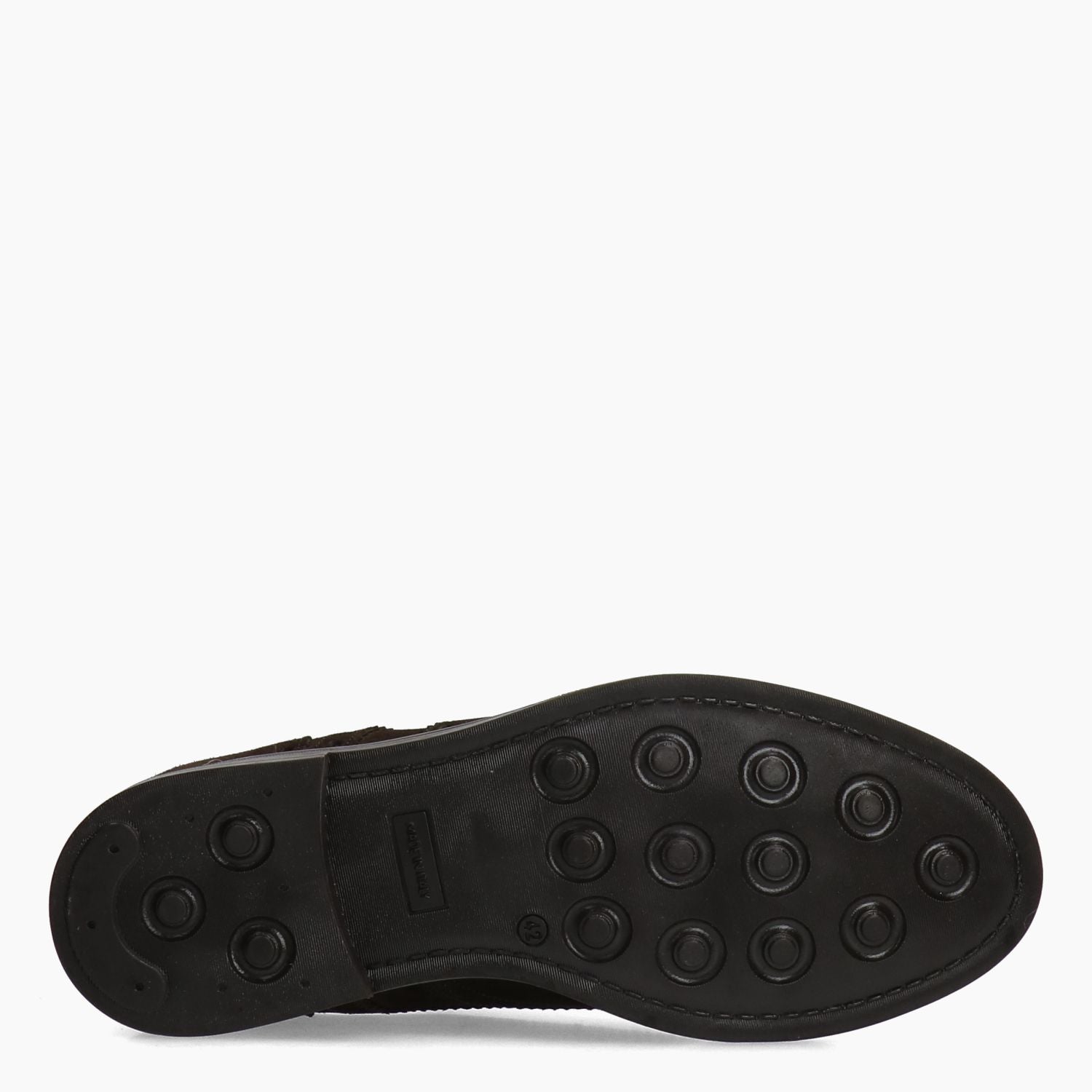 Dunkelbrauner Schnürschuh aus Wildleder mit Schwalbenschwanzdetail. Schnürverschluss. Lederfutter. Profilsohle aus Gummi. 3 cm Absatz. Maxstyle Herren Herbst/Winter Kollektion.