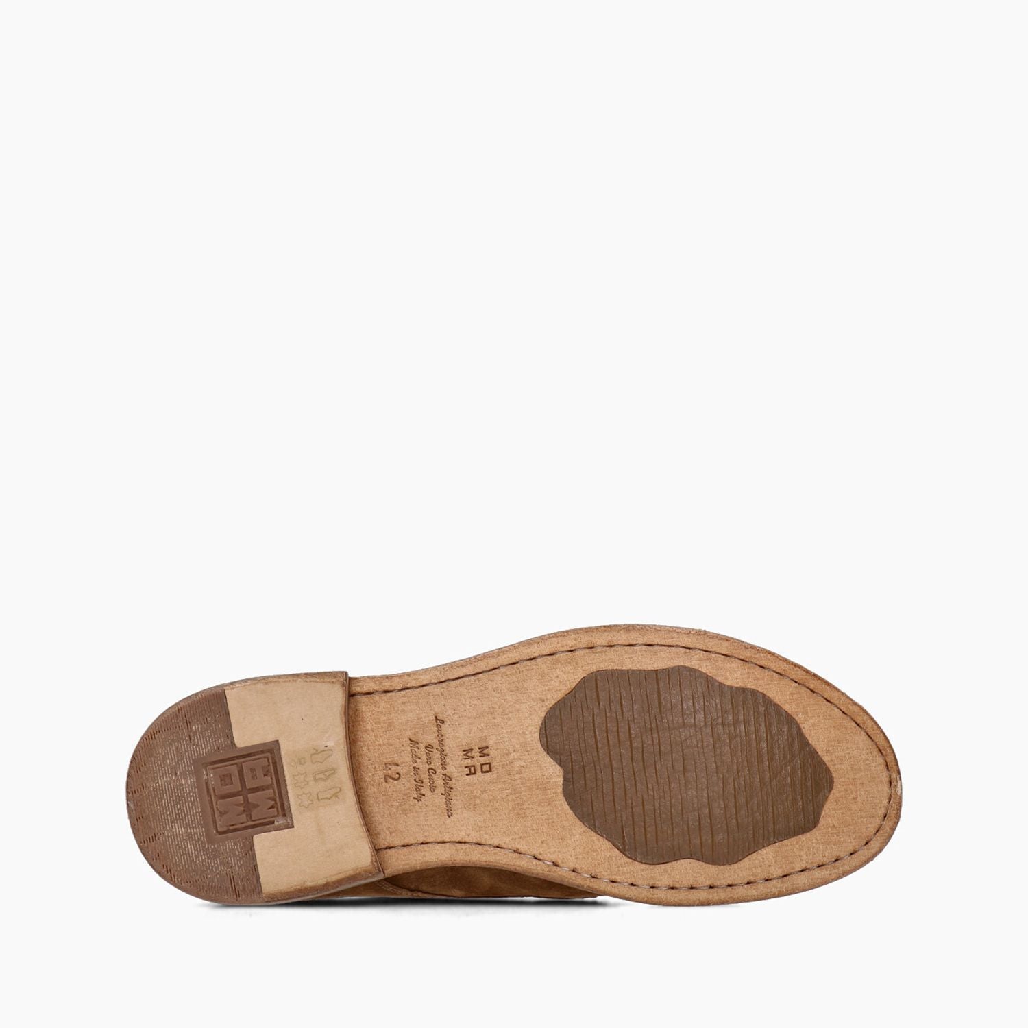 Leder-Derby. Obermaterial aus kamelfarbenem Veloursleder. Runde Zehenpartie. Schnürverschluss. Lederfutter. Gummisohle. 3 cm hoher Blockabsatz. Moma Herren-Frühjahr/Sommer-Kollektion.