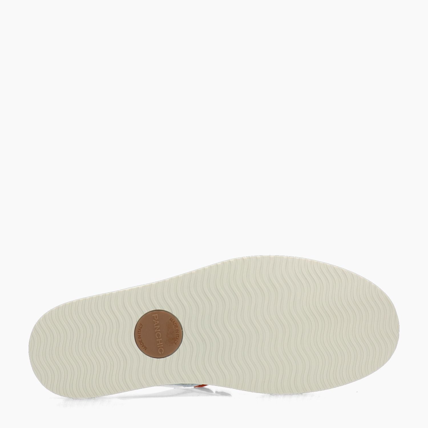 Weiße Ledersneaker mit seitlichen, nicht durchgehenden Perforationen. Zehenkappe aus sandfarbenem Wildleder. Beige Leder-Fersenkappe. Schnürverschluss in Ziegelrot mit hellgrauen Ersatzschnürsenkeln. Futter aus Textil und Leder. Herausnehmbare Innensohle. 3 cm hohe Gummisohle. Panchic Herren-Frühjahr/Sommer-Kollektion.