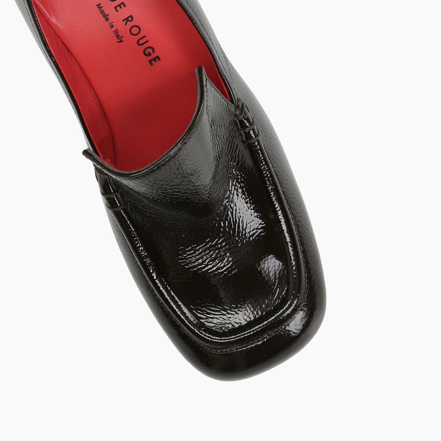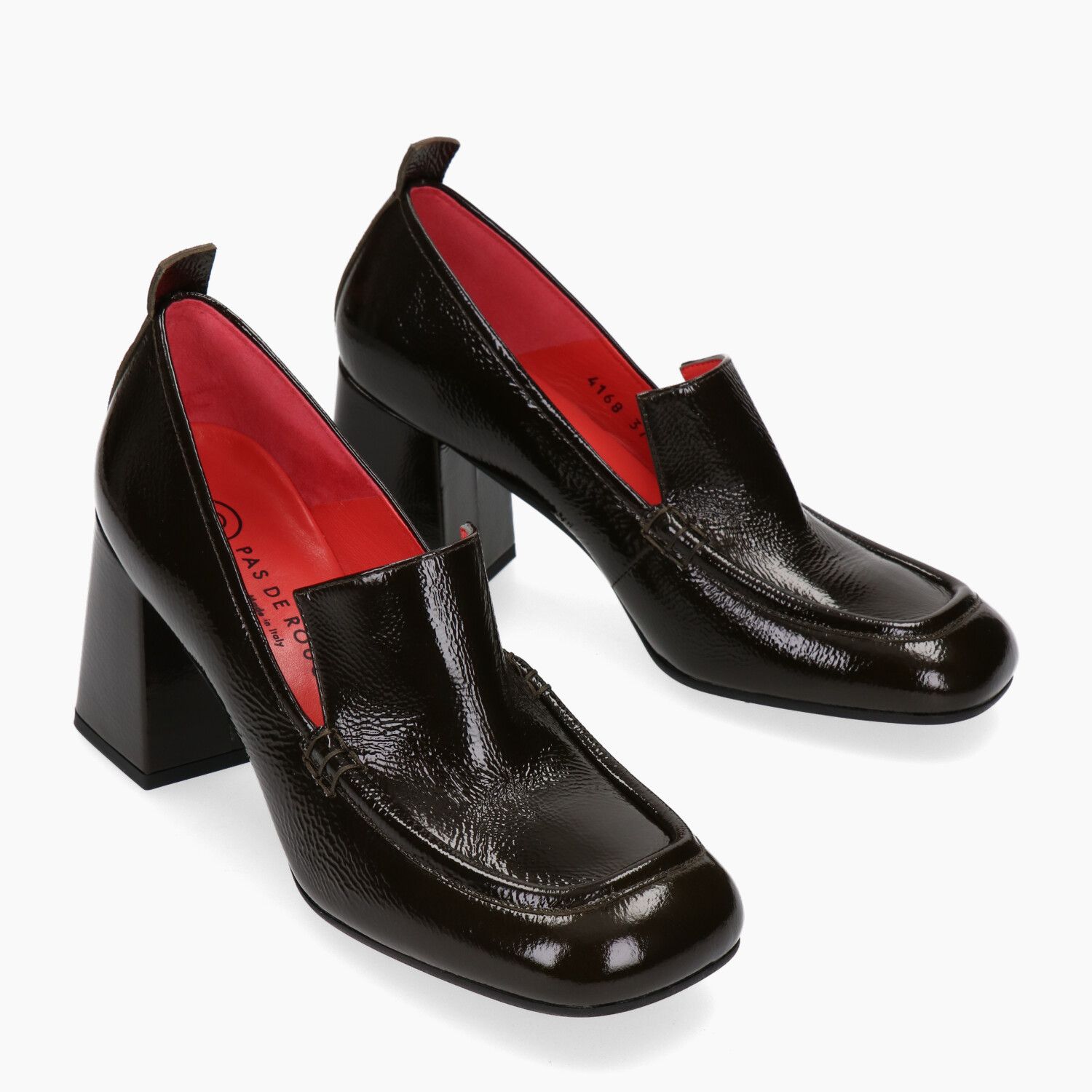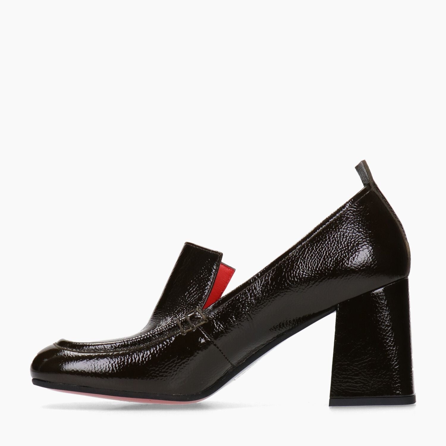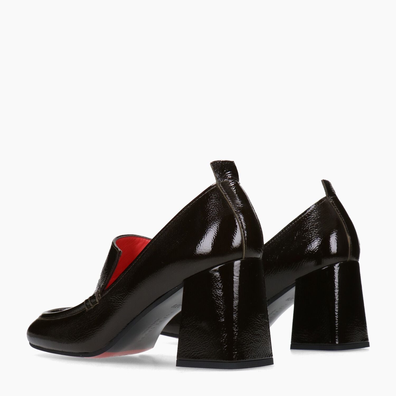 Waldgrüne Lackleder-Loafer mit Gummisohle.