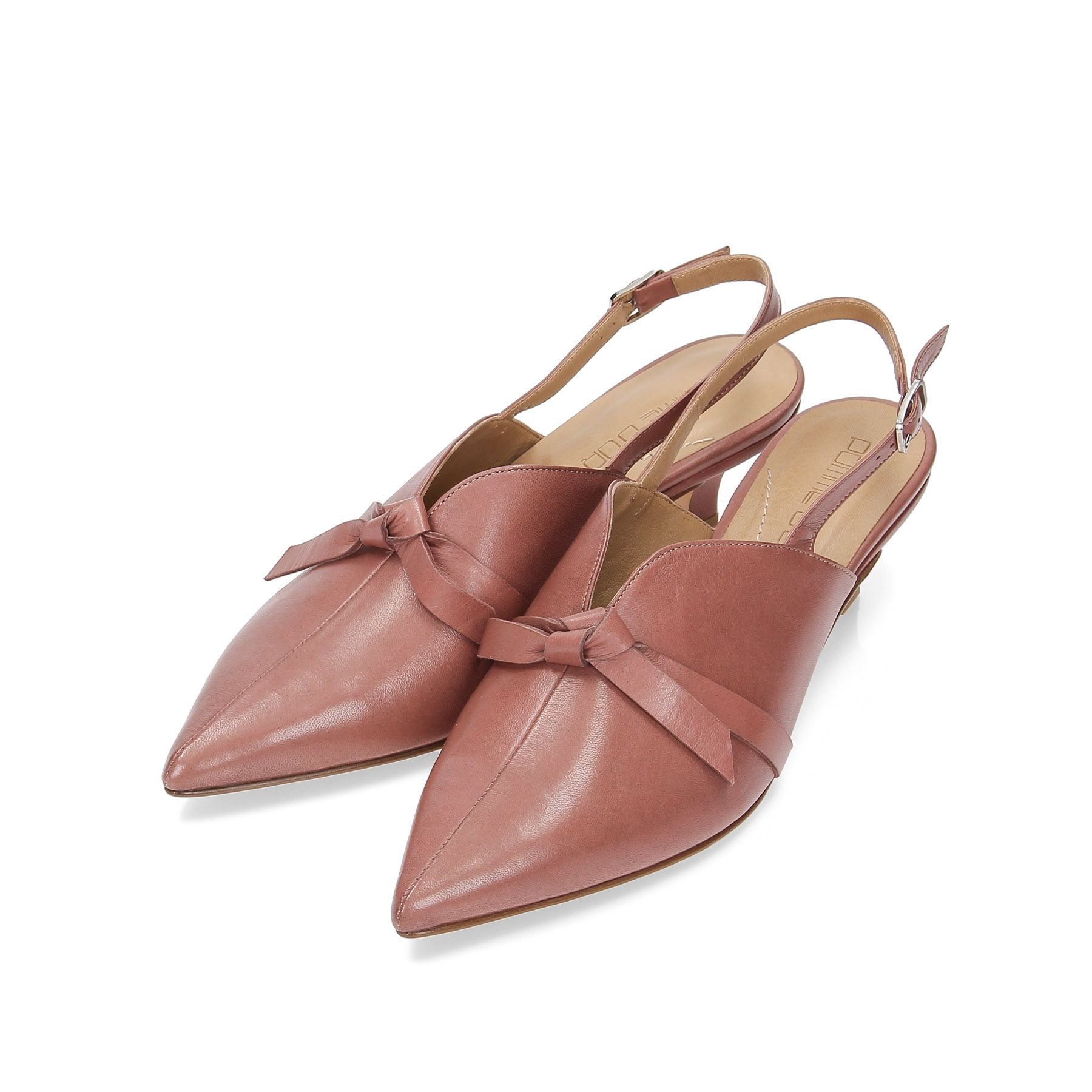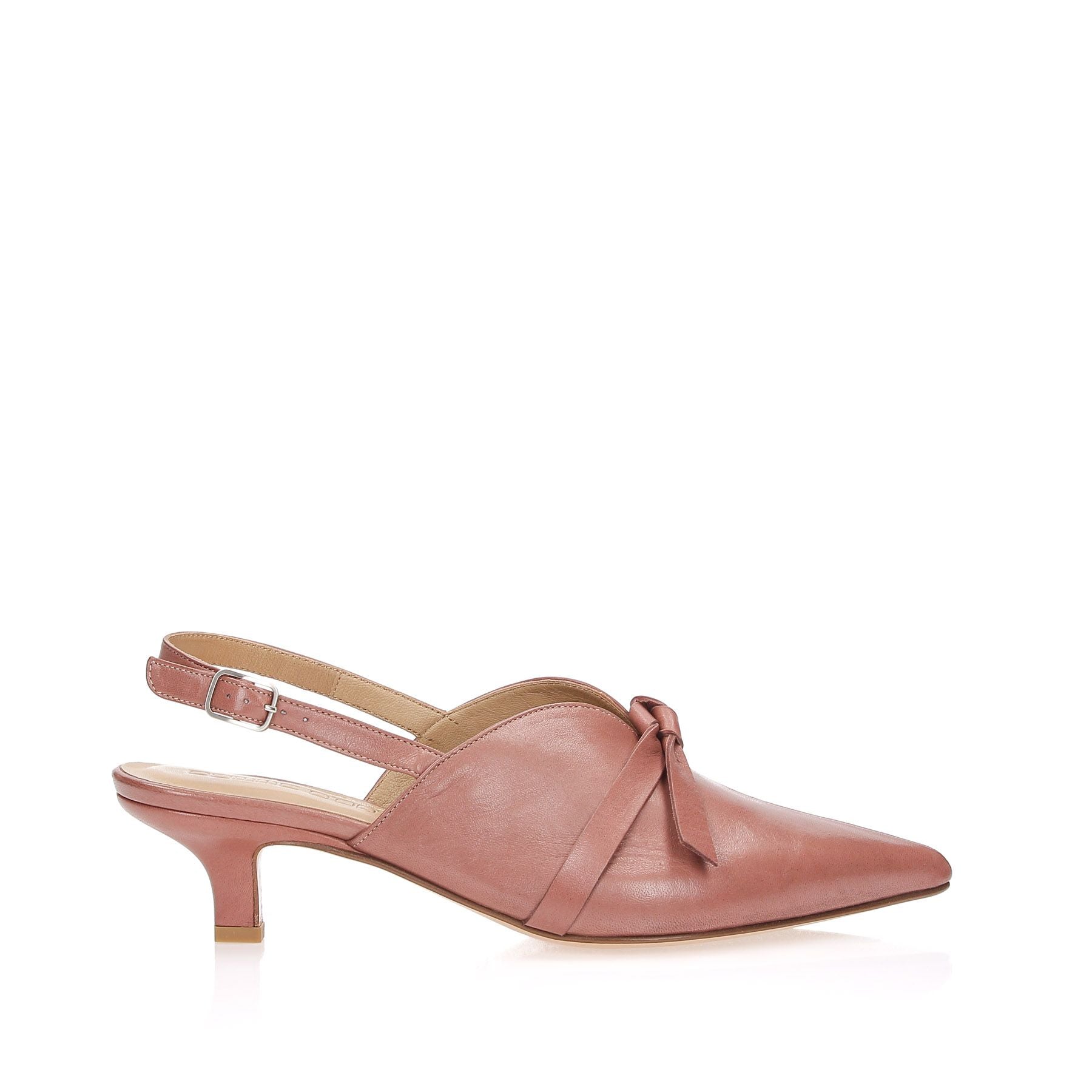 Chanel-Pumps aus antikrosa Leder mit V-Ausschnitt und Schleife, 45 mm Absatz, Ledersohle.