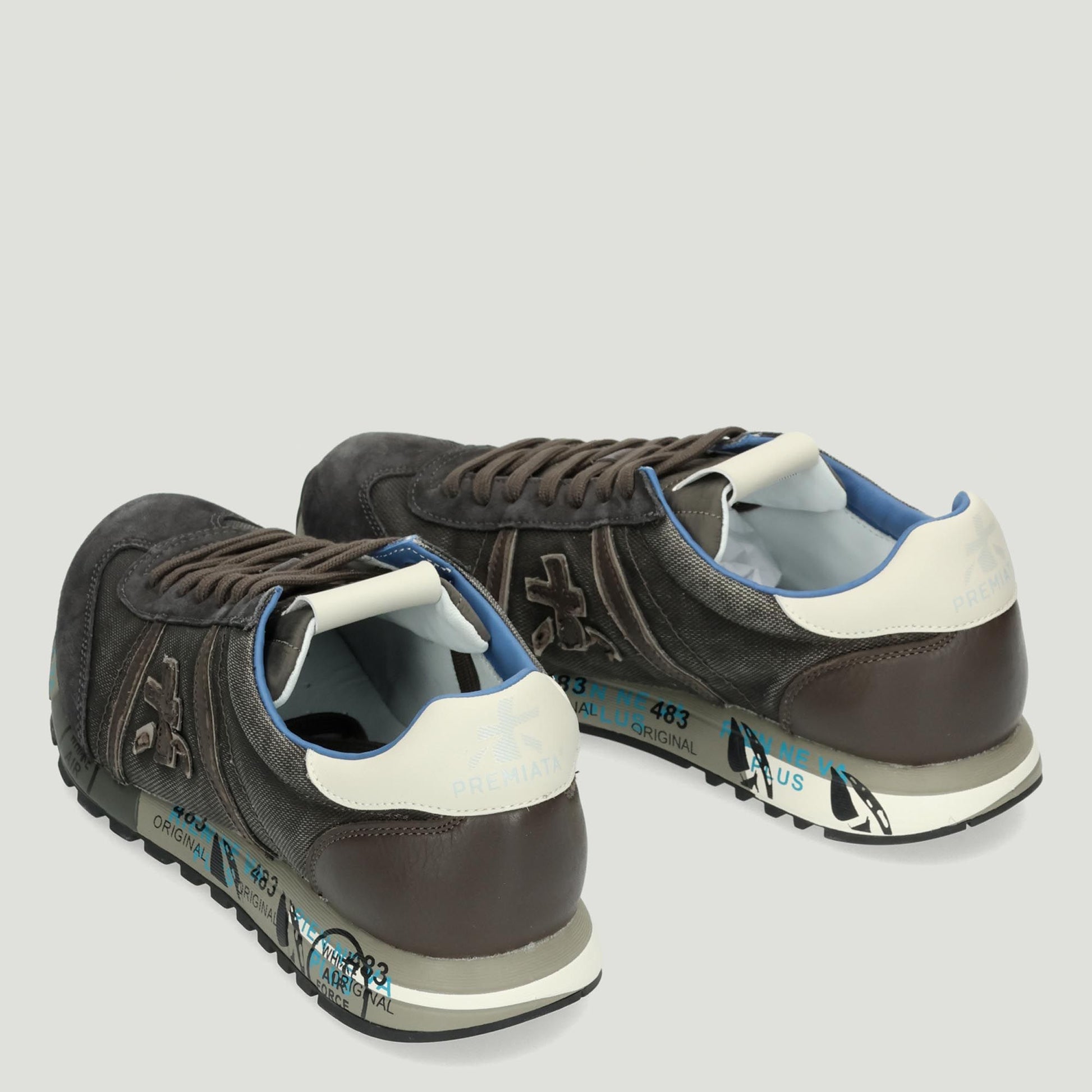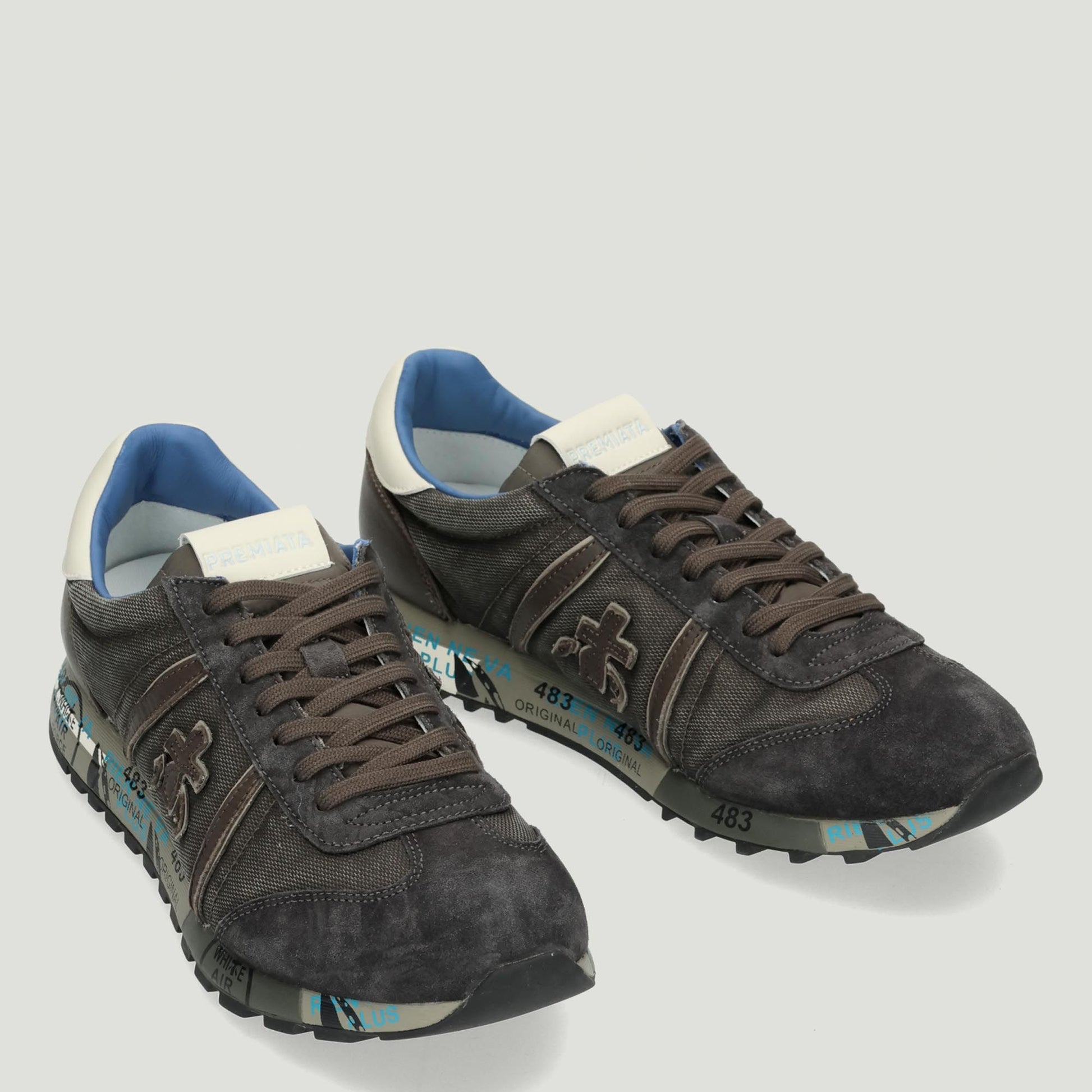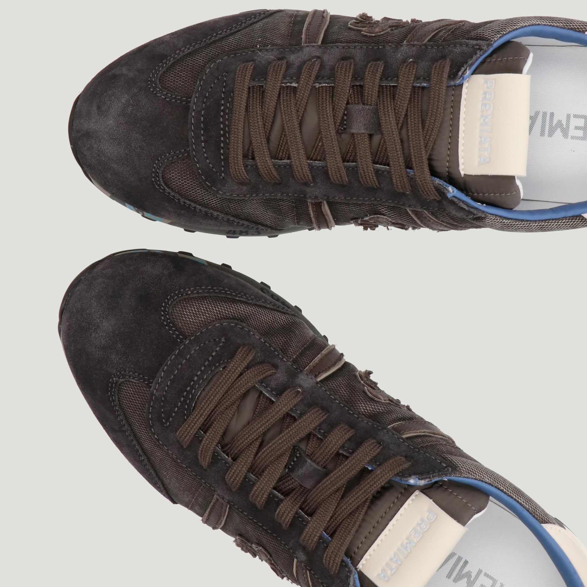 Premiata Sneaker mit dunkelbraunem Nylon- und passendem Veloursleder-Obermaterial. Logo aus elfenbeinfarbenem Leder. Passende Baumwollschnürsenkel. Logo-Zunge. Fersenlasche aus elfenbeinfarbenem Leder. Herausnehmbare Lederinnensohle. Gummisohle. Premiata Herrenkollektion.