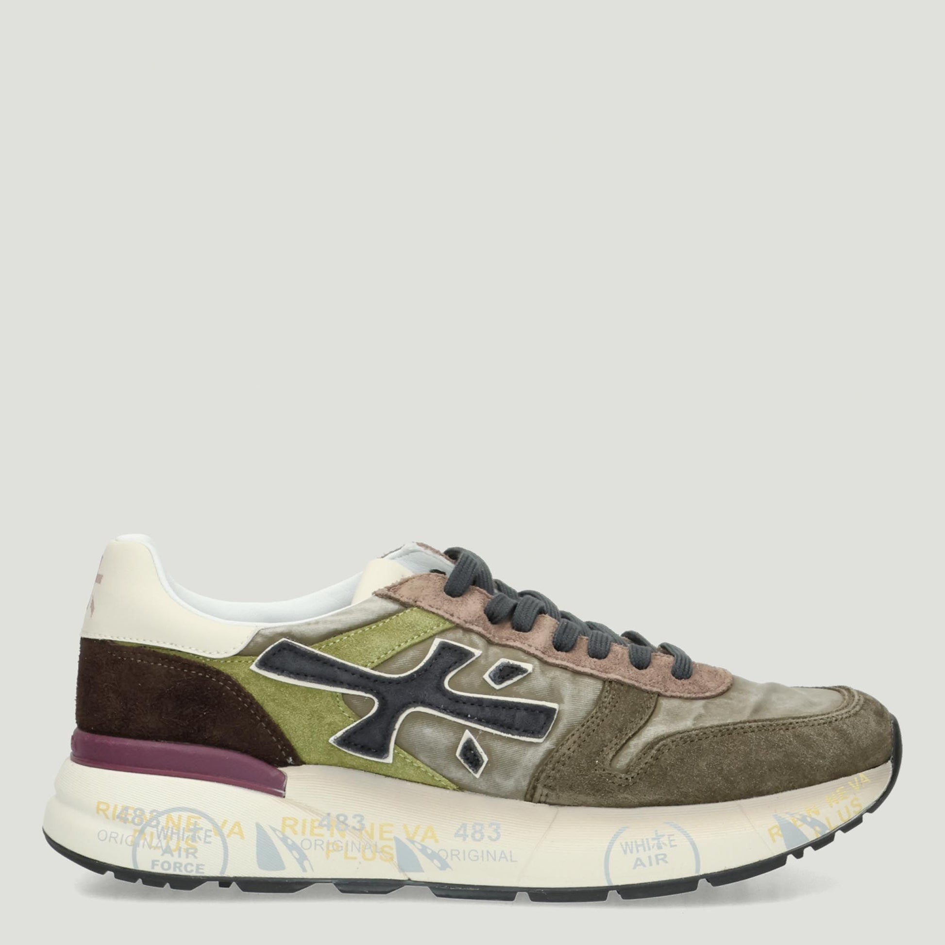 Premiata Mick Sneaker mit Obermaterial aus militärgrünem Nylon und Einsätzen aus militärgrünem Wildleder. Passender Schnürverschluss. Logo auf der Zunge. Logo auf der Fersenlasche. Herausnehmbare Lederinnensohle. 3,5 cm hohe Gummisohle. Premiata Herrenkollektion.