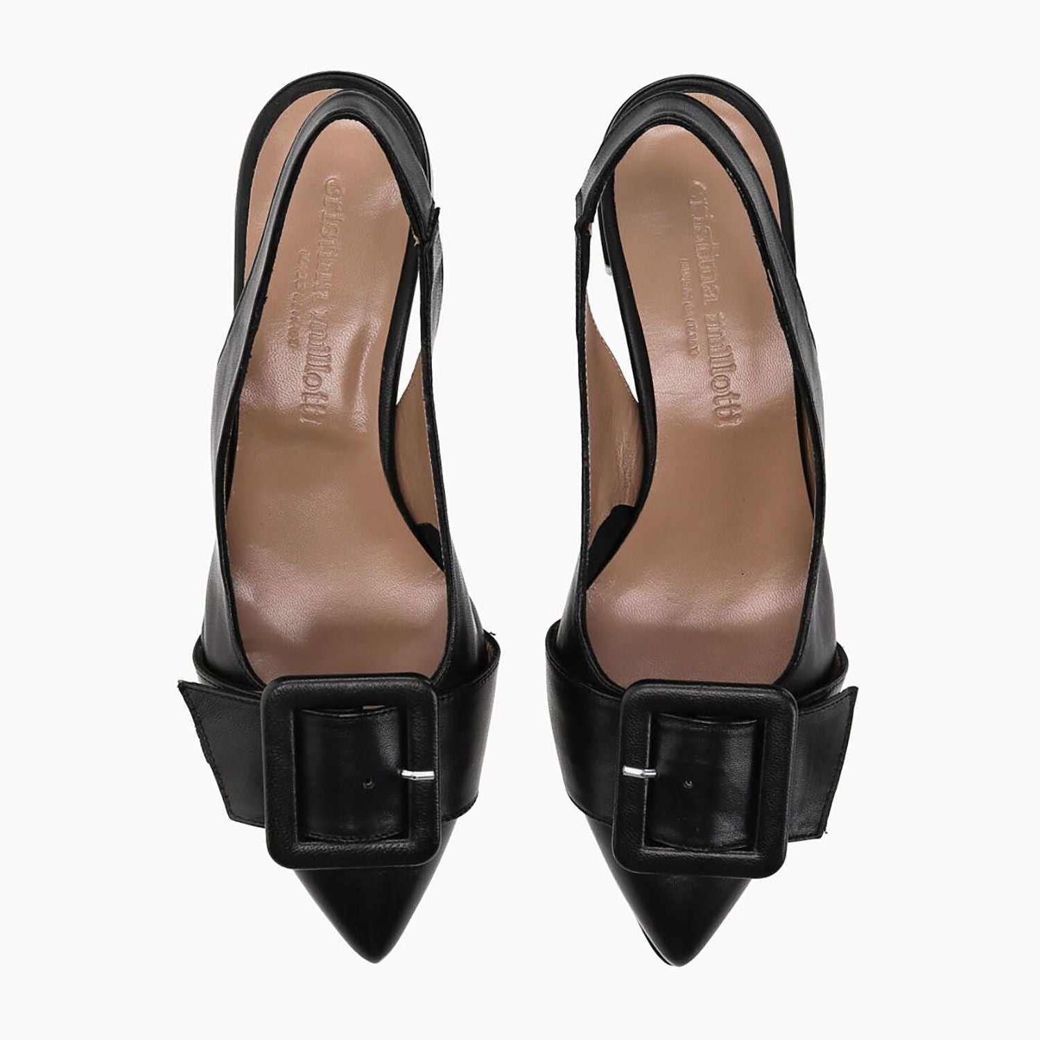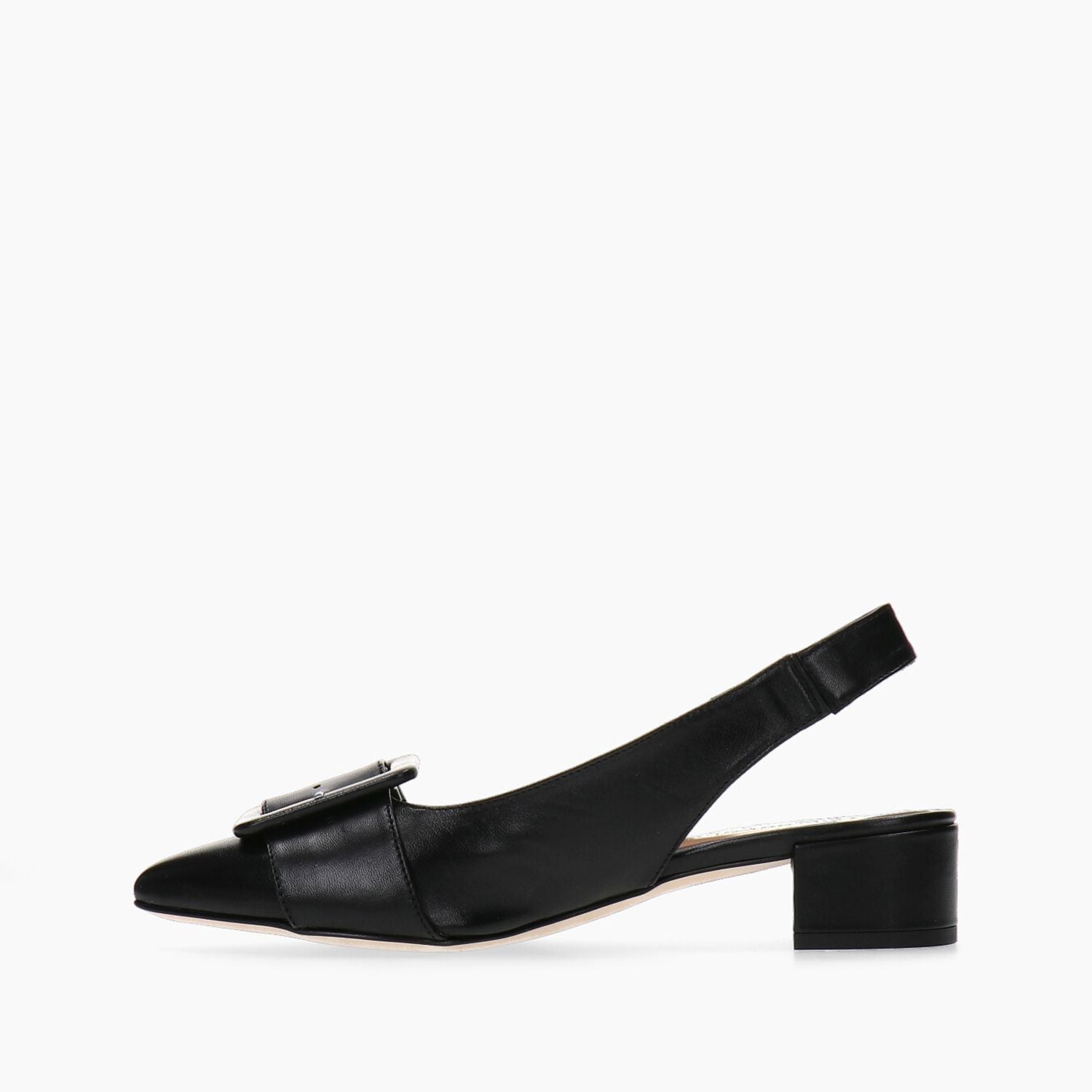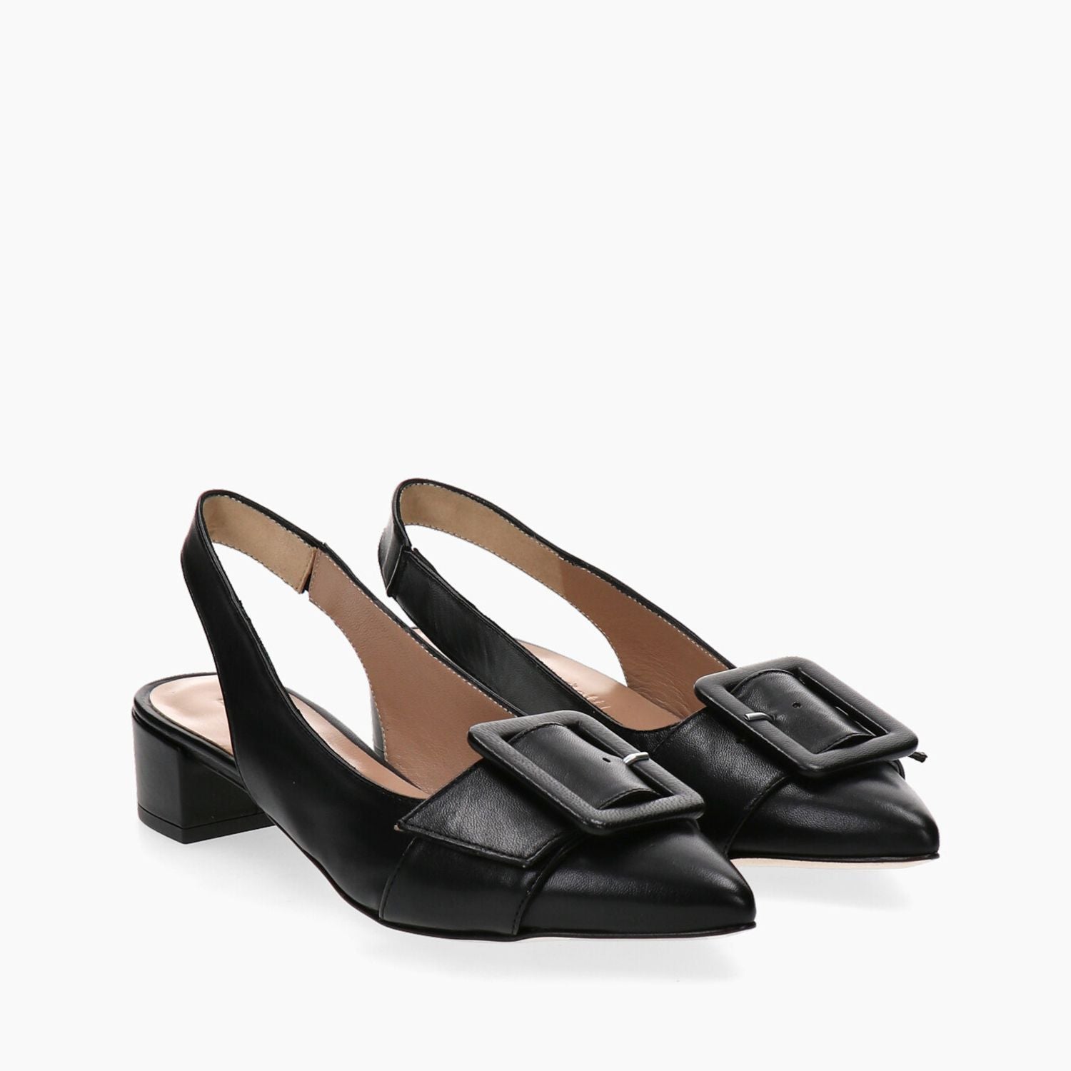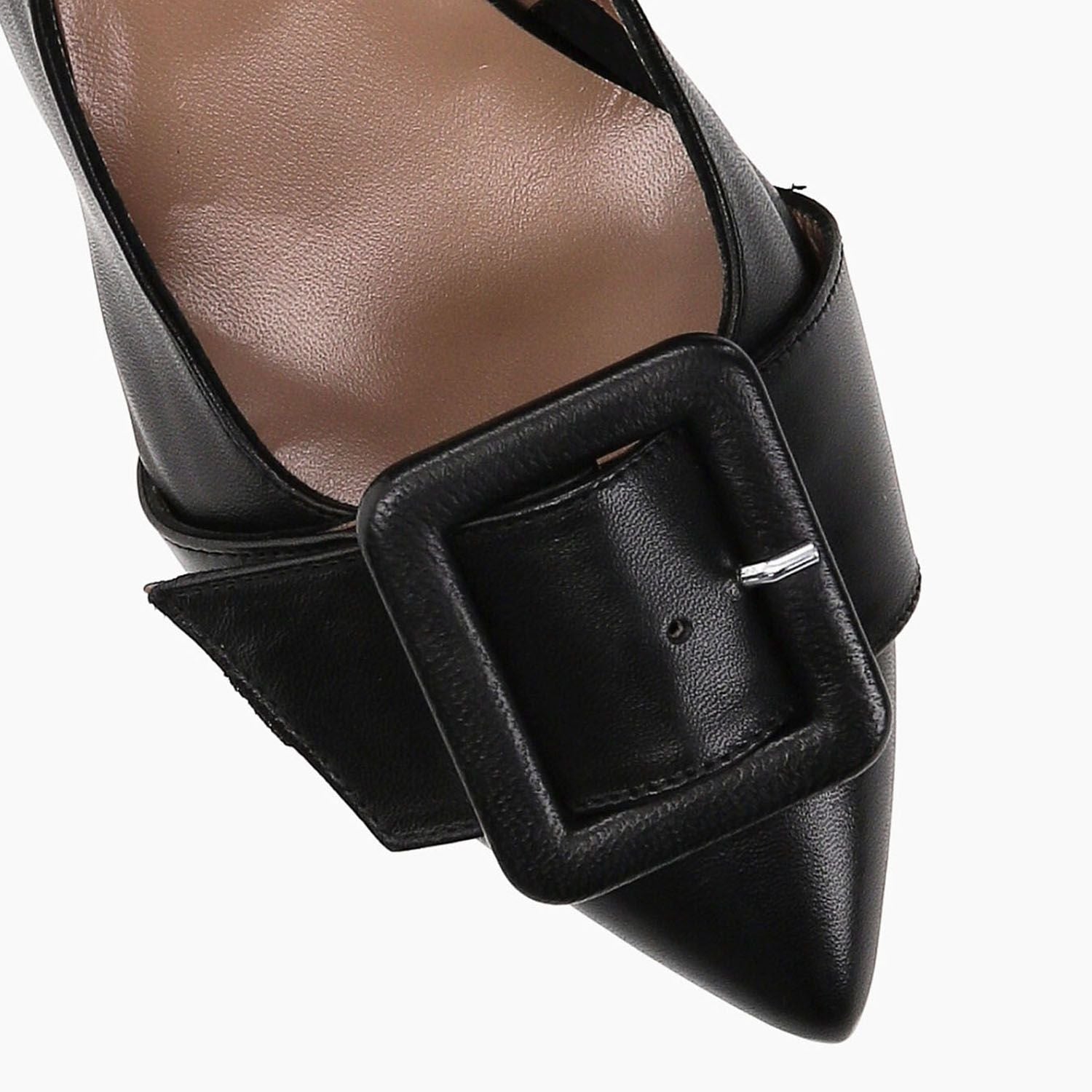 Schwarze Chanel-Lederschuhe mit Schnalle, 35 mm Absatz, Ledersohle.