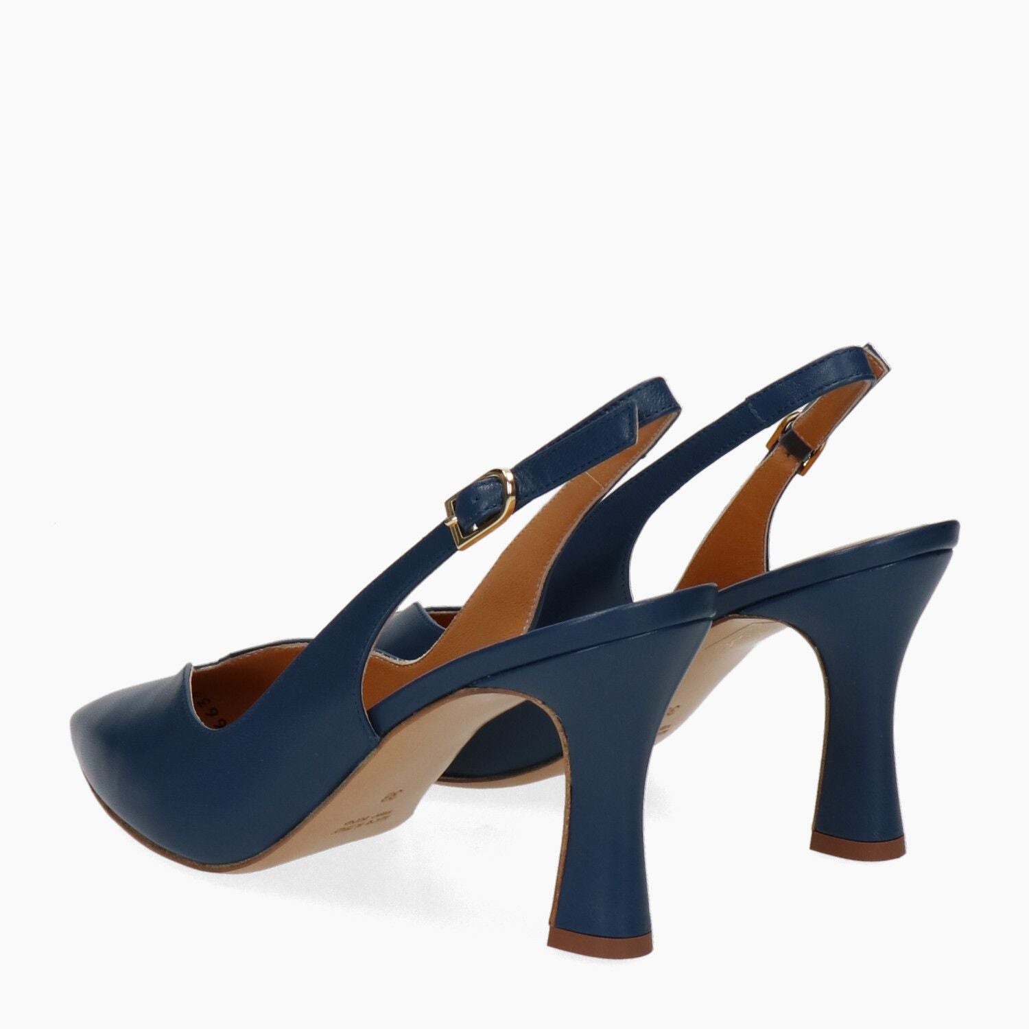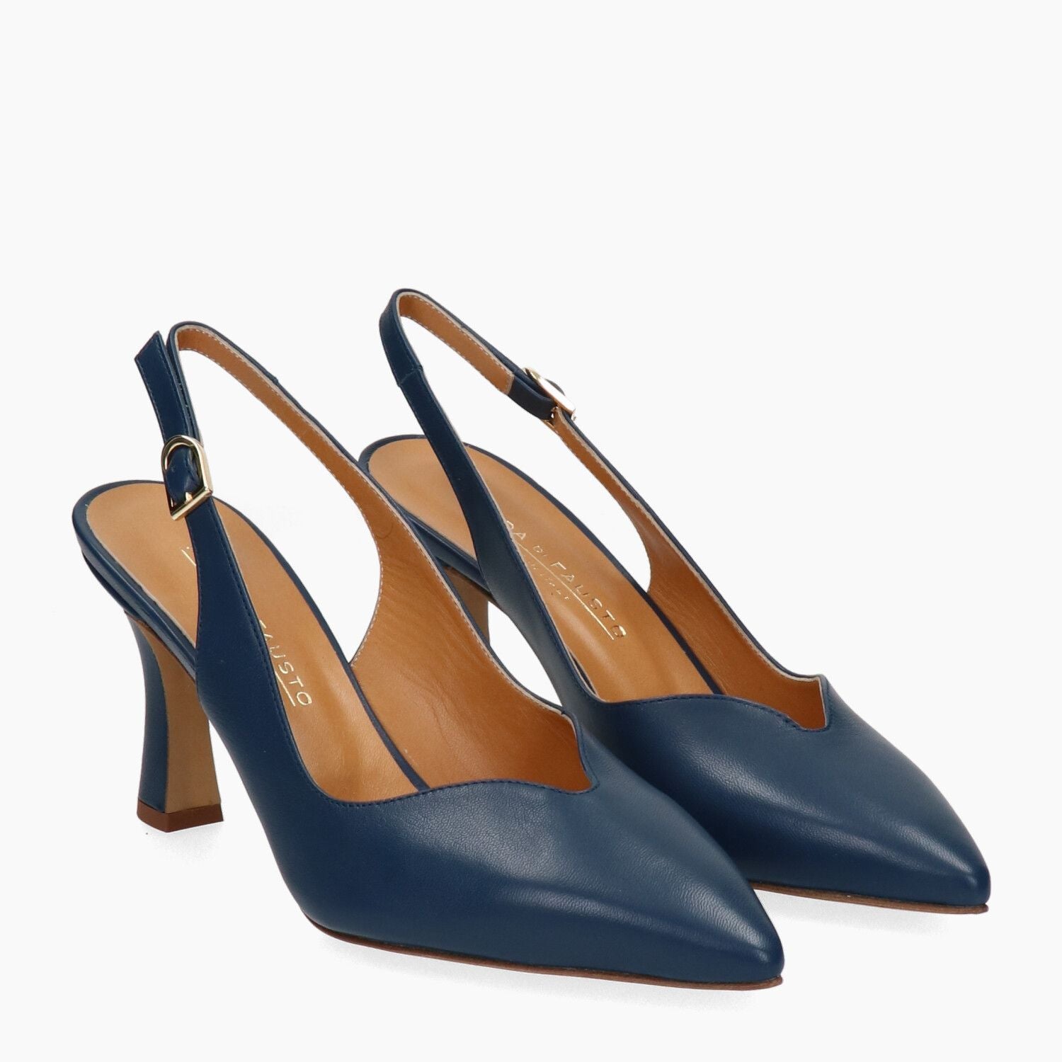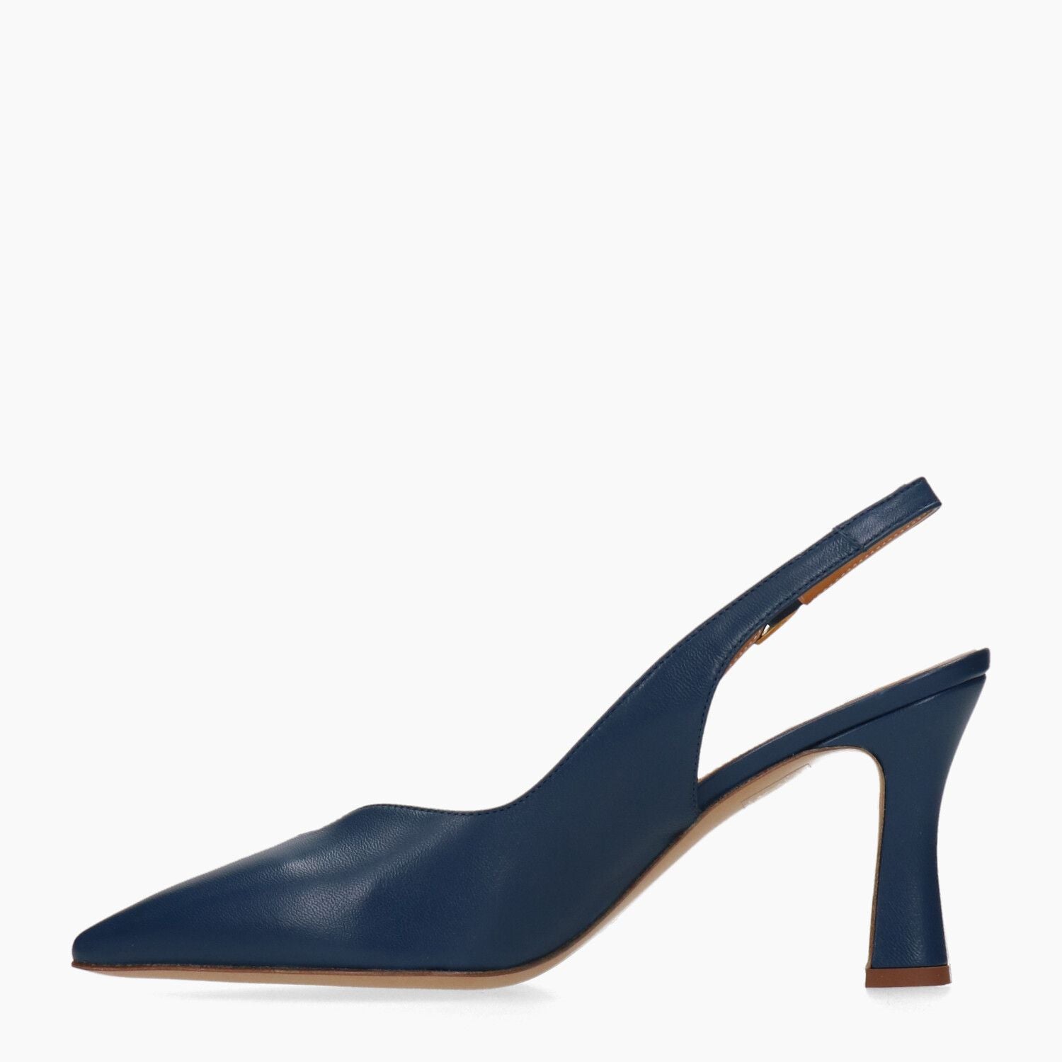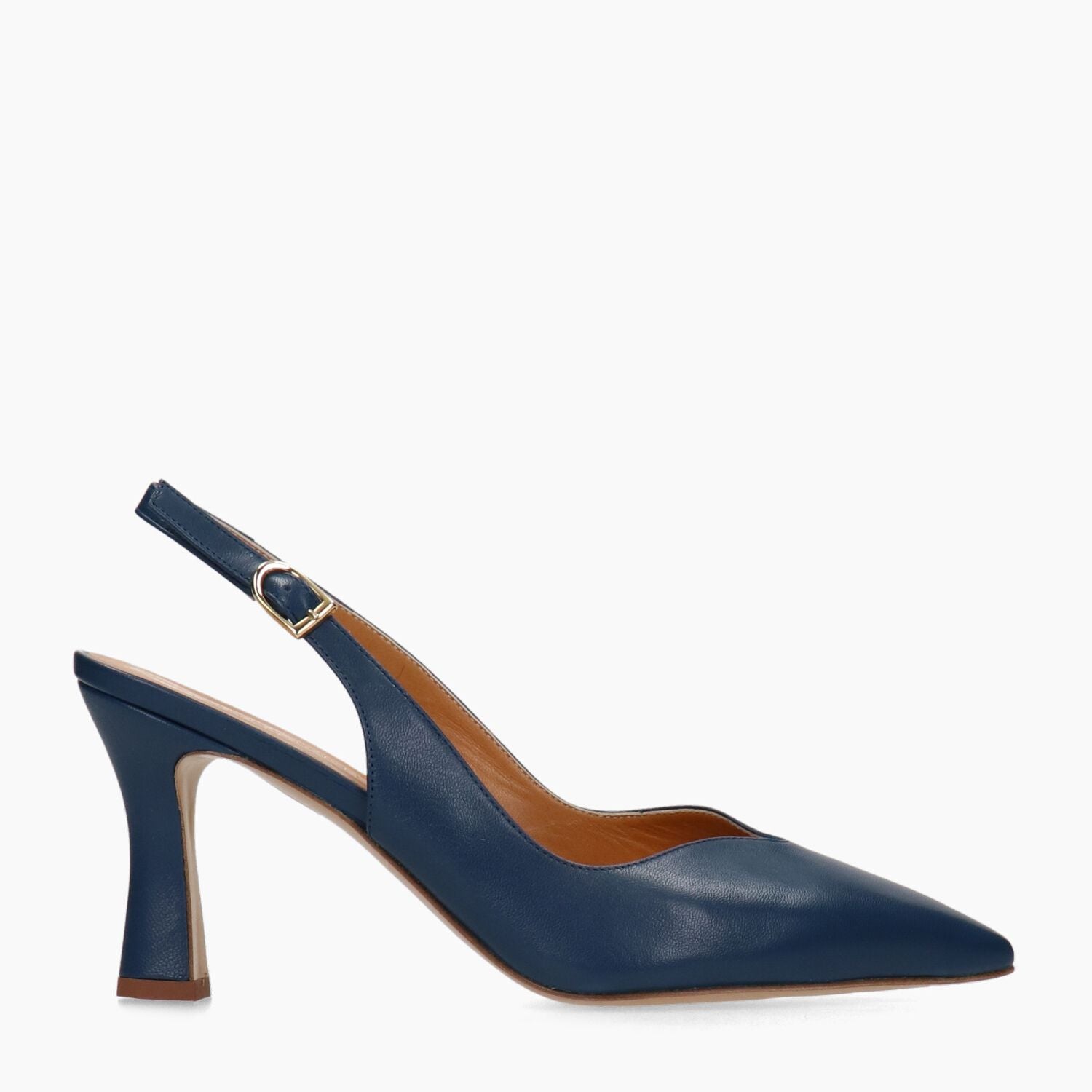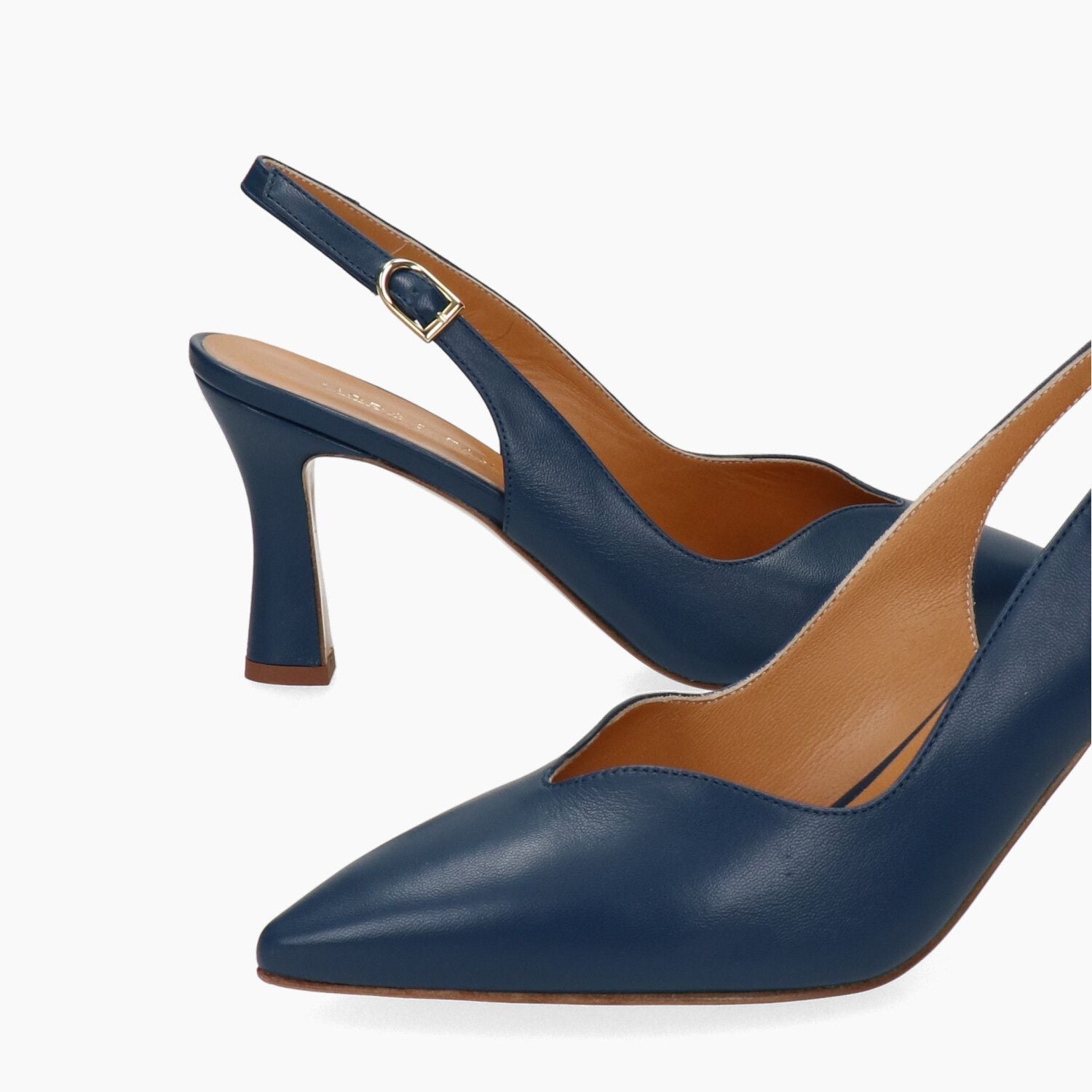 Chanel aus blauem Leder mit V-Ausschnitt und Ledersohle.