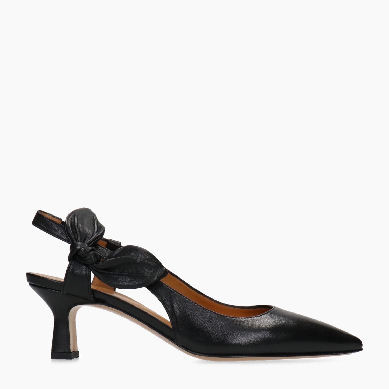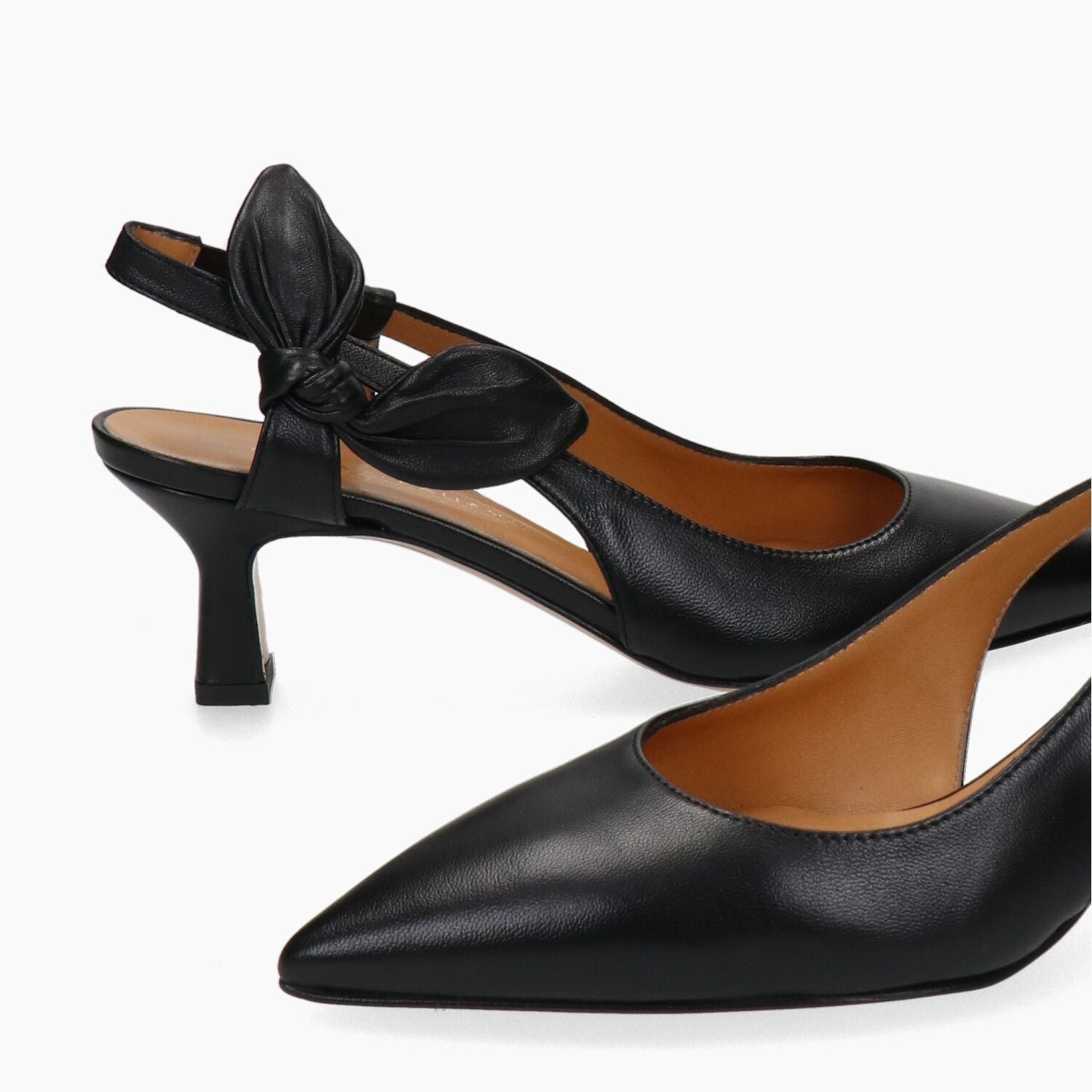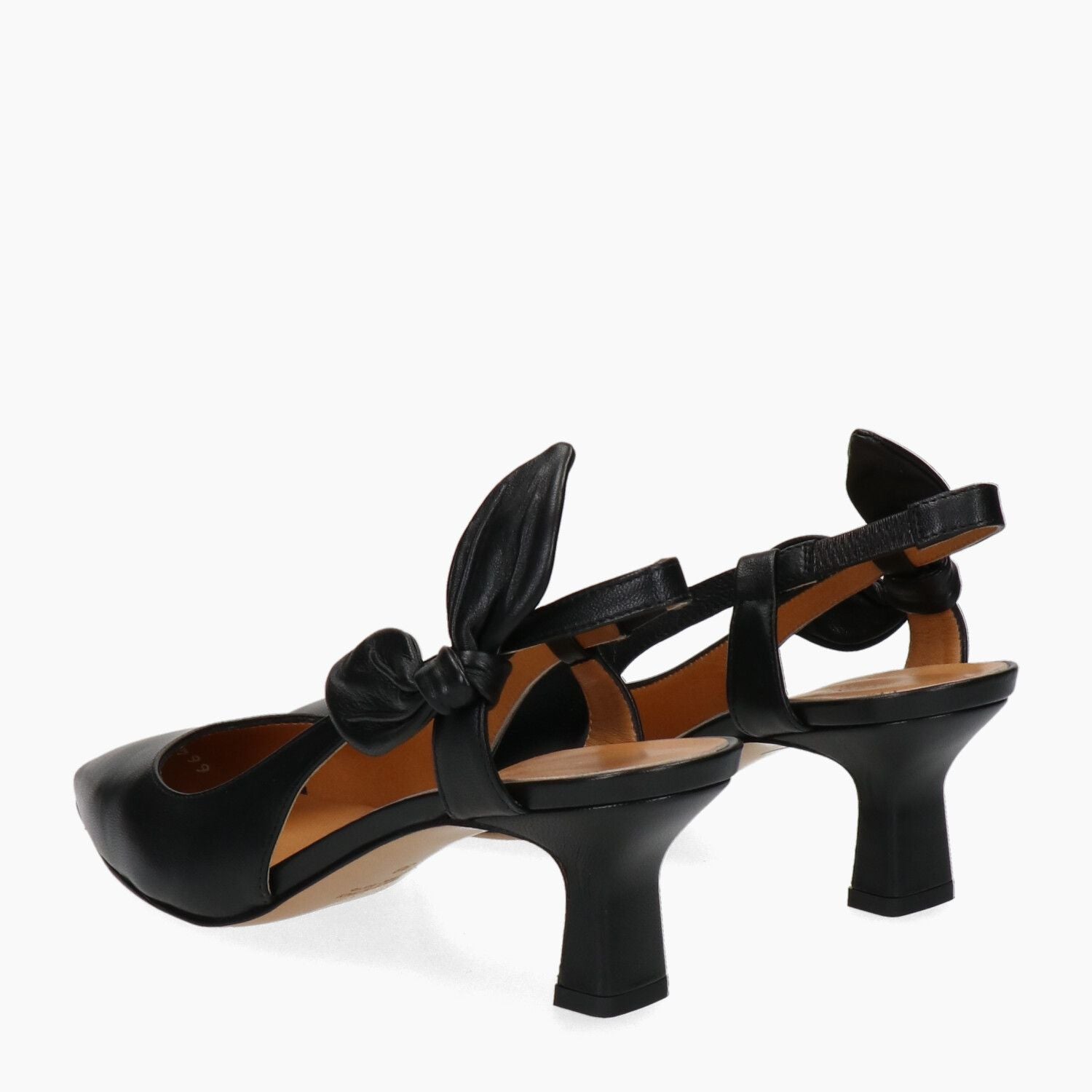 Chanel aus schwarzem Leder mit Knoten am Riemen und Ledersohle.