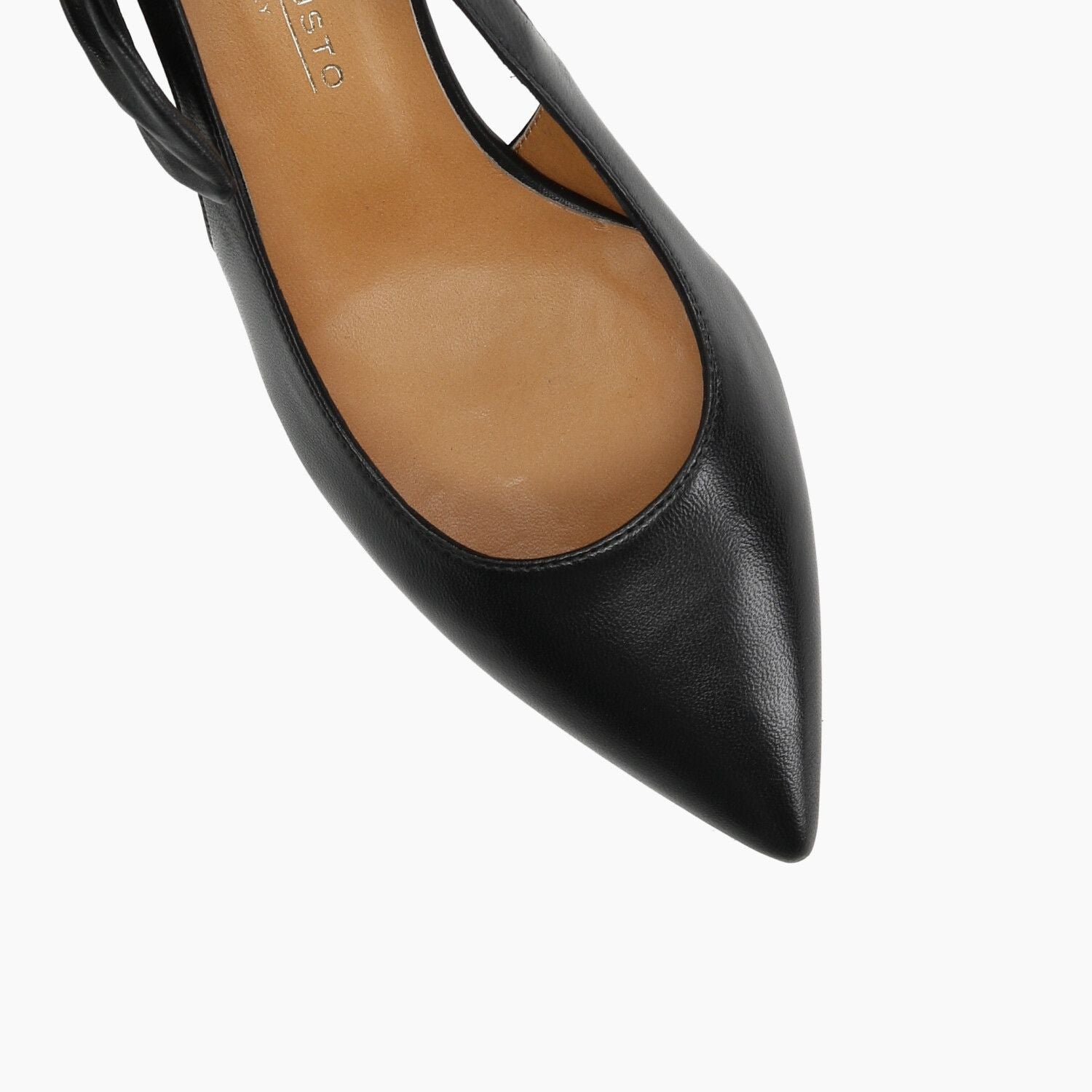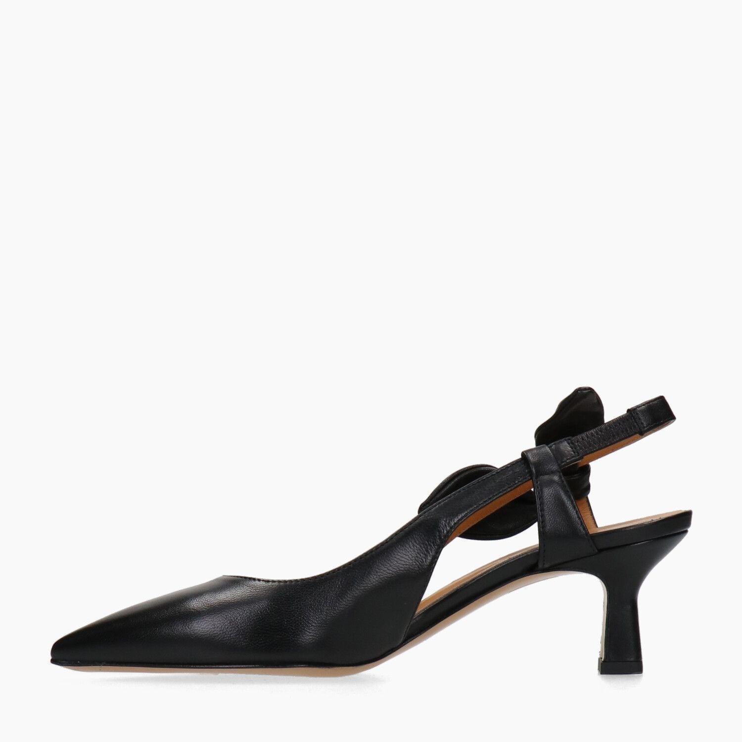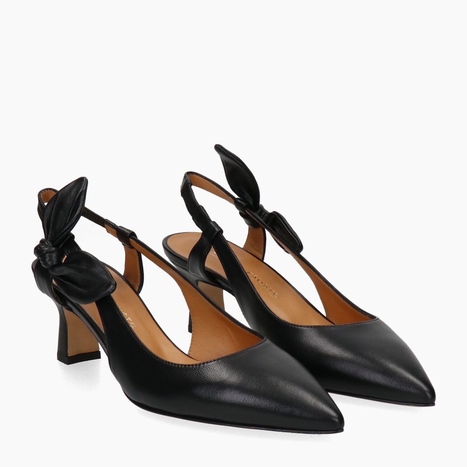 Chanel aus schwarzem Leder mit Knoten am Riemen und Ledersohle.