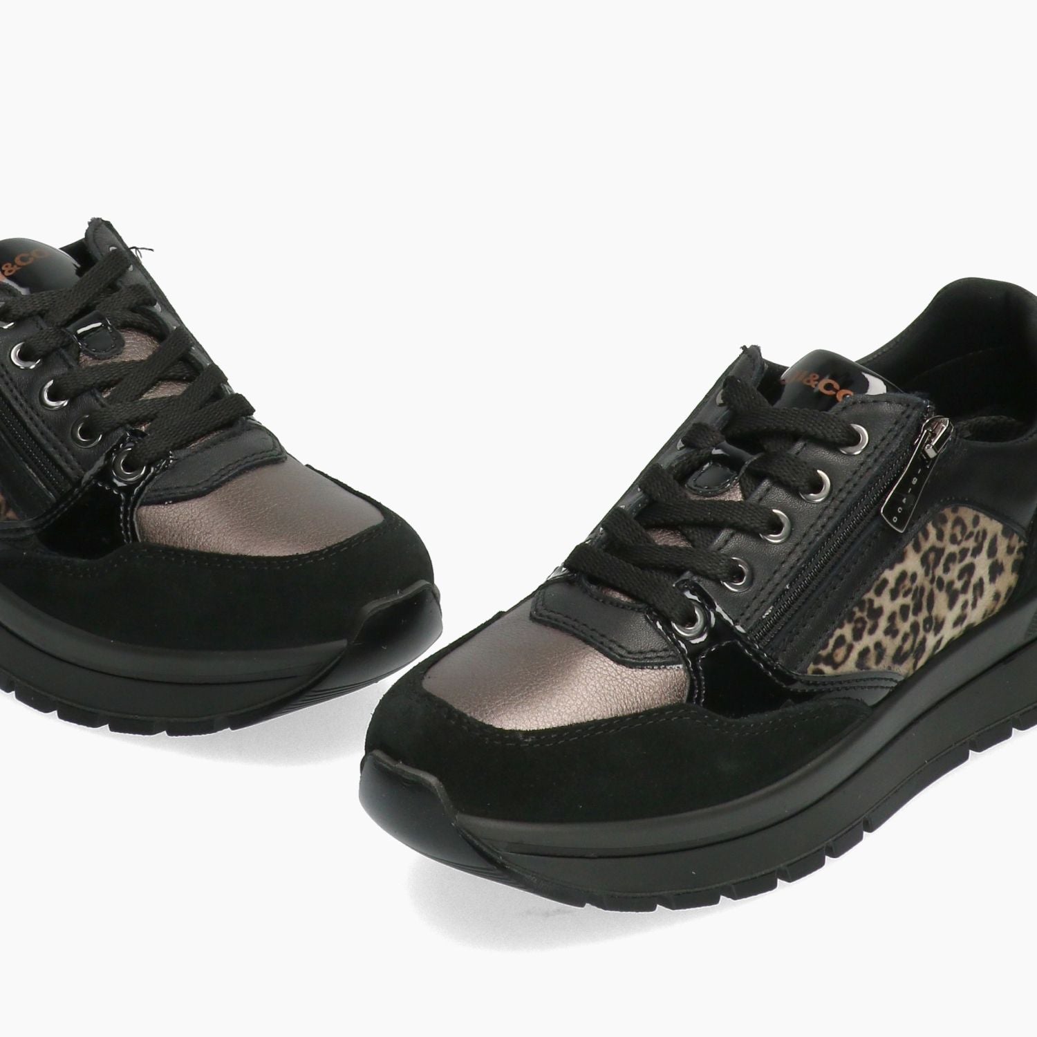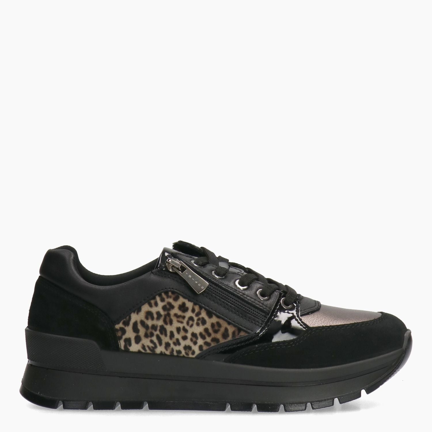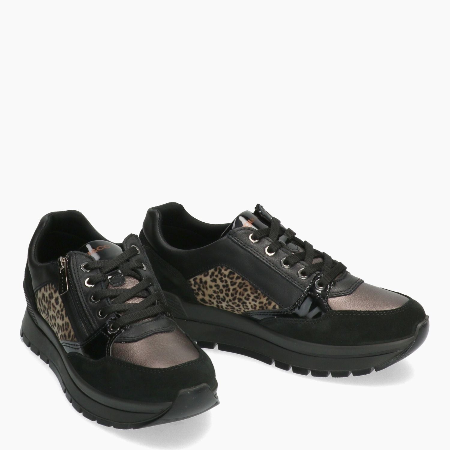Sneaker von Igi&Co mit schwarzem Wildleder-Obermaterial und Punktmuster. Schnürverschluss mit seitlichem Reißverschluss. Textilfutter mit herausnehmbarer Memory-Foam-Innensohle aus Leder. 4 cm hohe Gummisohle. Igi&Co Damen-Herbst-/Winterkollektion.