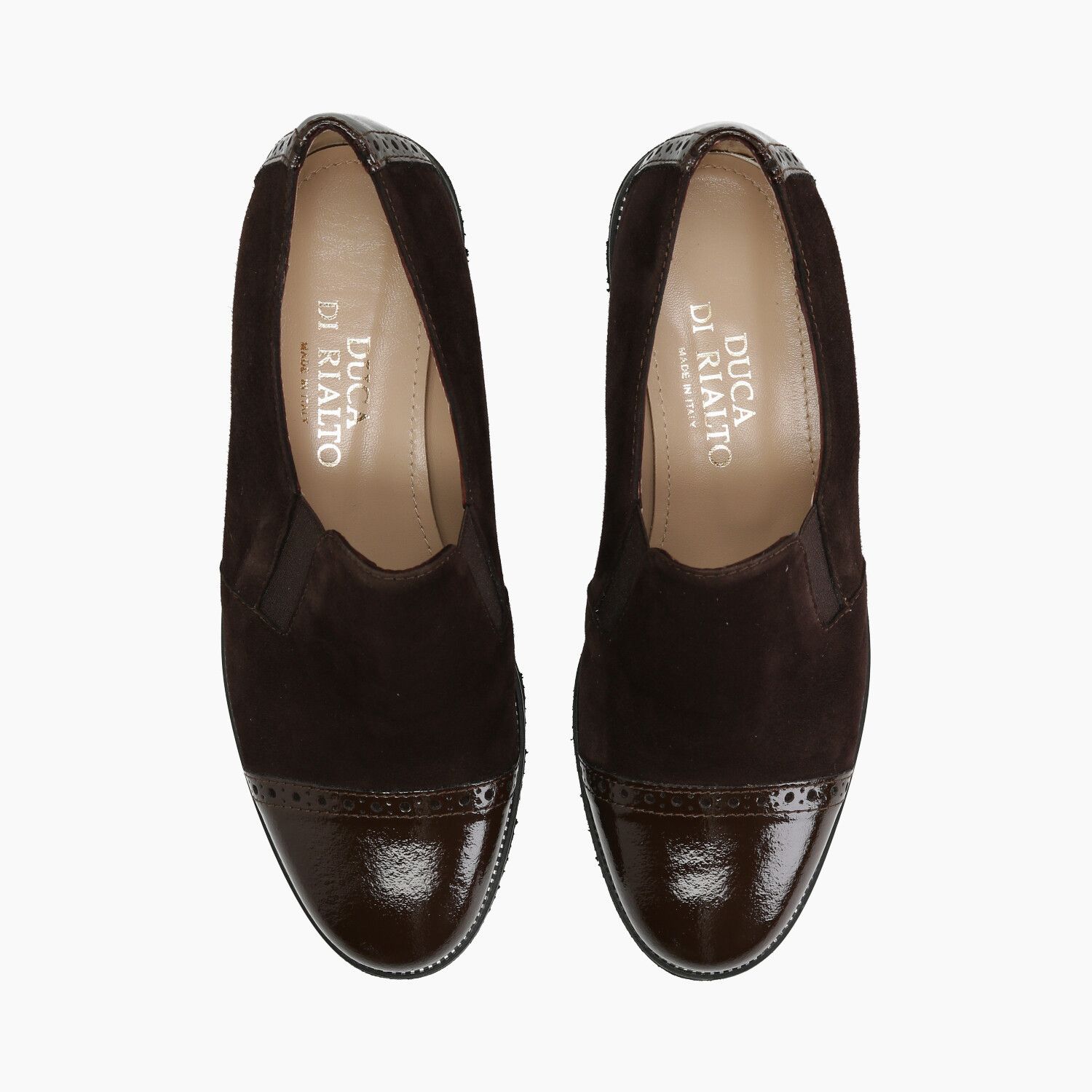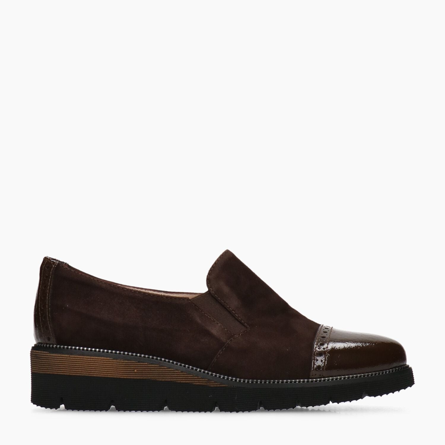 Dunkelbraune Wildlederpantoffeln, Gummisohle.