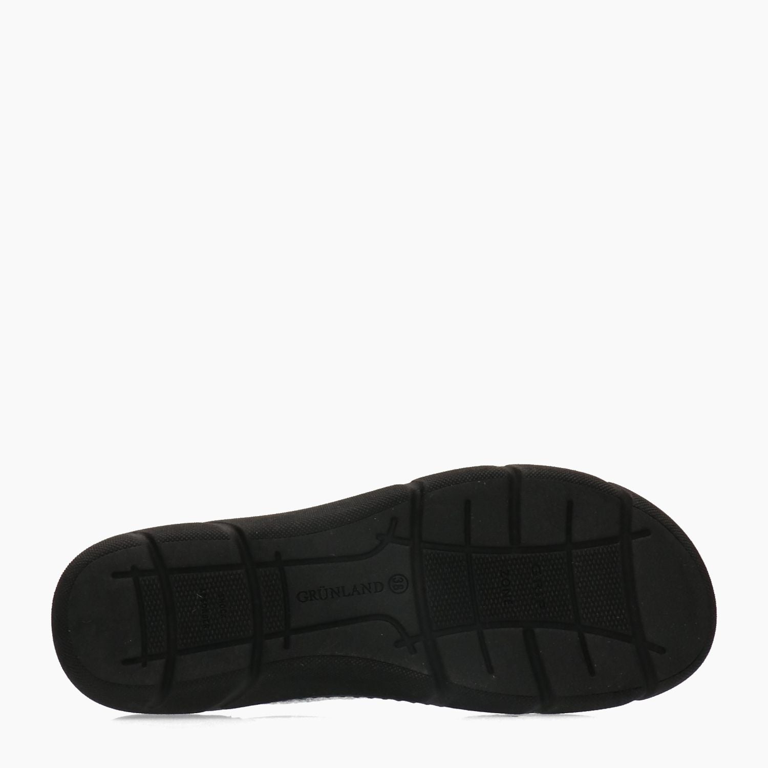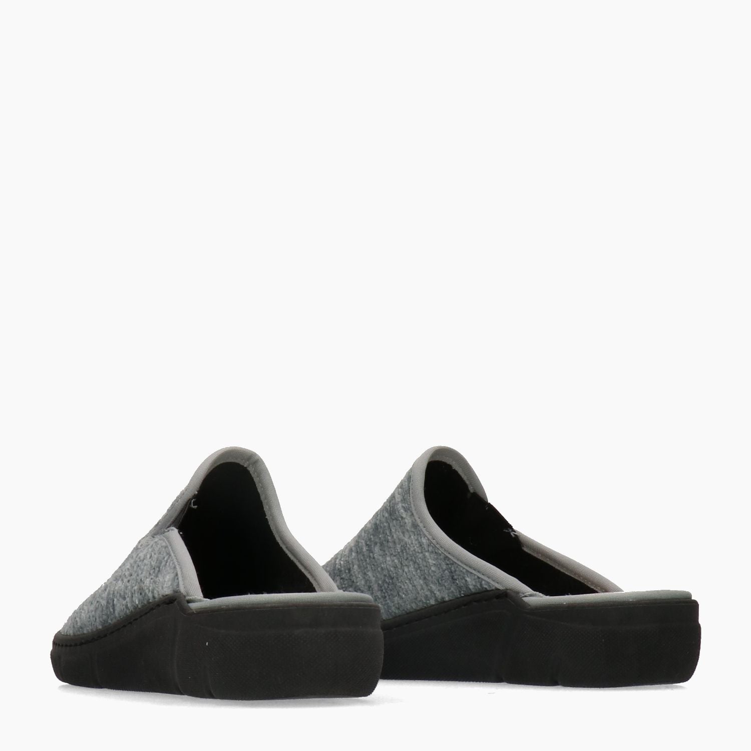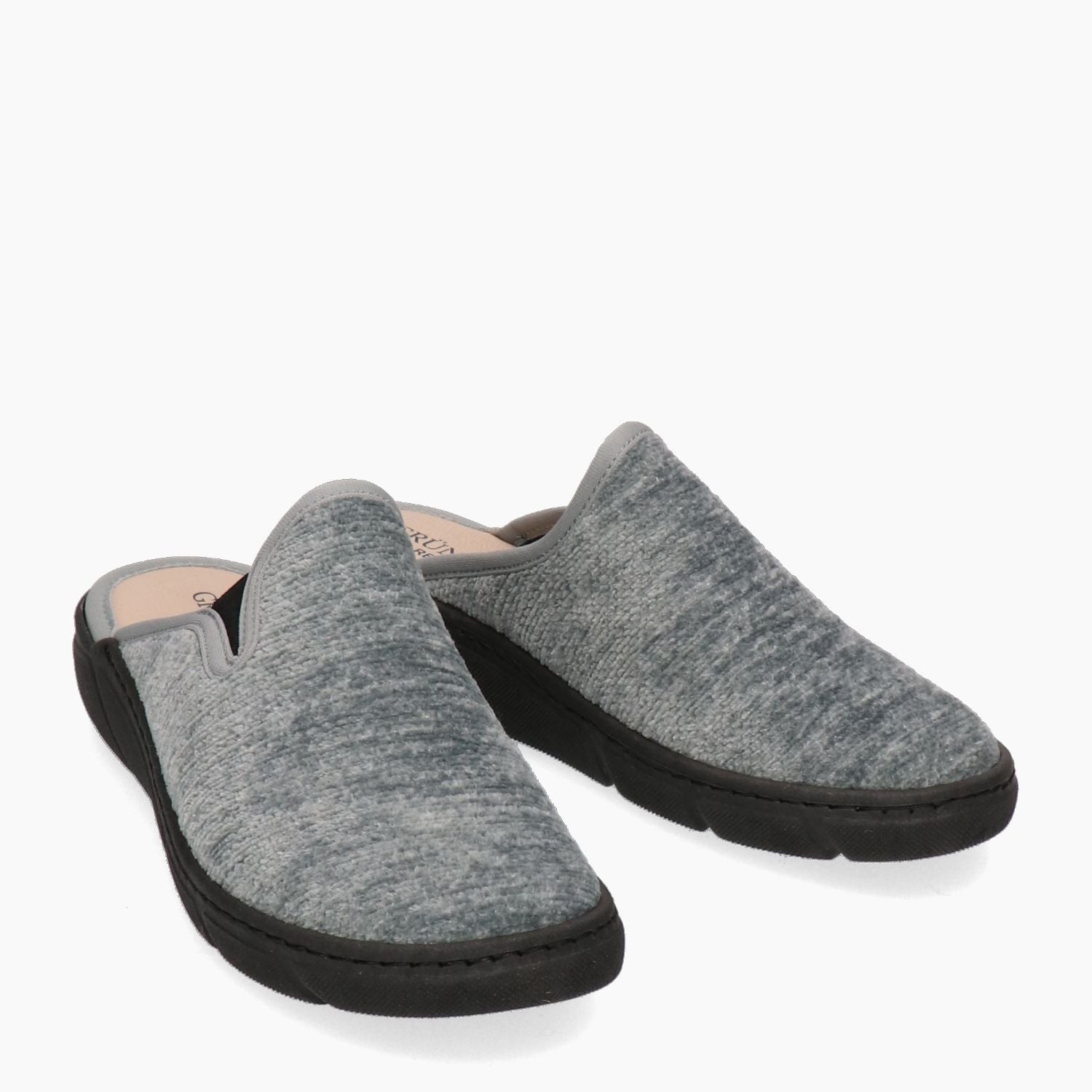 Grunland Samtpantoffel in meliertem Grau. Runde Zehenpartie. Innensohle aus weichem Echtleder. Gummisohle. 4 cm hohe Sohle. Grunland Damen Herbst/Winter Kollektion.