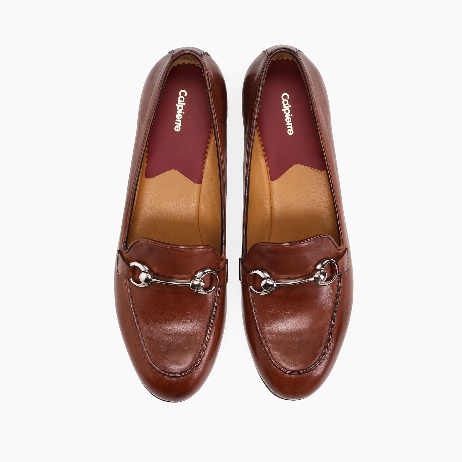Lederslipper mit goldfarbenem Metallclip, Taschenverarbeitung, 15 cm Absatz, Ledersohle.