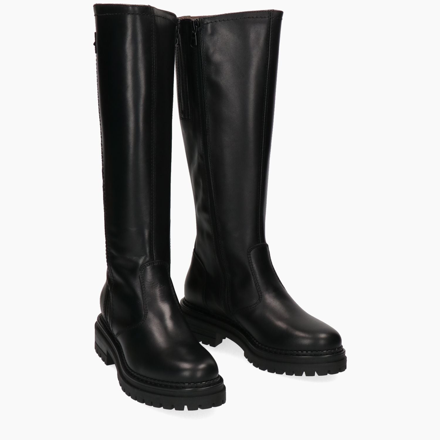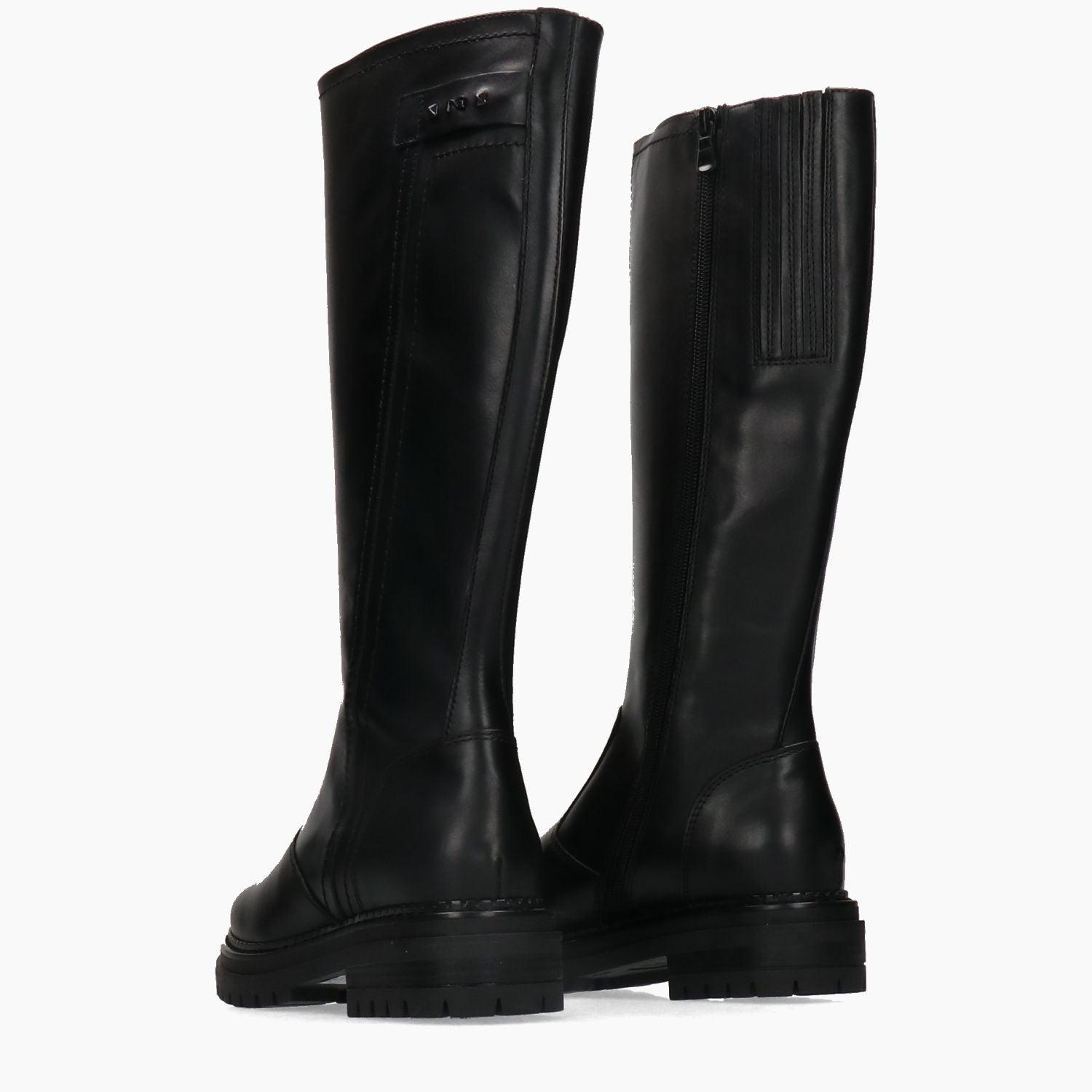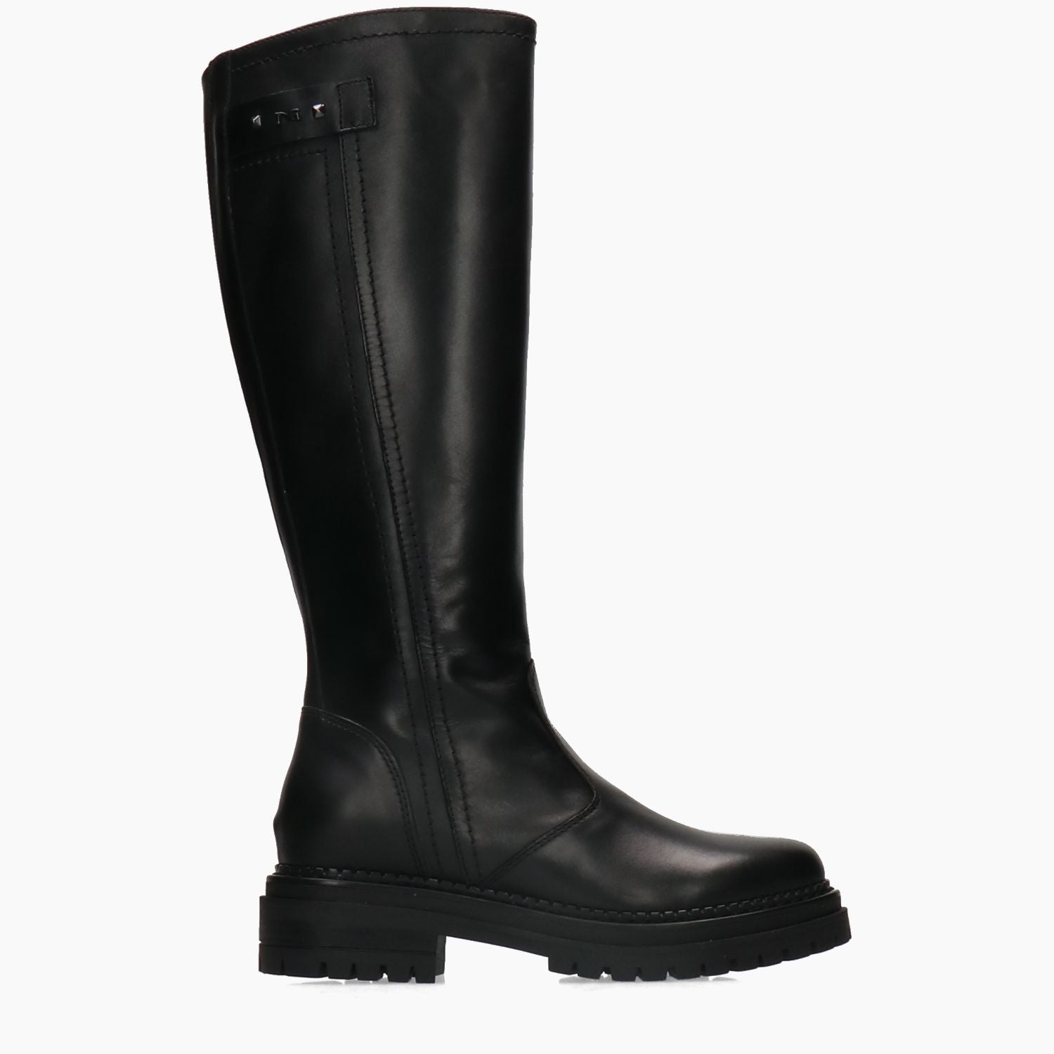 Schwarze Lederstiefel. Runde Zehenpartie. Innenliegender Reißverschluss mit seitlichem Logo. Lederfutter mit herausnehmbarer Innensohle. Profilierte Gummisohle. 4 cm Absatz. Nero Giardini Damen-Herbst-/Winterkollektion.