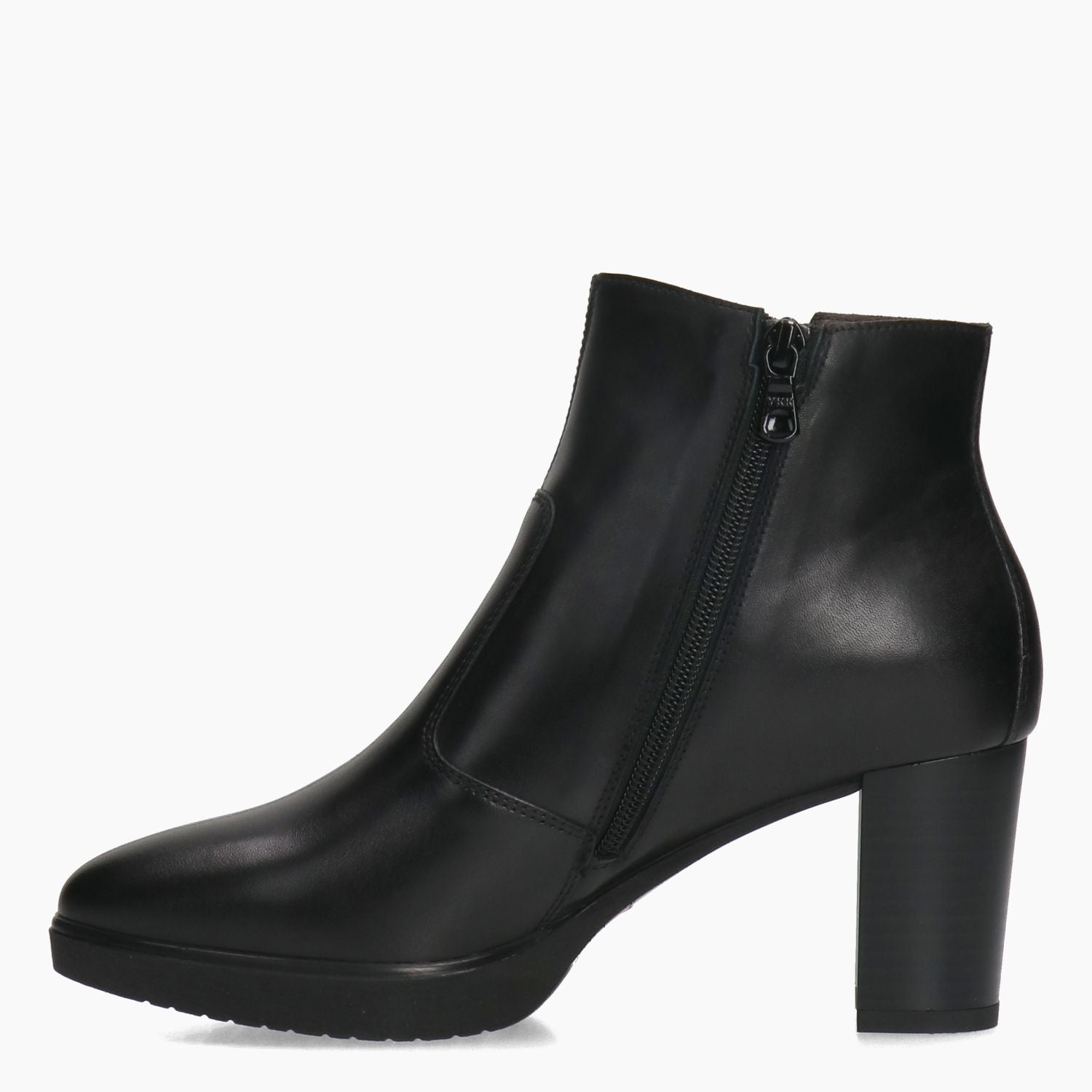 Stiefeletten mit schwarzem Leder-Obermaterial. Innenliegender Reißverschluss. Logo an der Seite. Lederfutter. Gummisohle mit 6 cm Absatz und 1,5 cm Plateau. Nero Giardini Damen-Herbst-/Winterkollektion.