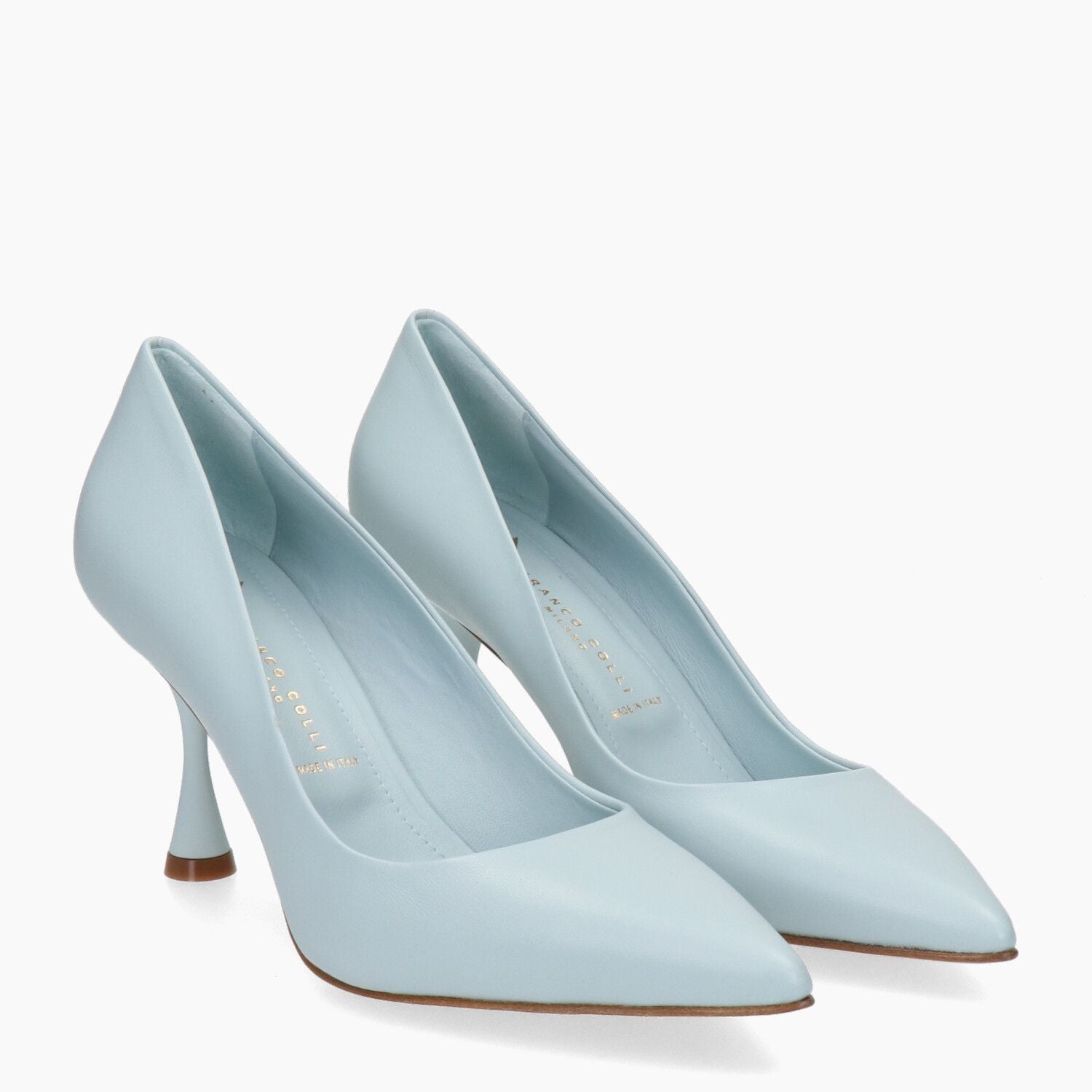 Hellblaue Lederpumps, Ledersohle.