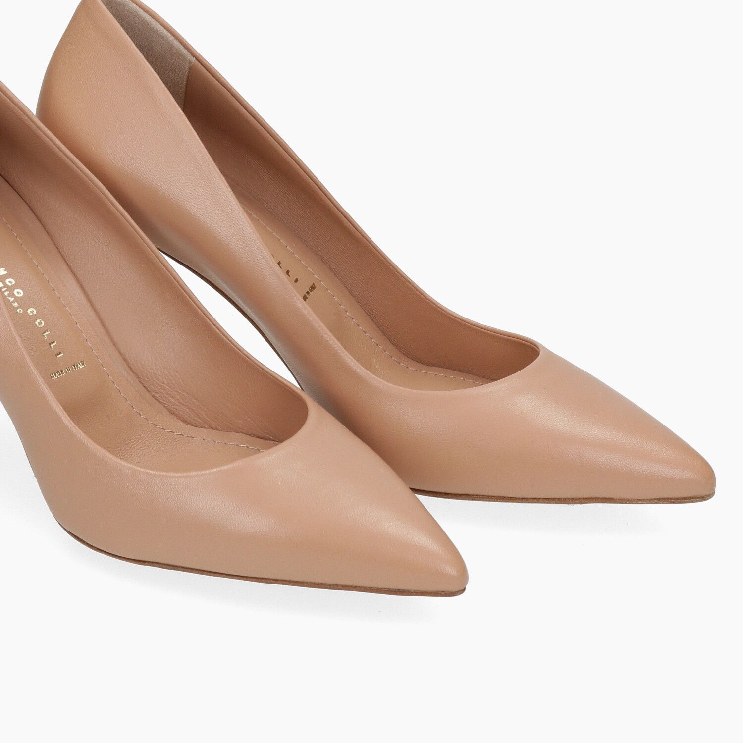 Franco Colli Pumps mit puderrosa Nappa-Obermaterial. Schmale Zehenpartie. 8,5 cm Absatz. Lederfutter. Ledersohle. Franco Colli Damen-Frühjahr/Sommer-Kollektion.