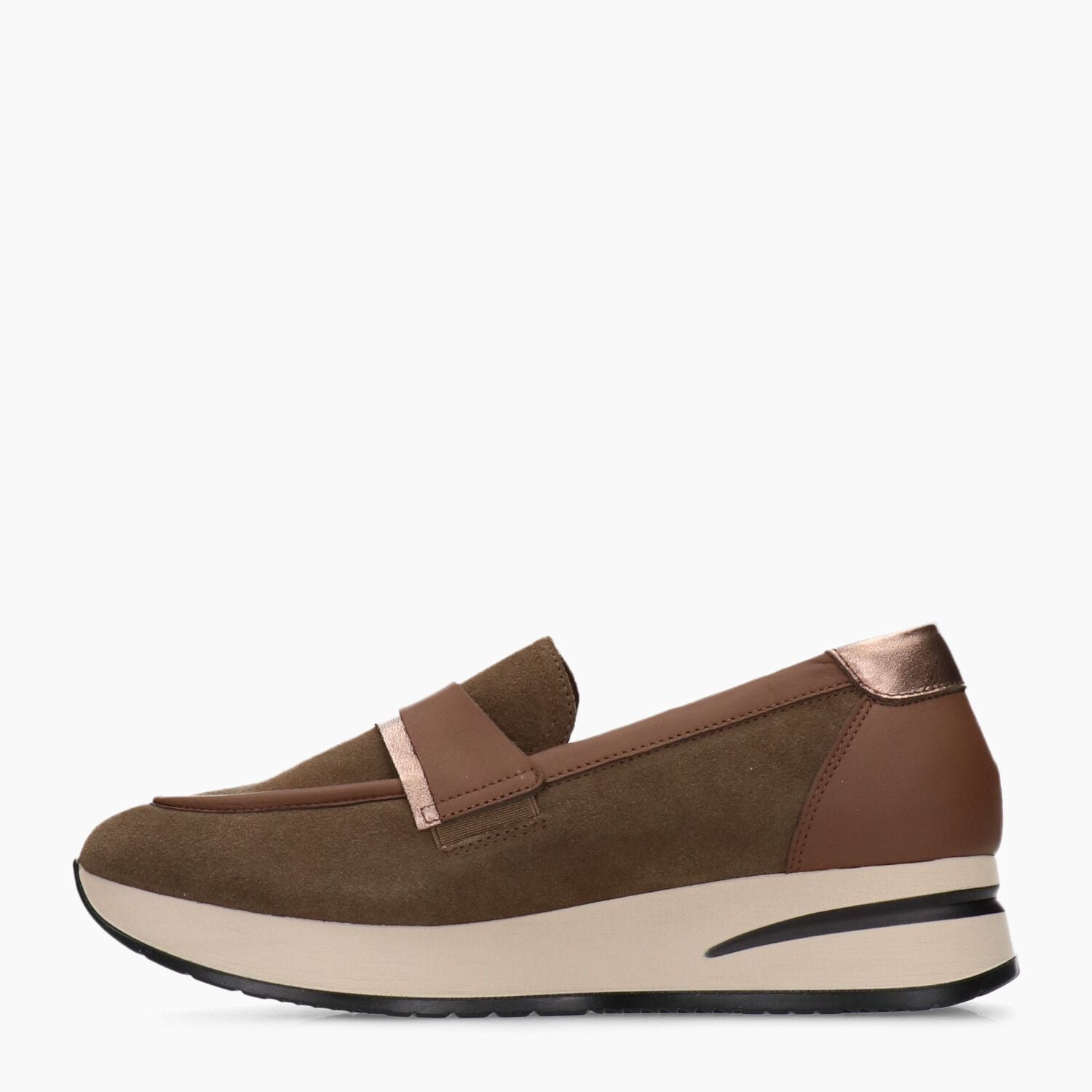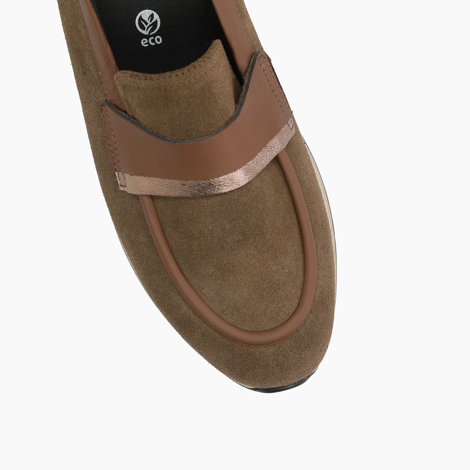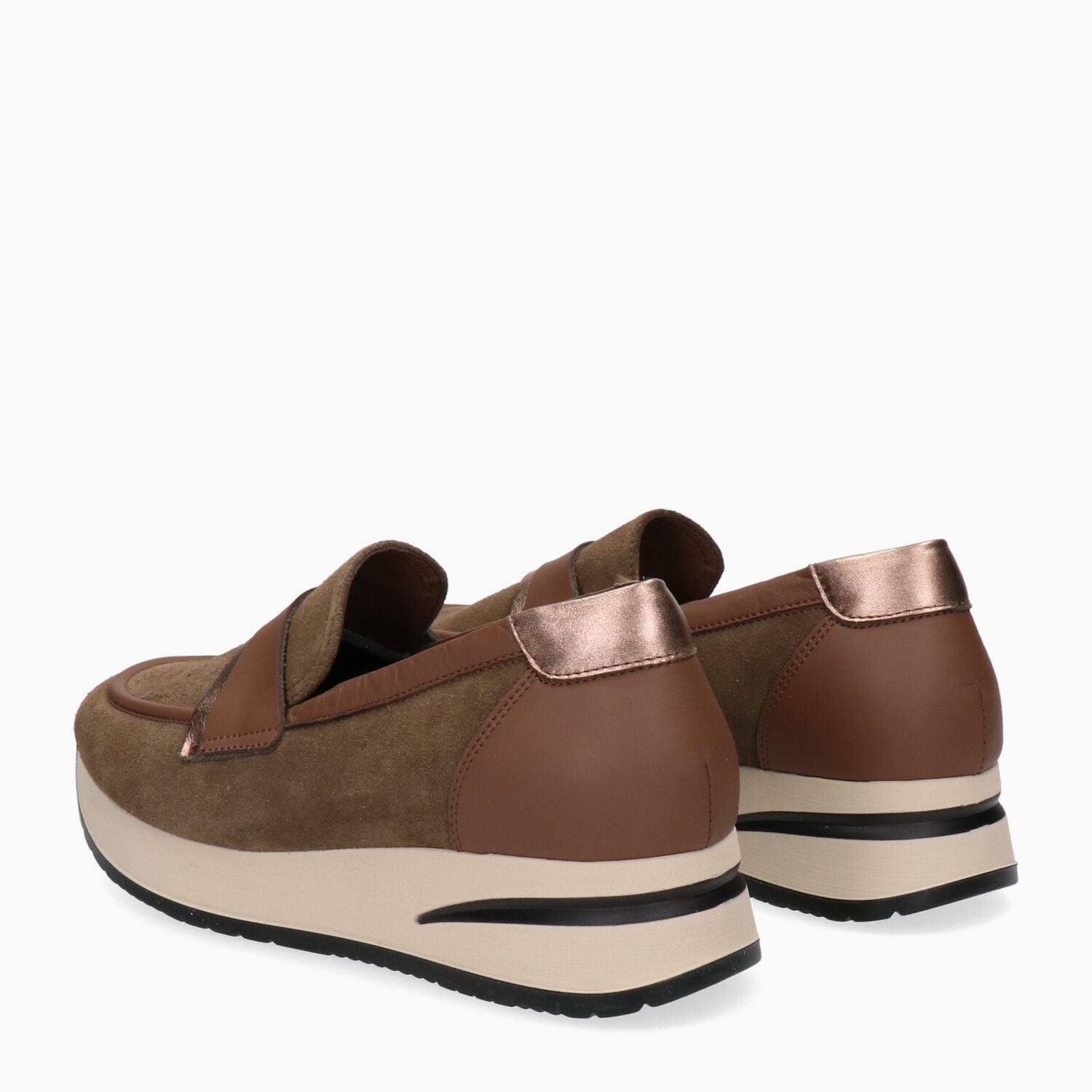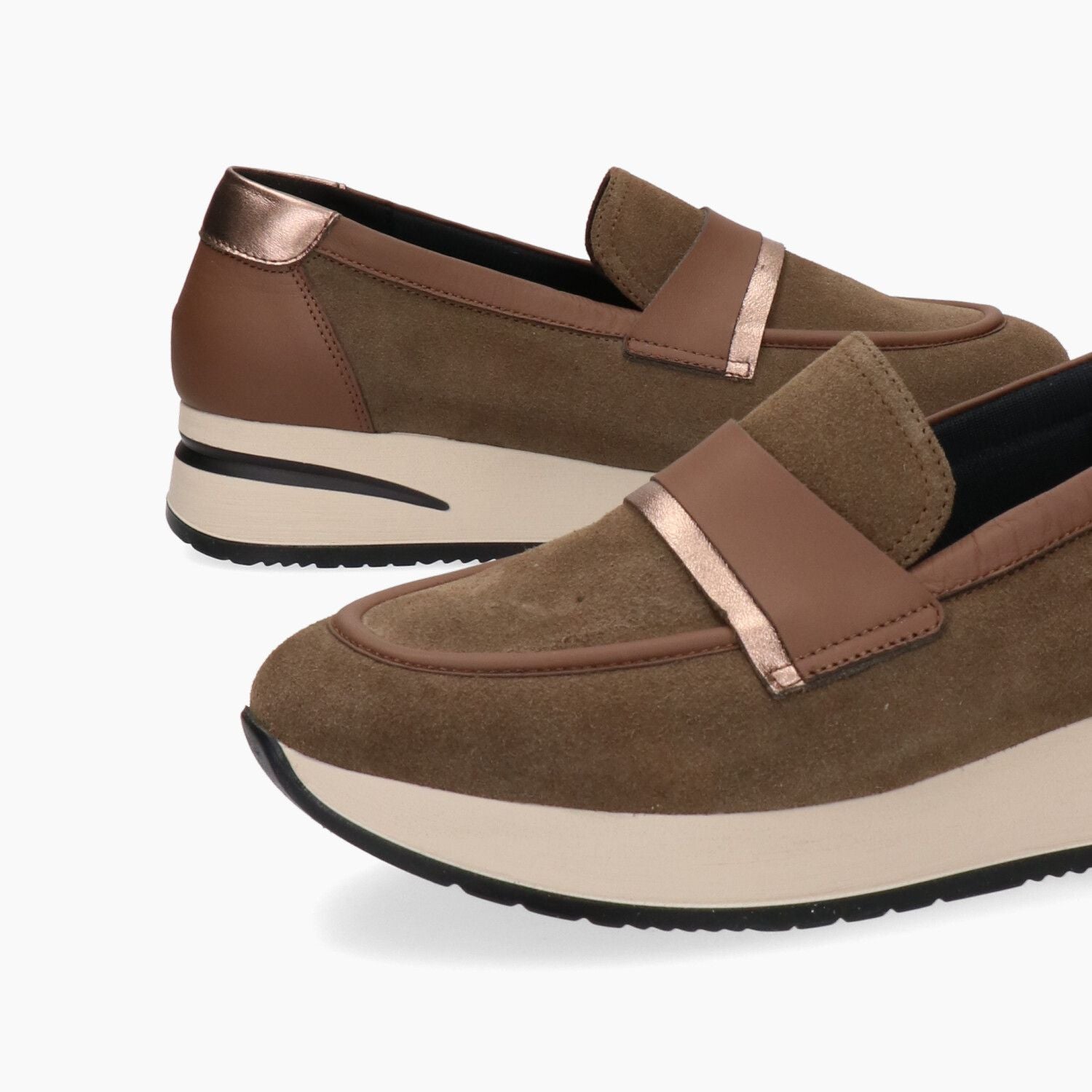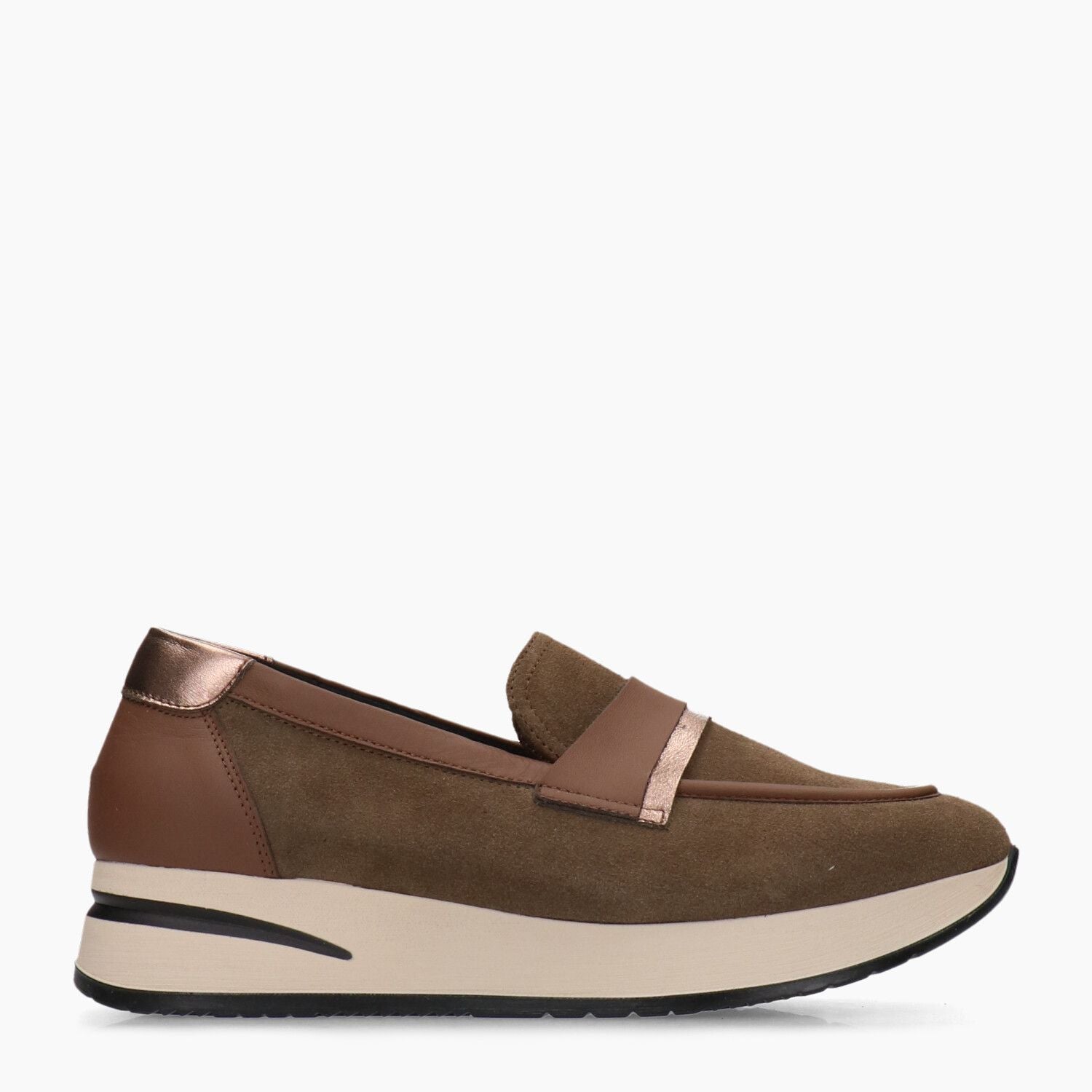 Taubengraue Wildleder-Loafer, 3 cm Plateau, Gummisohle.