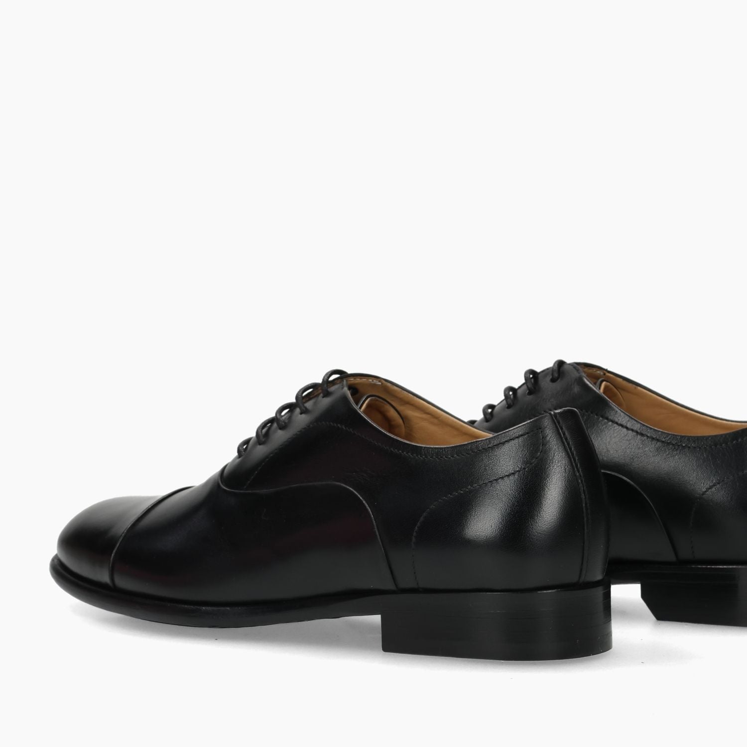 Schwarzer Schnürschuh aus Leder mit Zehenkappe. Lederfutter. Ledersohle mit Gummieinsatz. 2,5 cm Absatz. Herrenkollektion Brecos.