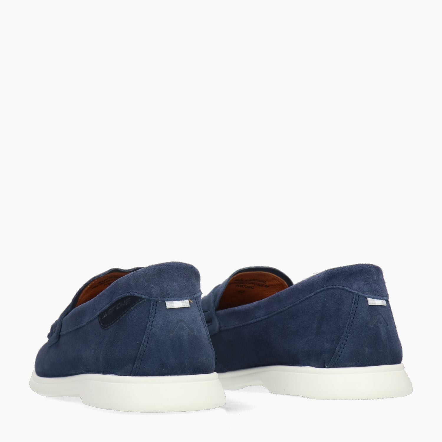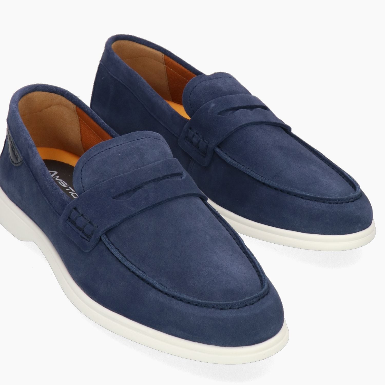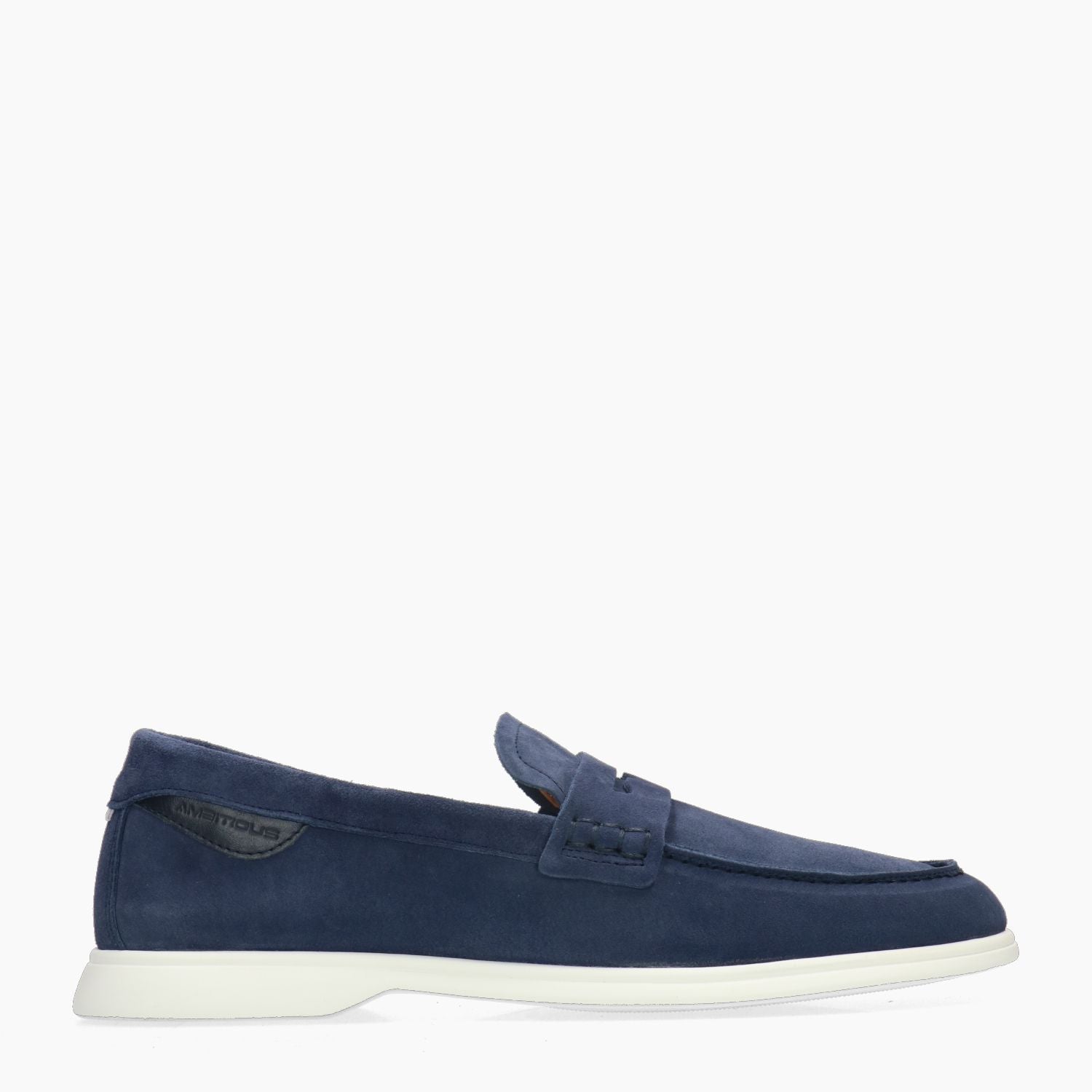 Blauer Wildleder-Loafer. Leder- und Textilfutter mit herausnehmbarer Innensohle. 2 cm hohe Gummisohle. Aus der ambitionierten Herren-Frühjahr/Sommer-Kollektion.