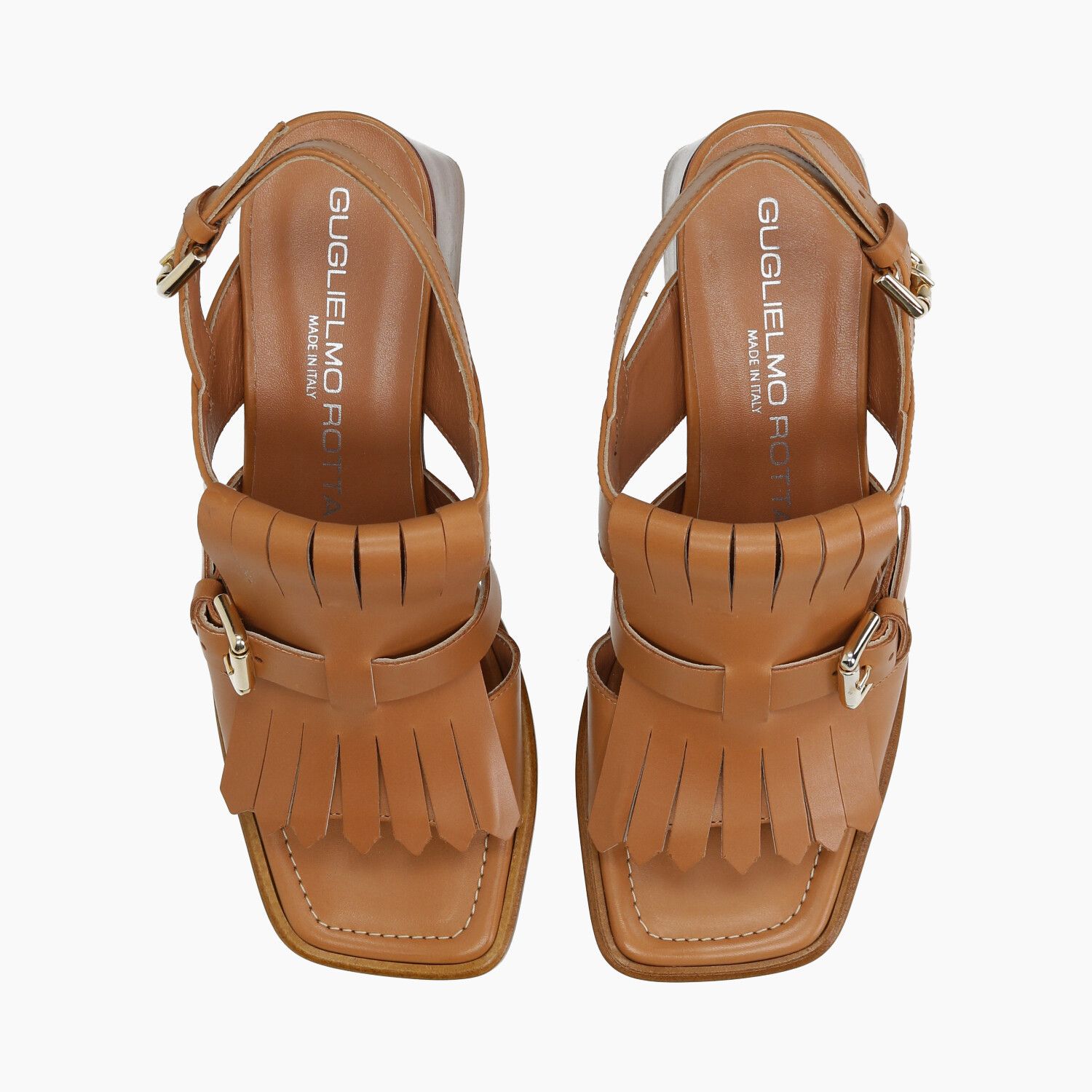 Hellbraune Ledersandalen mit Fransen und Riemen, Ledersohle.