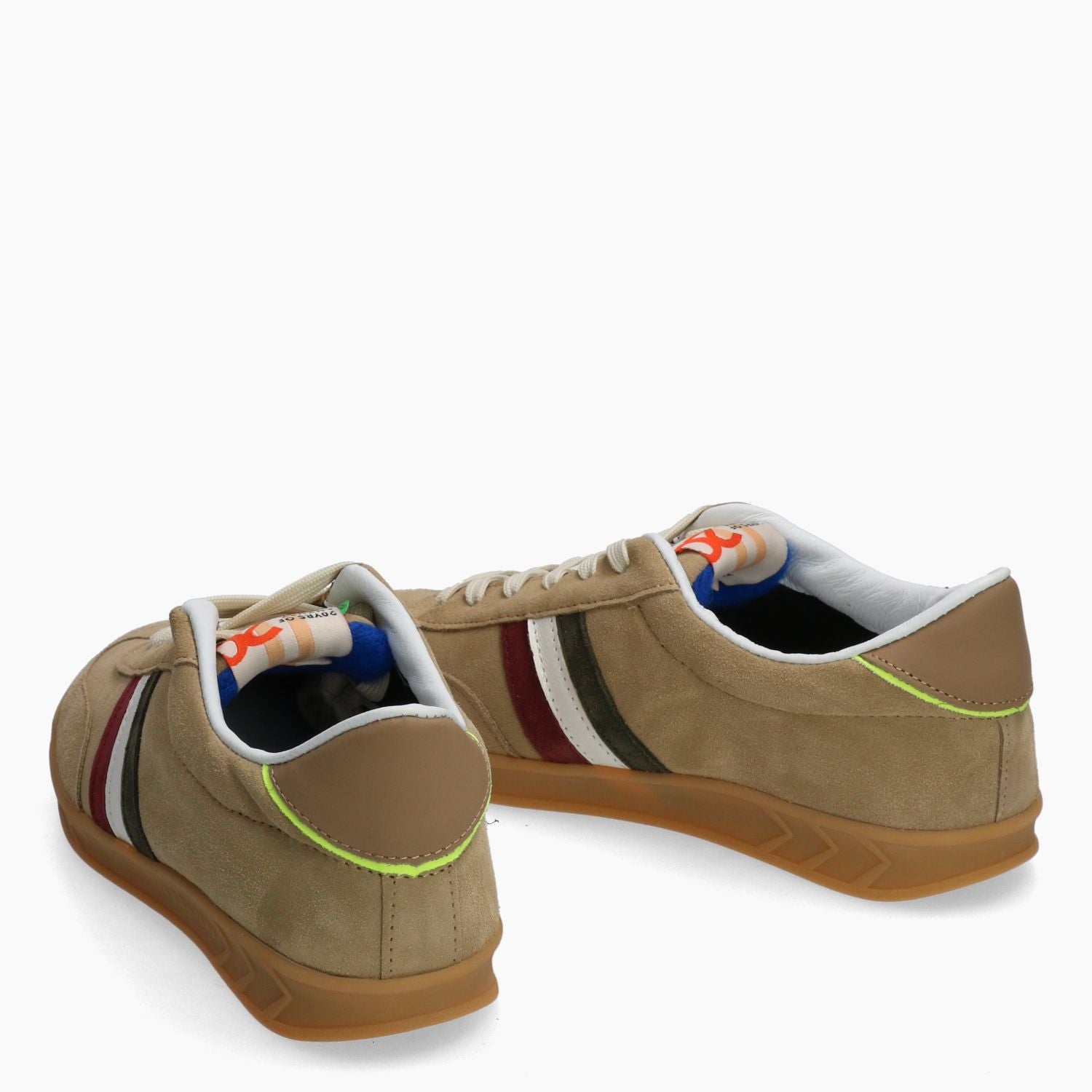 Sneaker aus sandfarbenem Wildleder. Beige Baumwollschnürsenkel. Aufgenähtes Logo auf der Zunge. Futter aus Textil und Leder. Herausnehmbare Lederinnensohle. Gummisohle. 2,5 cm hohe Sohle. Serafini Herrenkollektion.