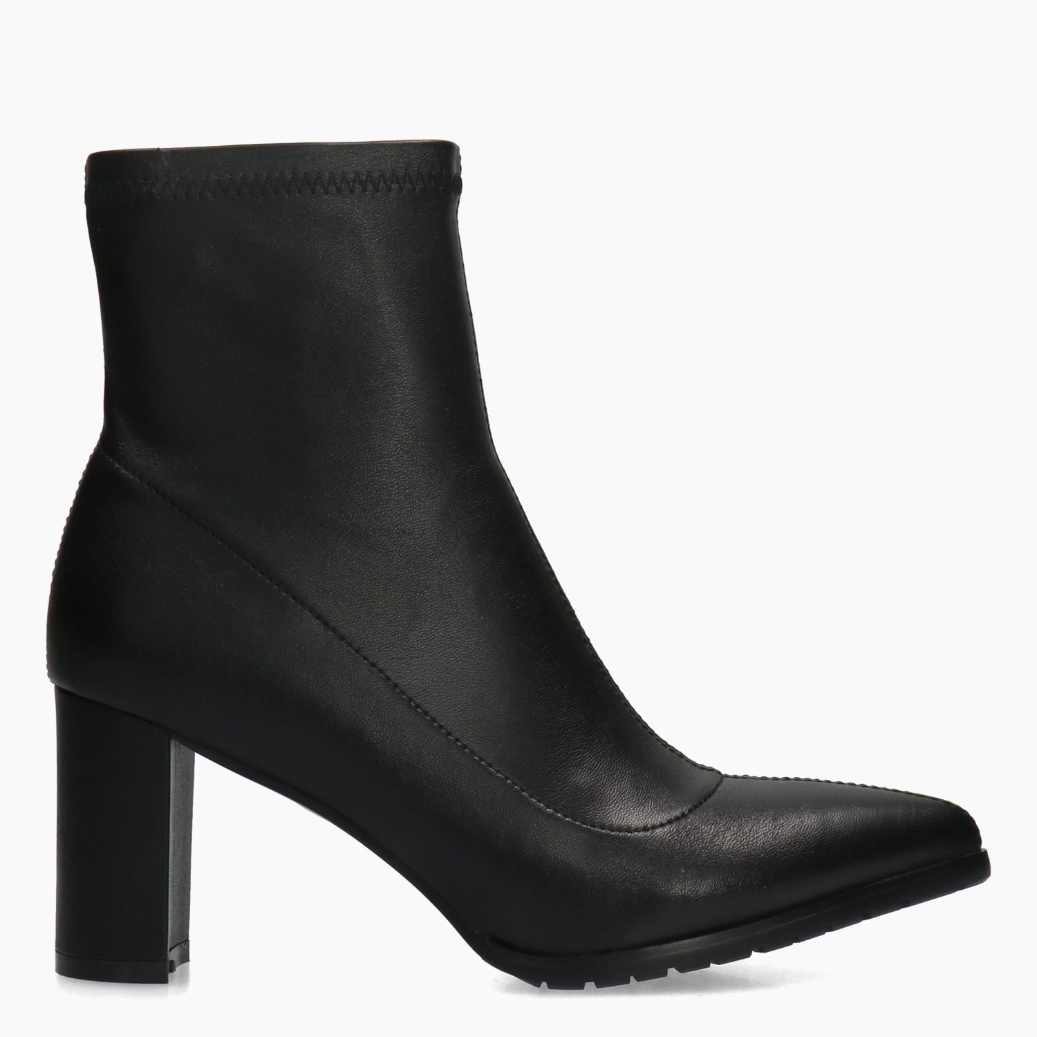 Schwarze Stiefelette aus Kunstleder mit elastischem Beinabschluss. Reißverschluss innen. Textilfutter. Gummisohle mit 7 cm Absatz. Uma Parker Damen-Herbst-/Winterkollektion.