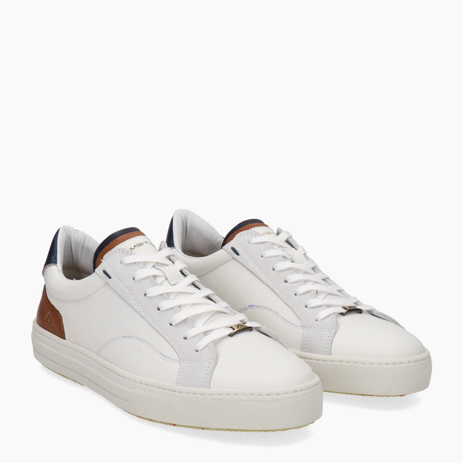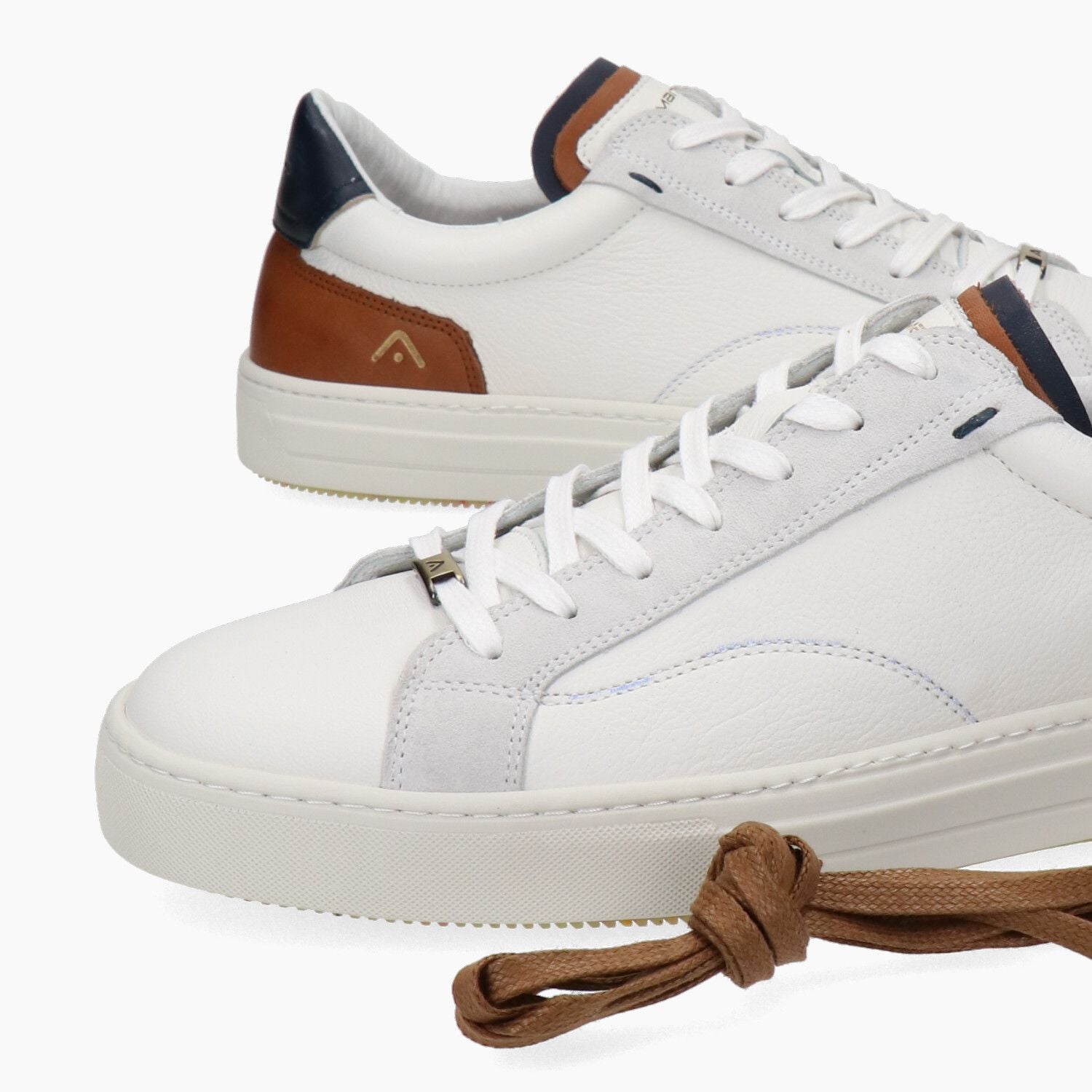 Sportlich in weißem Leder und sandfarbenem Wildleder, Gummisohle.