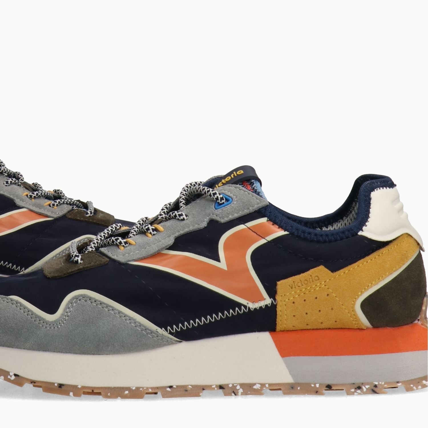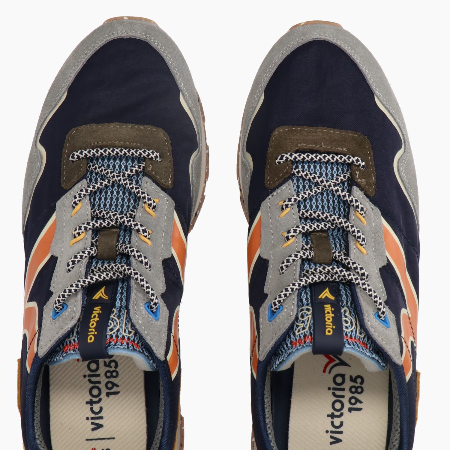 Sneaker mit blauem Nylon-Obermaterial und grauen Wildledereinsätzen. Schnürverschluss und Ersatzschnürsenkel aus grauer Baumwolle. Logo auf der Zunge. Herausnehmbare Innensohle. 4 cm hohe, mehrfarbige Gummisohle. Victoria Herrenkollektion.