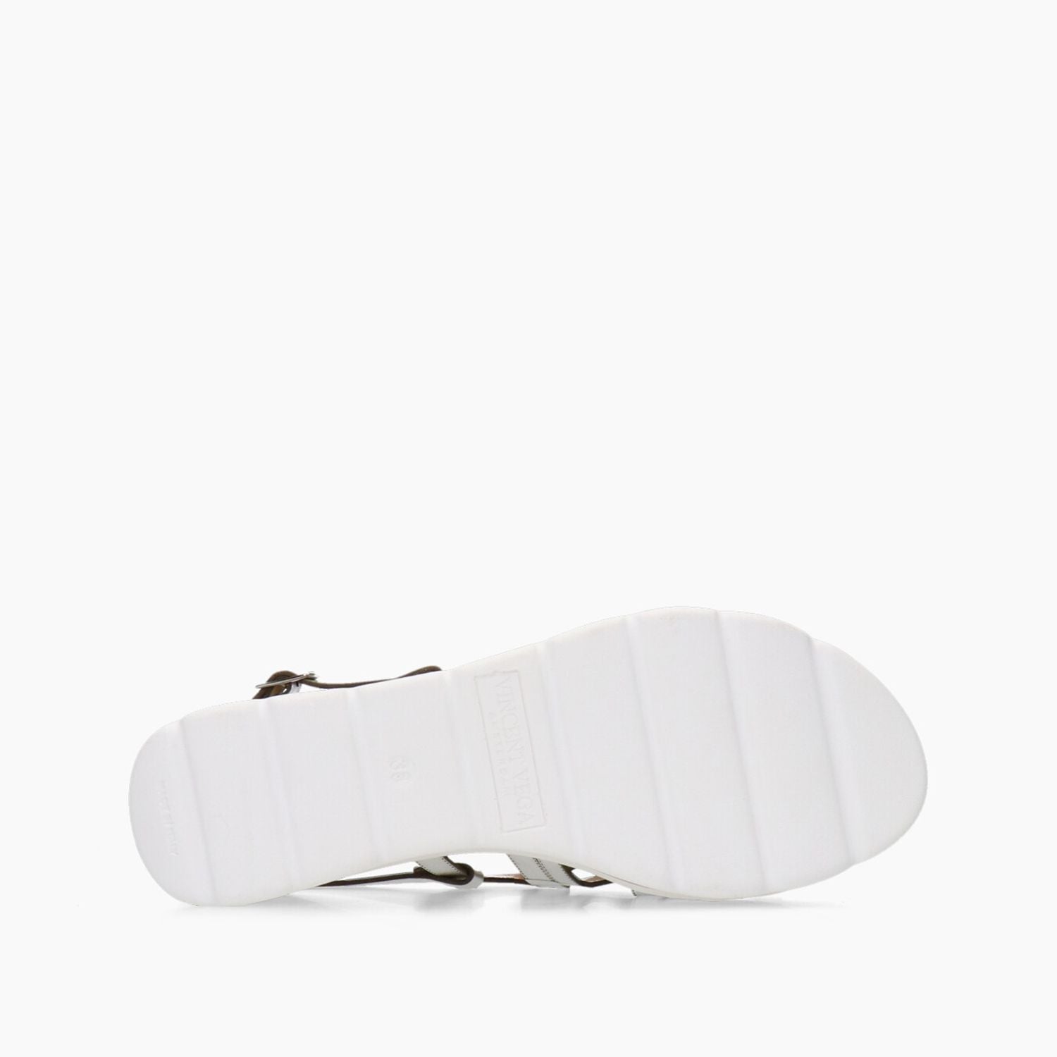 Silberfarbene Sandalen aus laminiertem Leder, 60 mm Keilabsatz, Gummisohle.