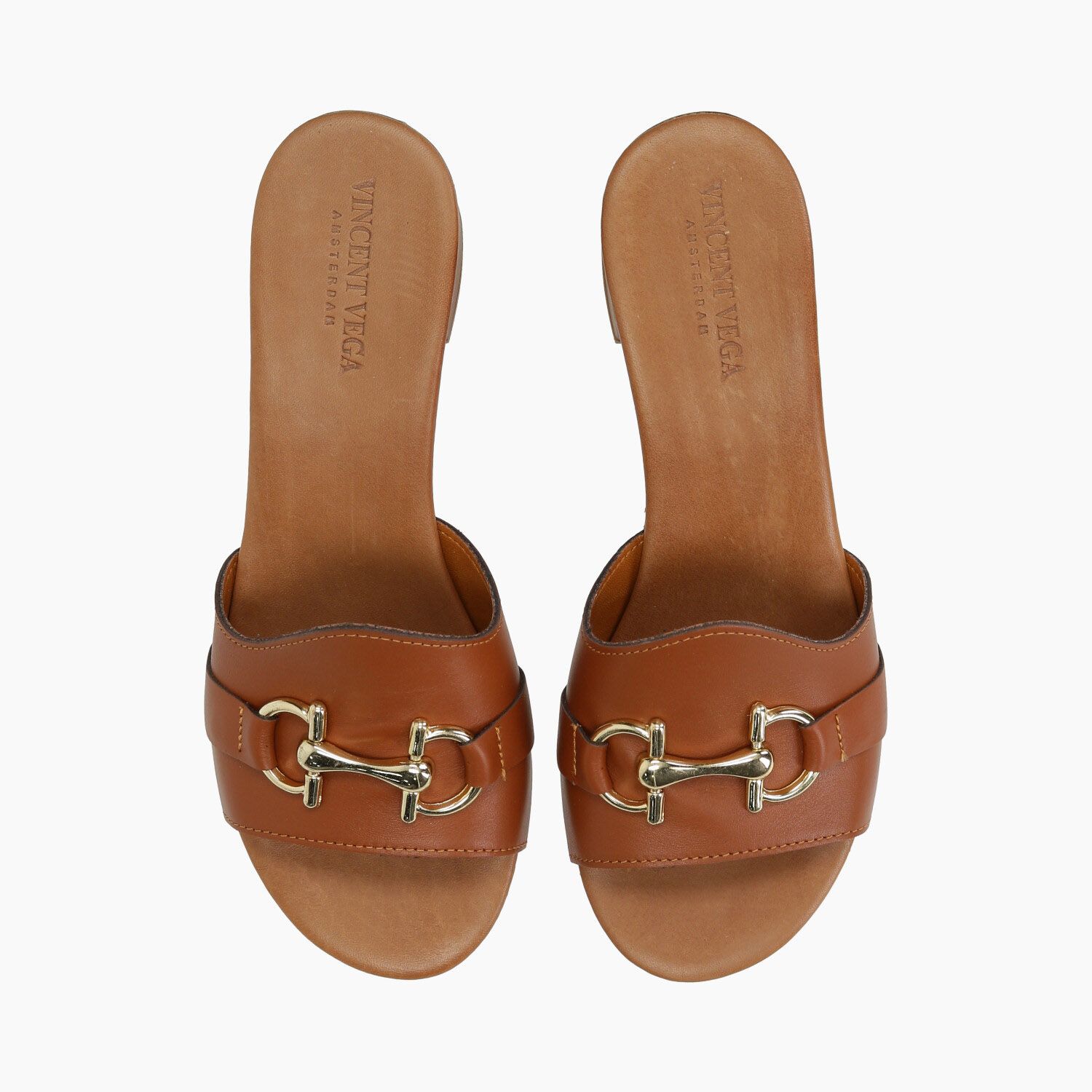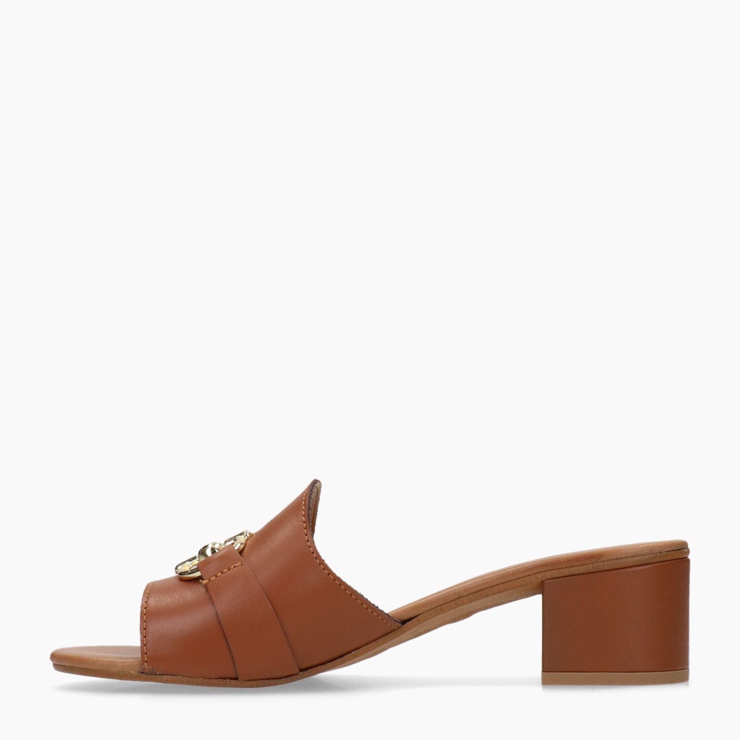 Lederpantoffel mit goldenem Clip, Gummisohle.