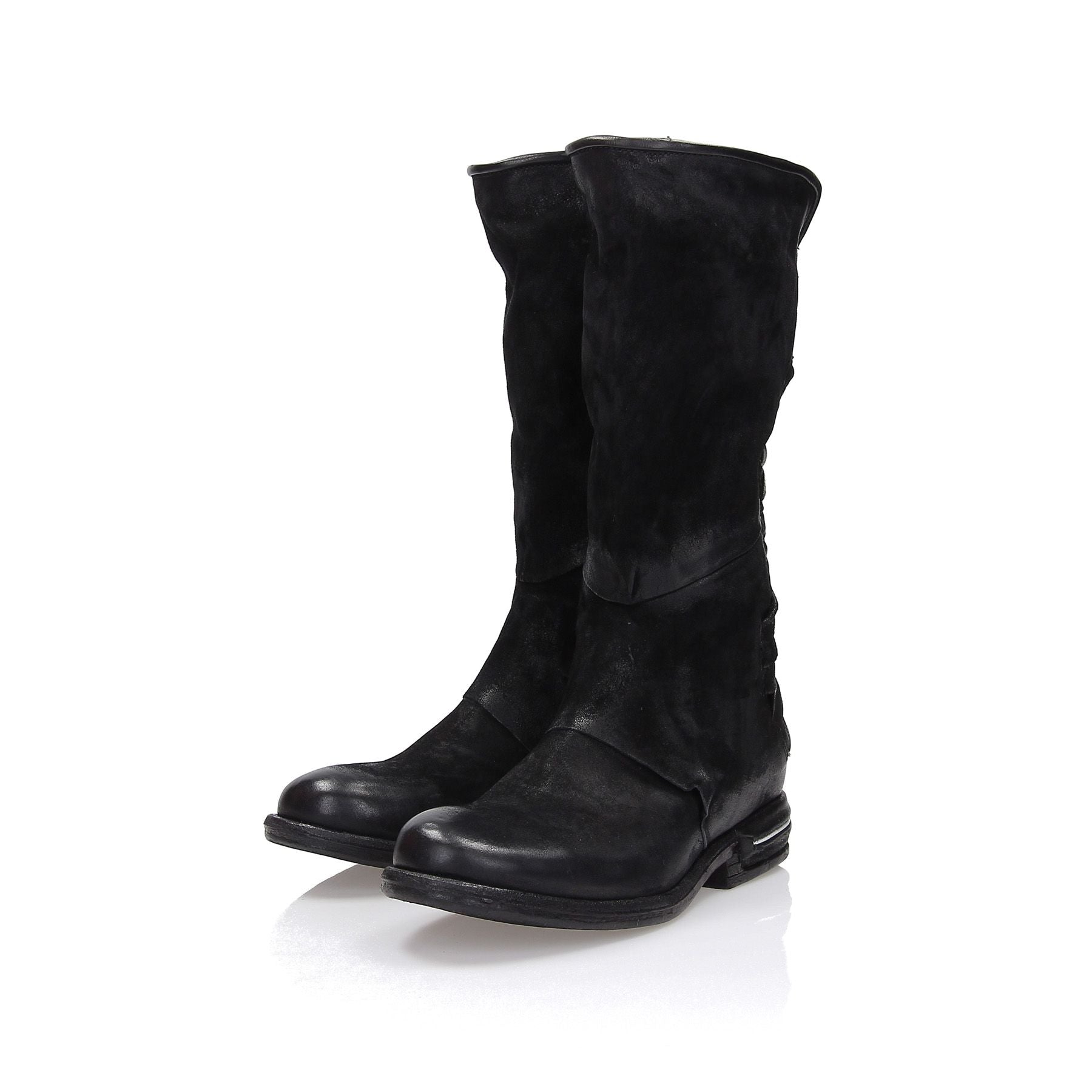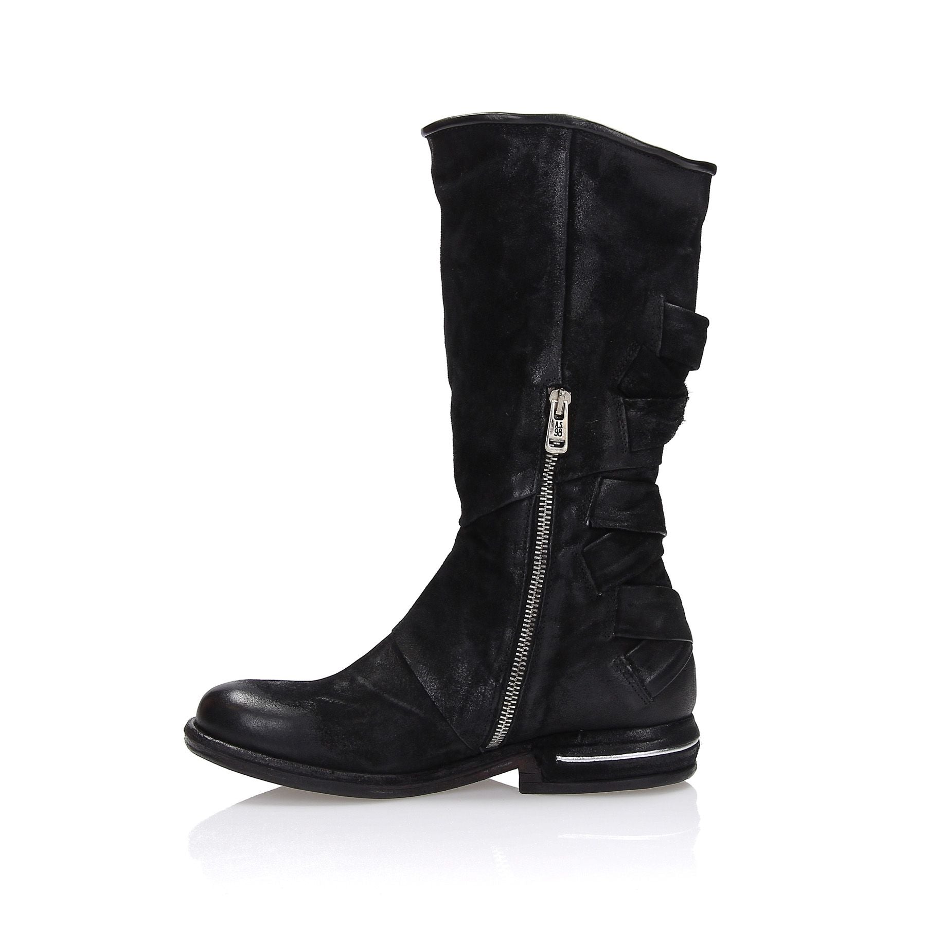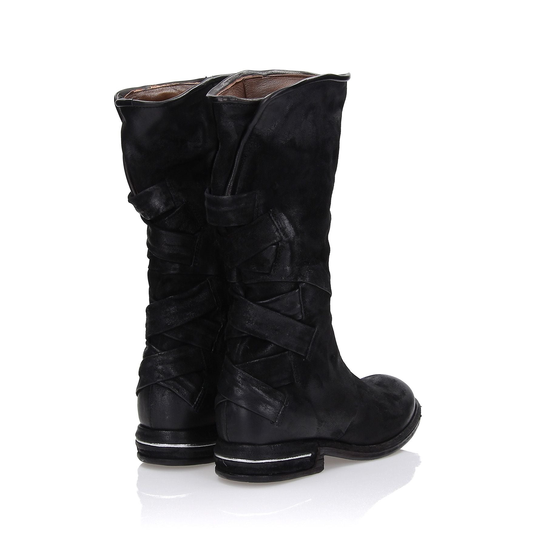 Three-quarter boots in aged black nubuck with crossover straps at the back. Internal zip closure. Leather lining. Rubber sole with 3 cm heel. AS98 women's Fall/Winter collection.