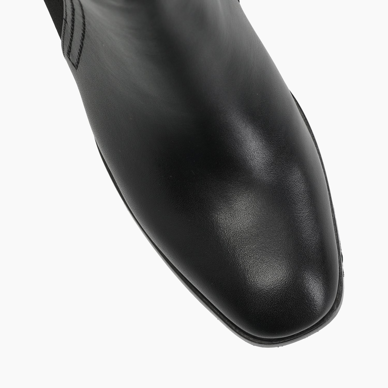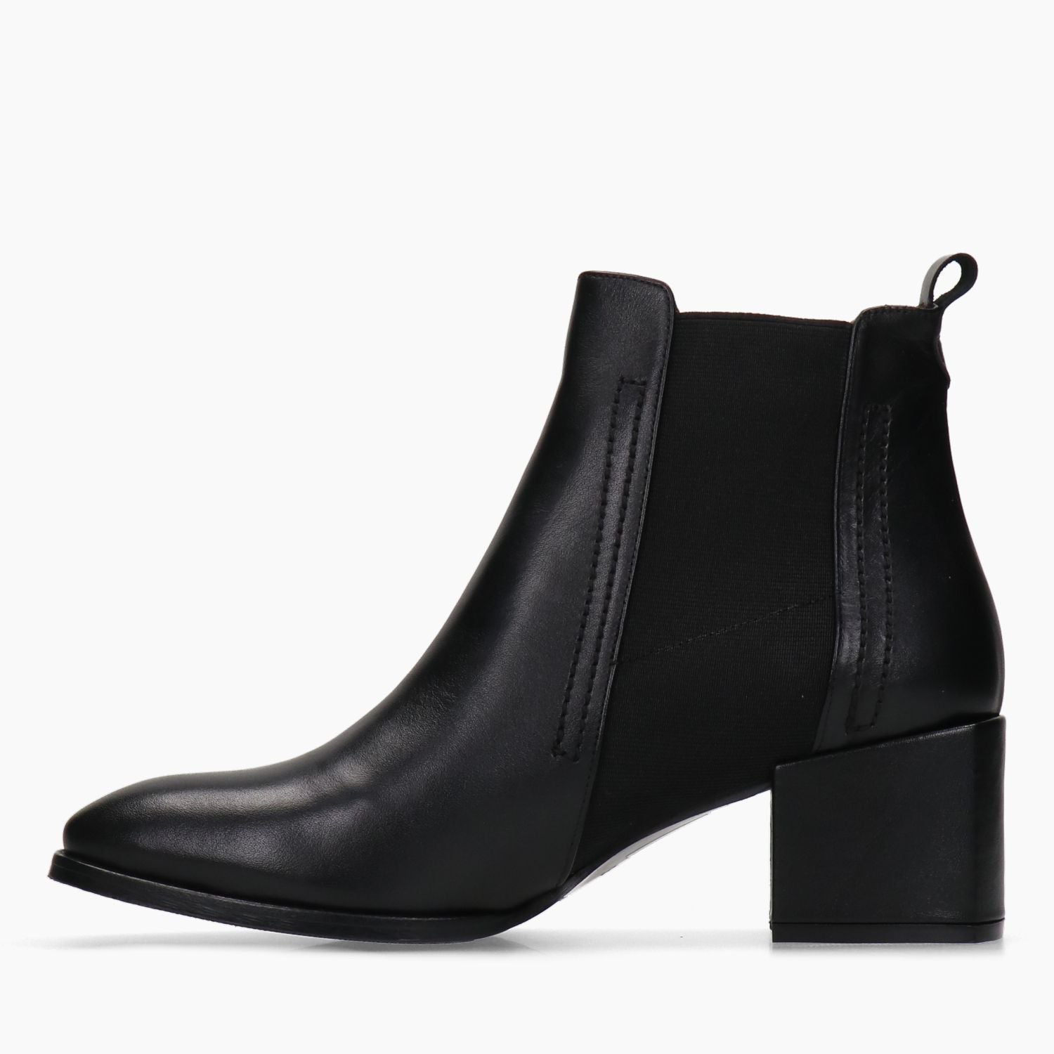 Black leather ankle boots with black elastic sides. Leather lining. Rubber sole with 5 cm heel. Albano Fall/Winter collection.